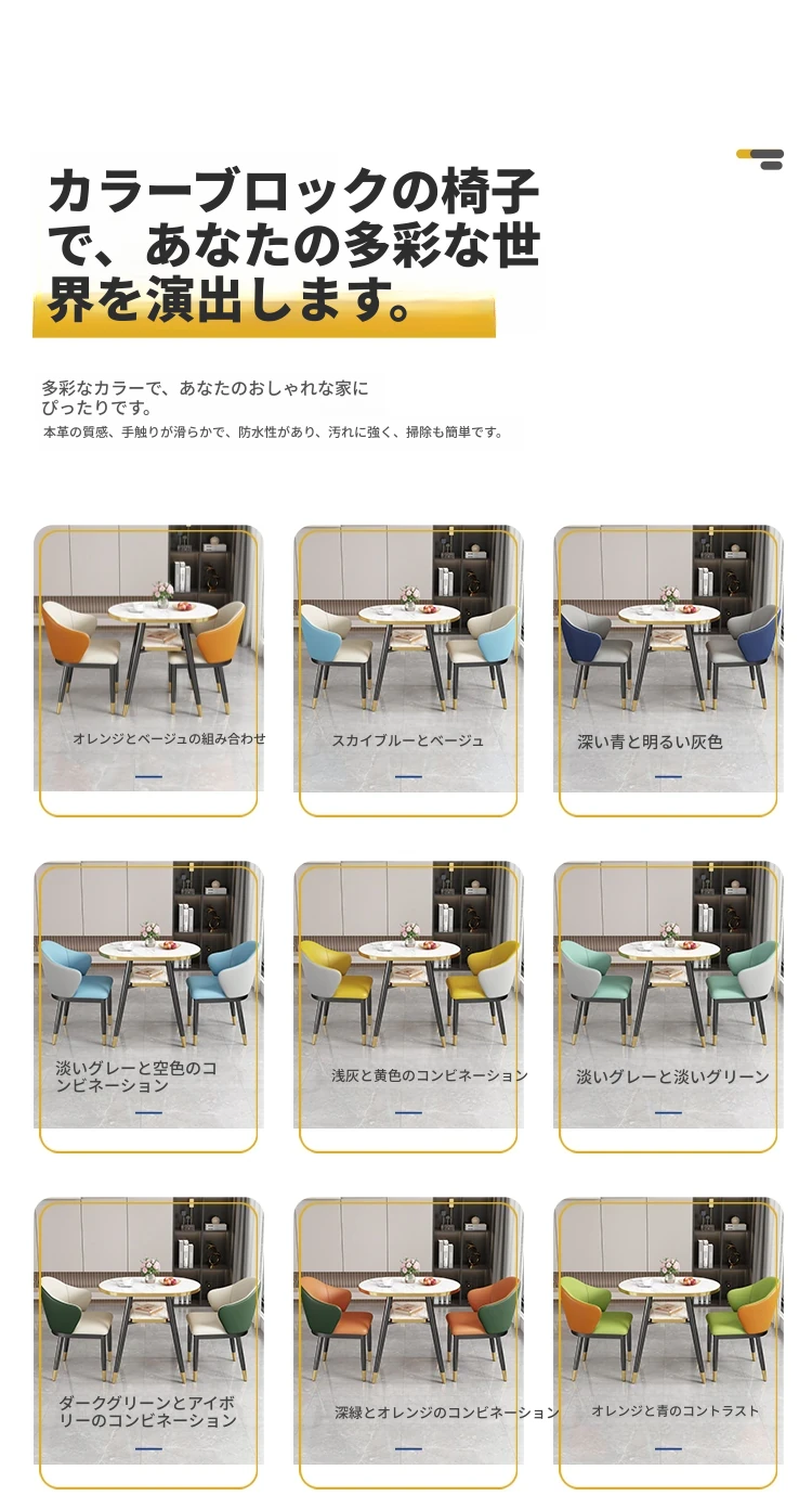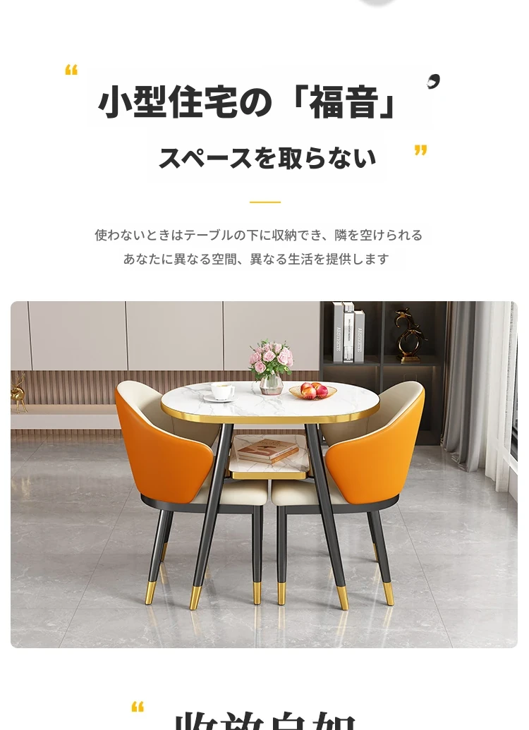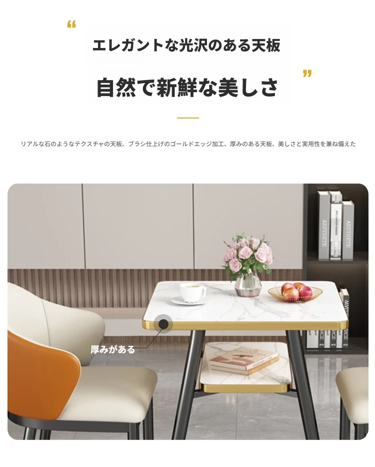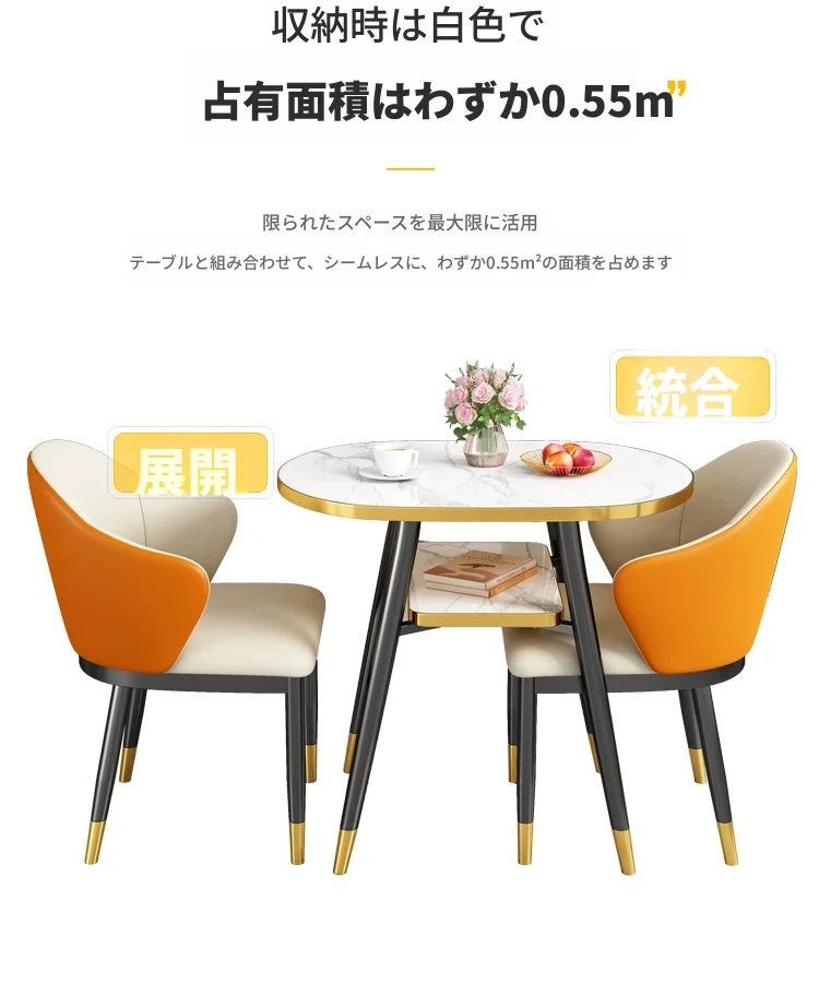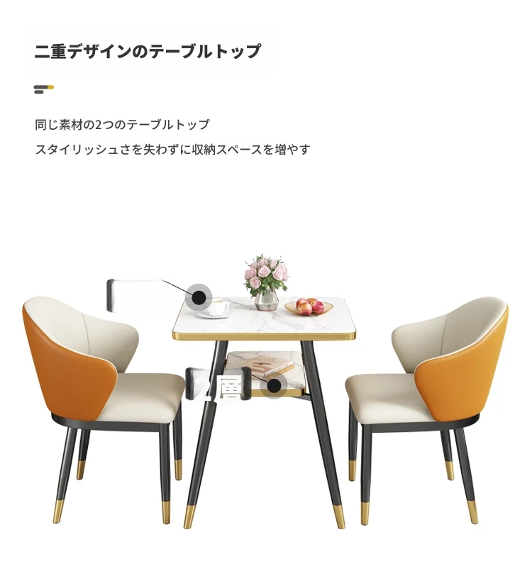 オレンジミント 80*60 岩板テーブル + 2 レザー椅子