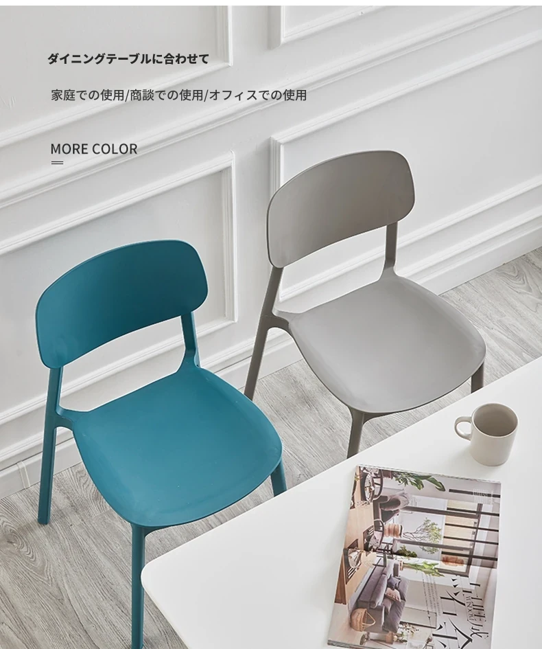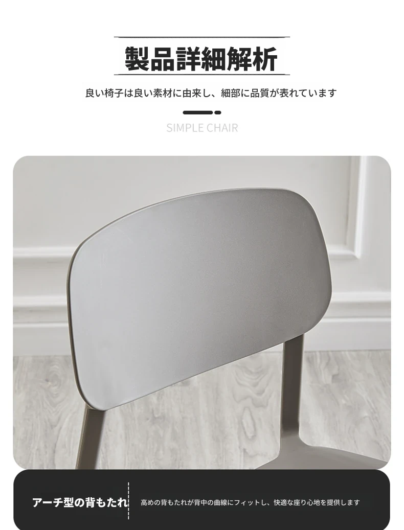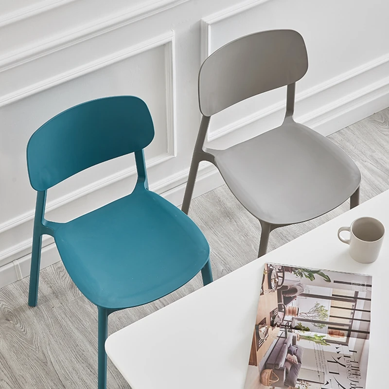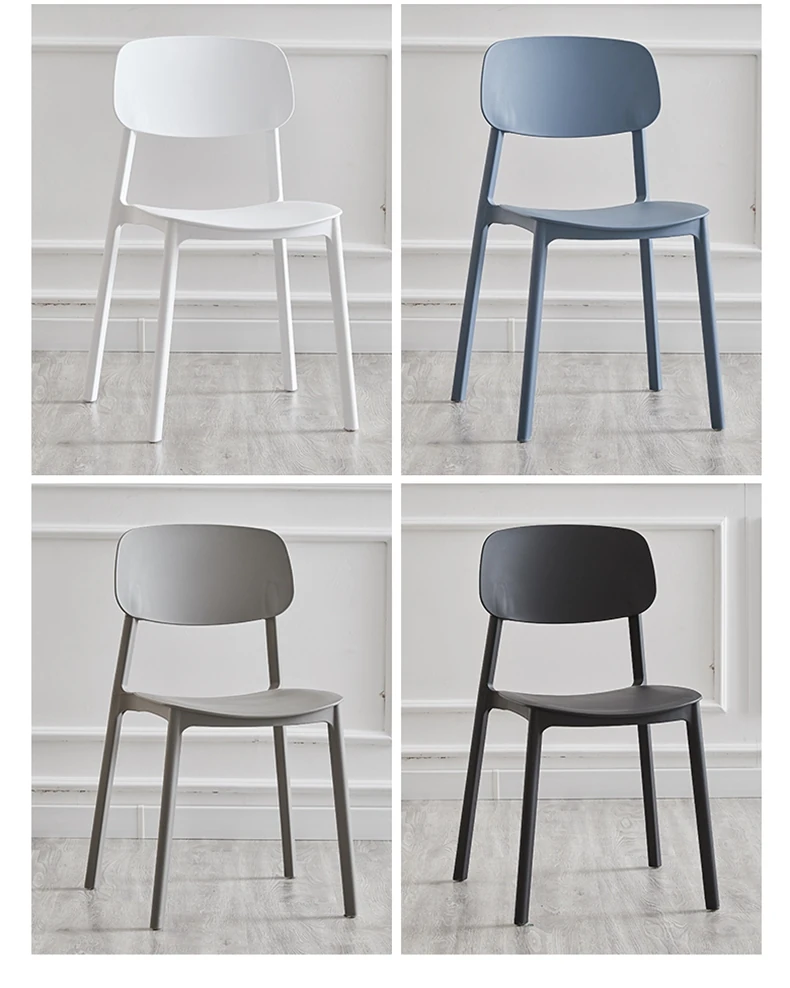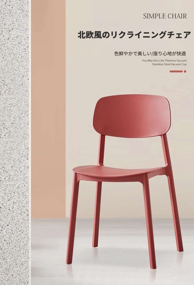 現代的シンプルな北欧スタイルのプラスチック製ダイニングチェア、背もたれ付き、リラックスできる大人向けの簡易テーブルセット。おしゃれで快適な家族の食卓にぴったり!