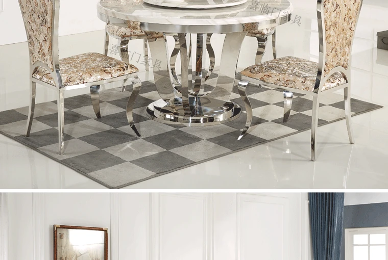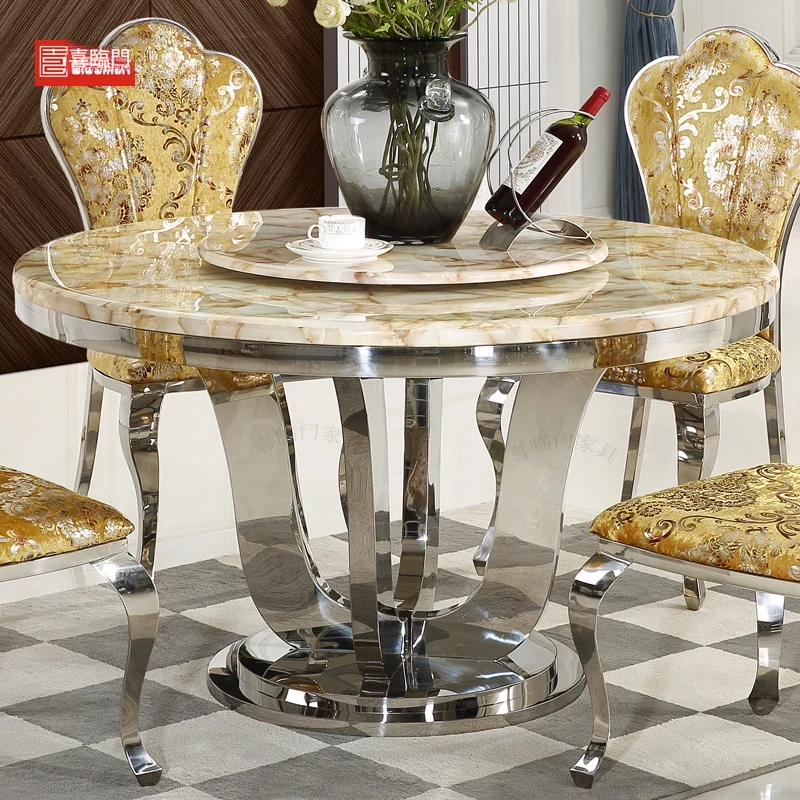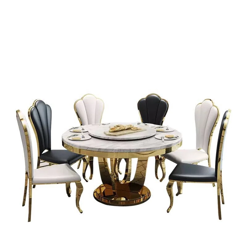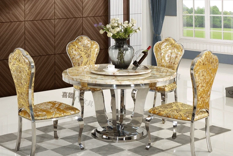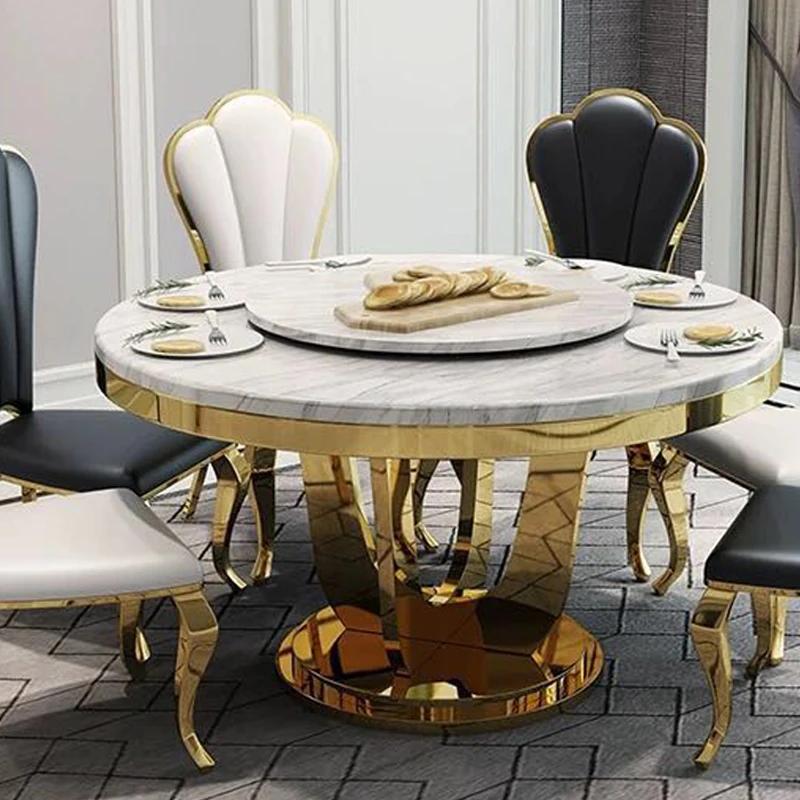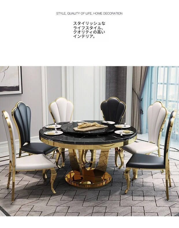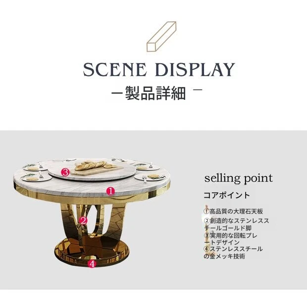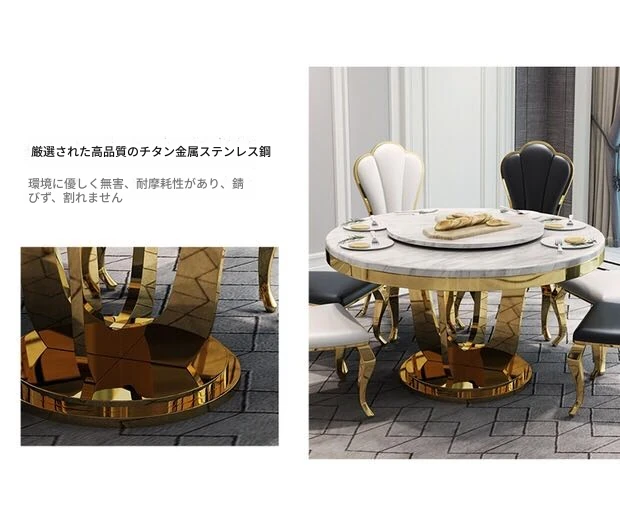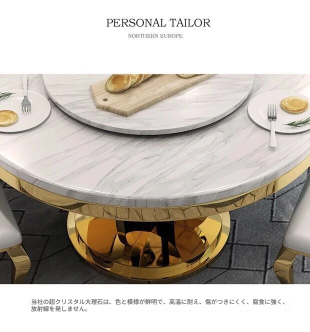 モダンでシンプルな大理石製の円形回転テーブル - 軽やかな高級感が漂う、コンパクトなダイニングセット。小さなお部屋にぴったりのスタイリッシュなデザイン!
