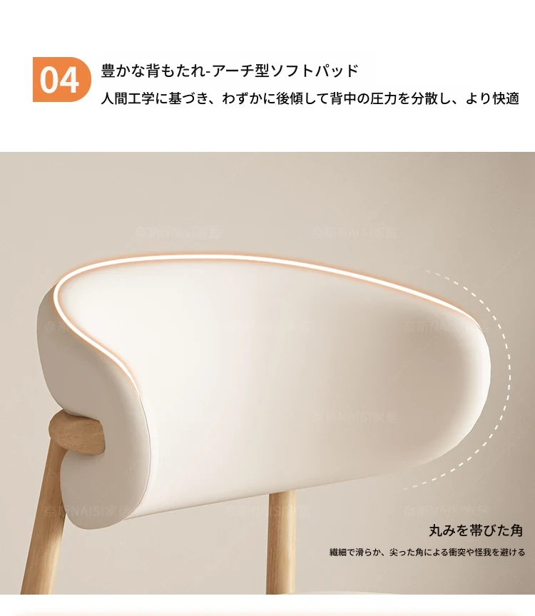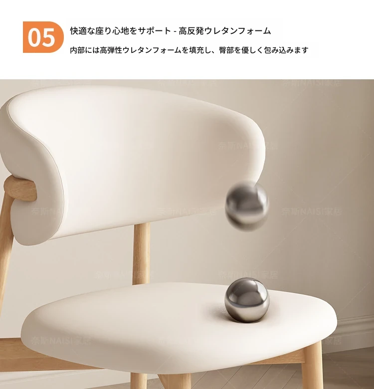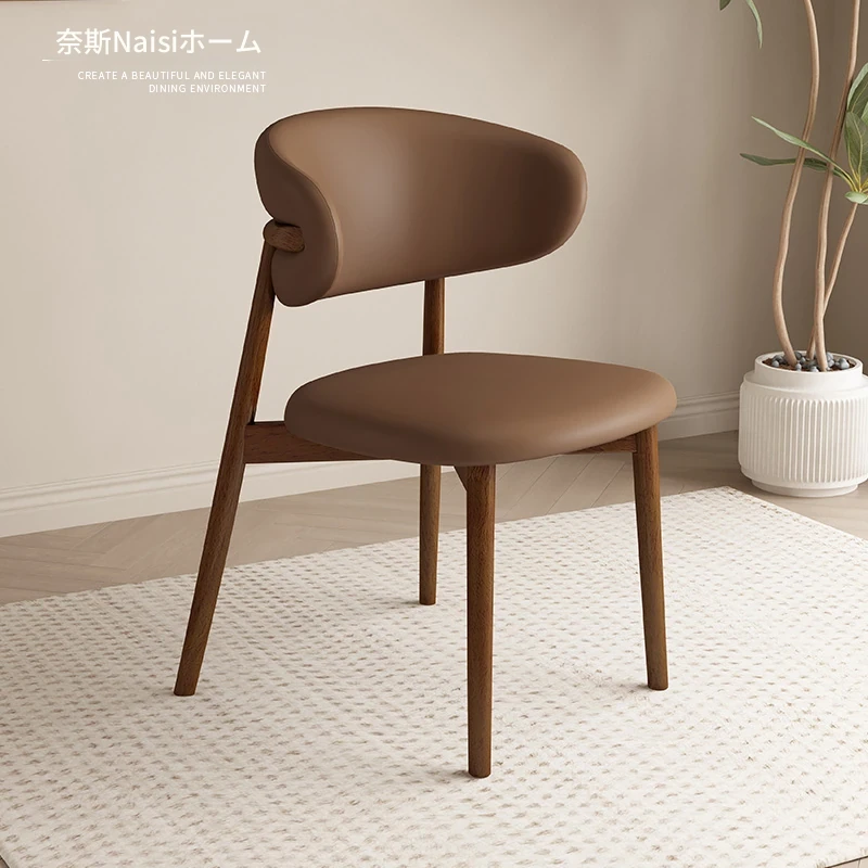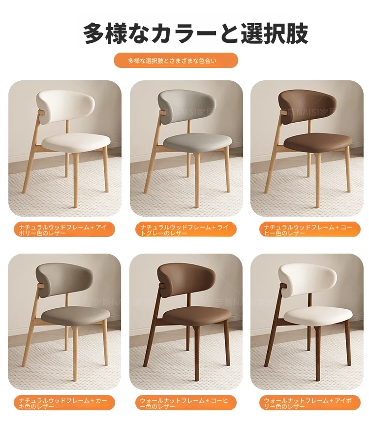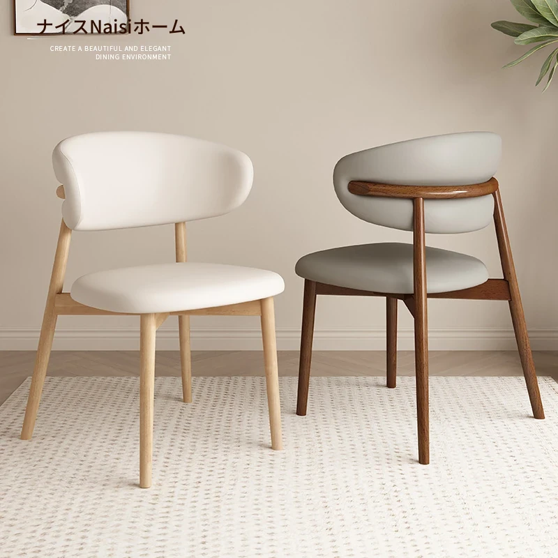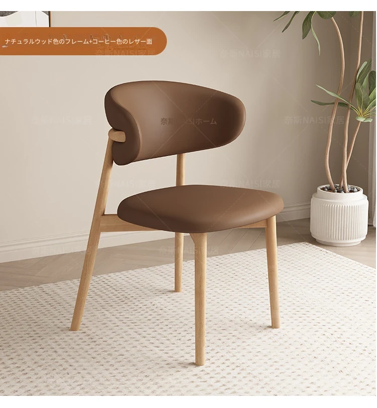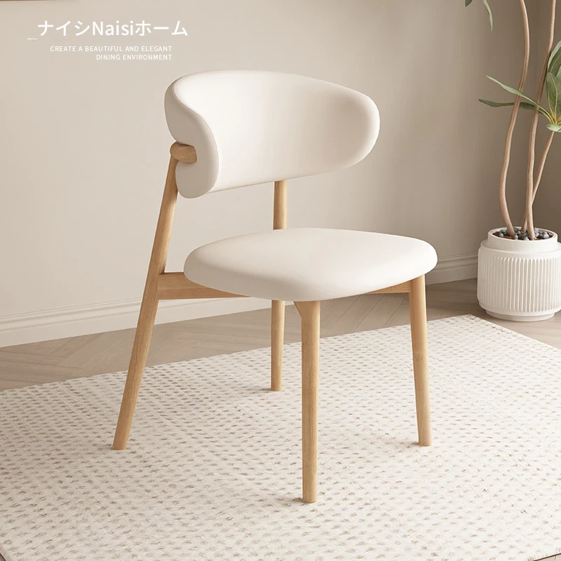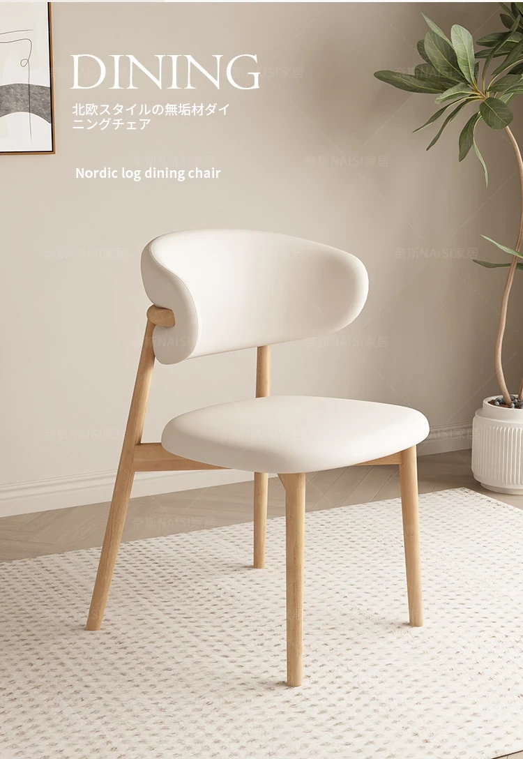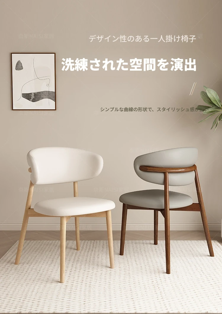 モダンでシンプルなデザインの無垢材ダイニングチェア - 家庭用レストランやカフェに最適な背もたれ付き、軽やかな贅沢感を演出。デザイナーが手掛けたスタイリッシュな椅子で、あなたの食卓を格上げします!