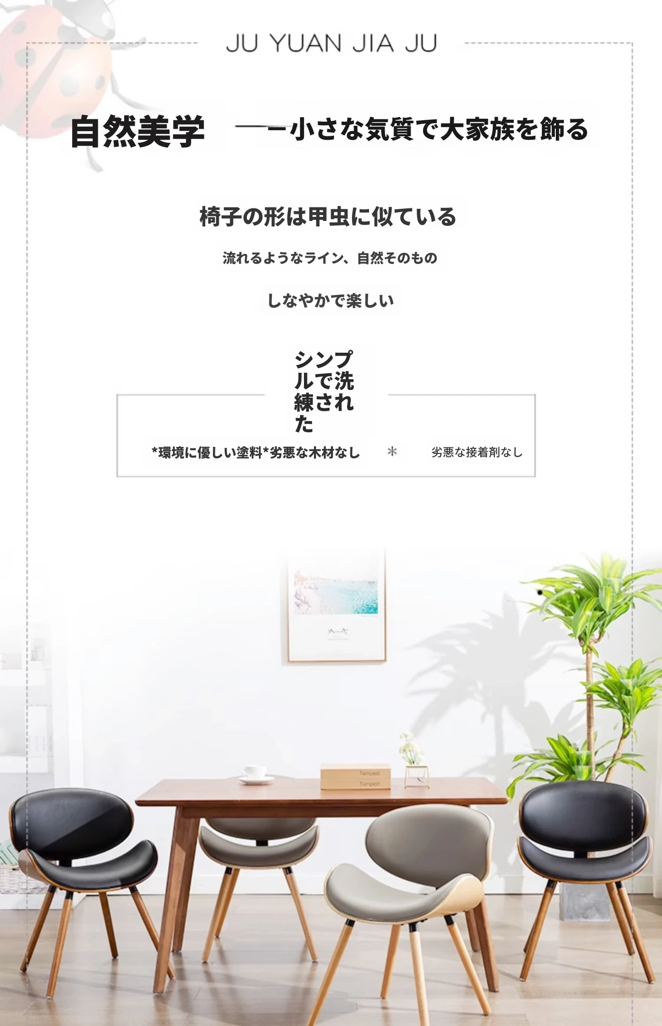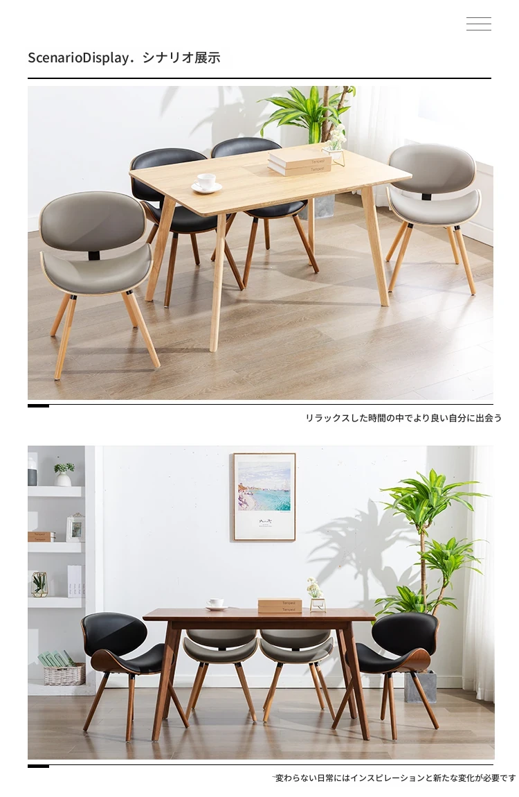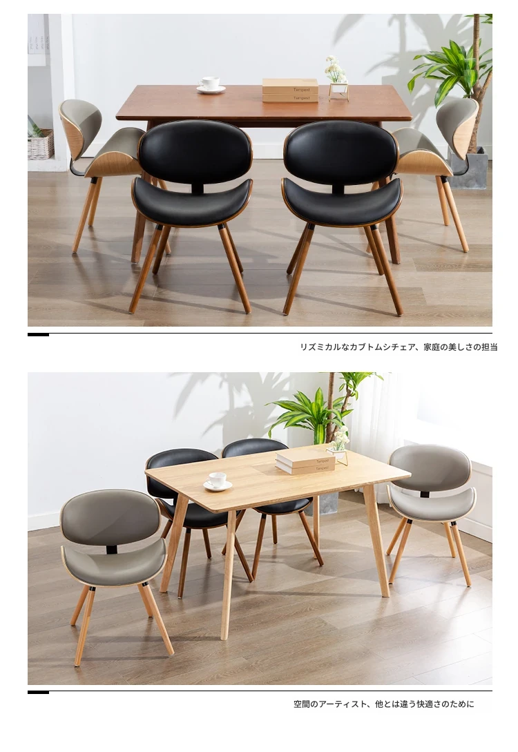 オシャレなミニマリストデザインのダイニングテーブル&チェアセット!高品質の無垢材を使用した家庭用談話椅子、人気のシェルベンチスタイルの現代的な背もたれ付きダイニングチェア。おしゃれな空間を演出します!