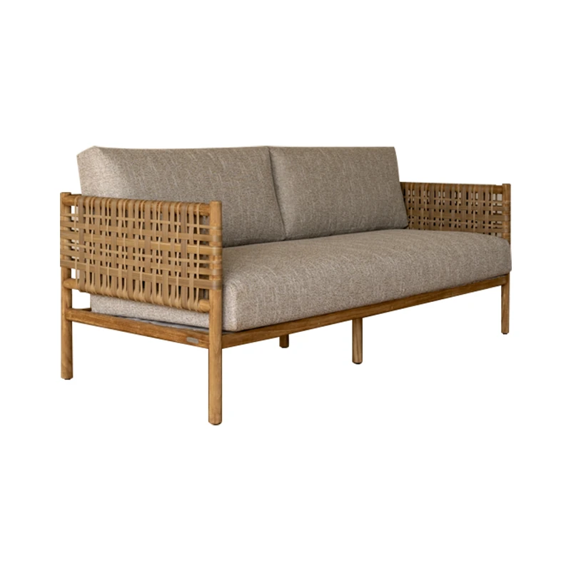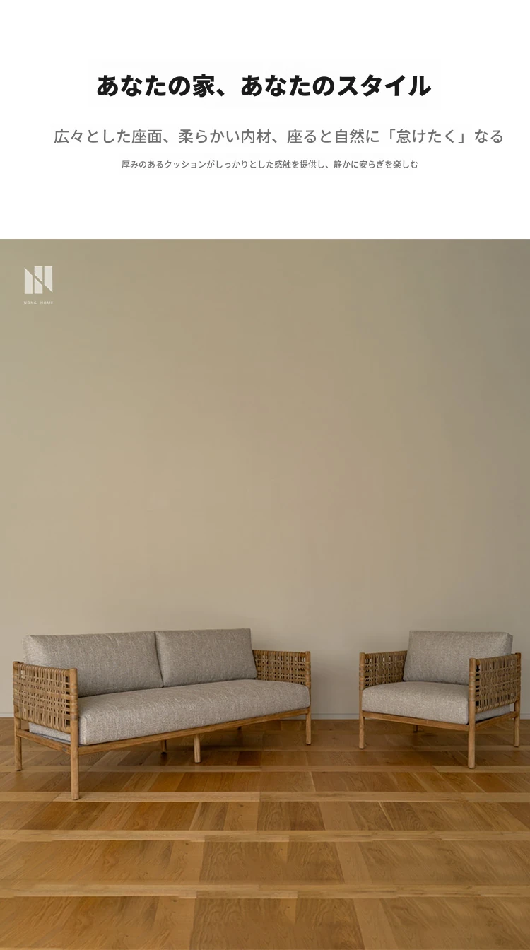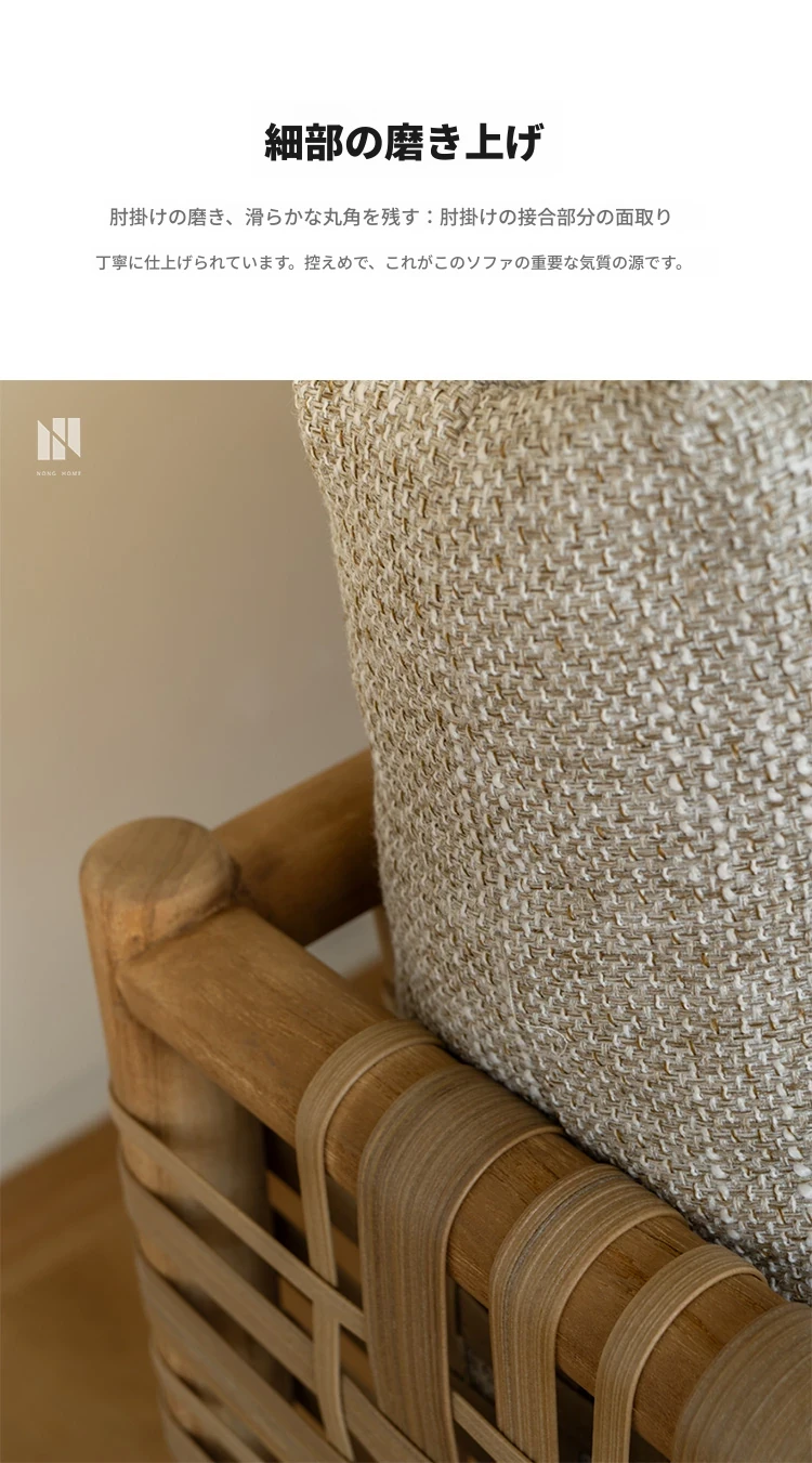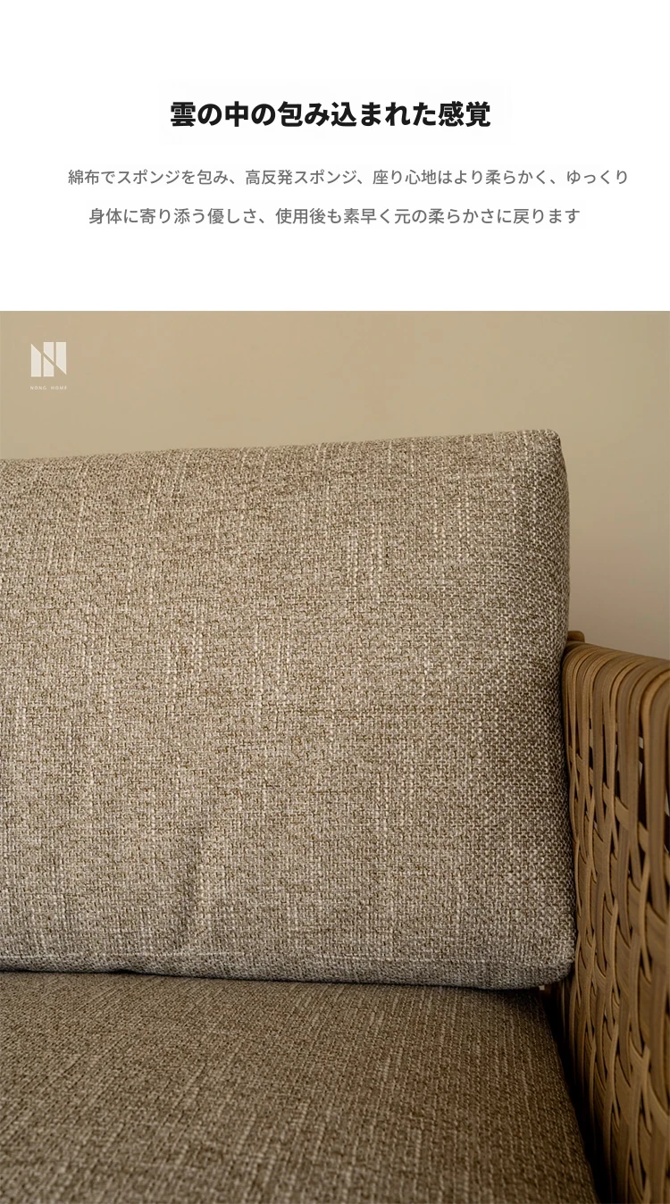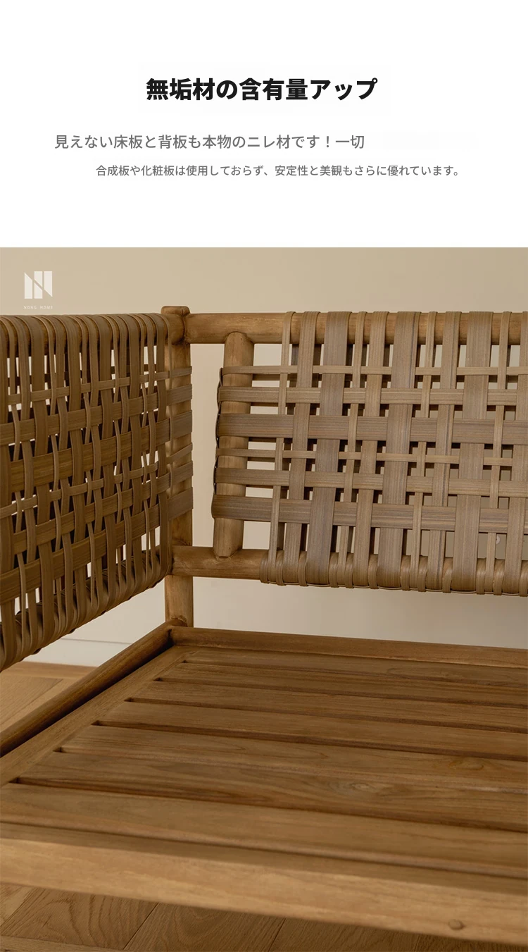 南洋ビンテージ風リビング用無垢材ソファ|和モダンな侘寂スタイルの籐編み3人掛けソファ|民宿やカフェにぴったりのスタイリッシュなカウンターソファ!