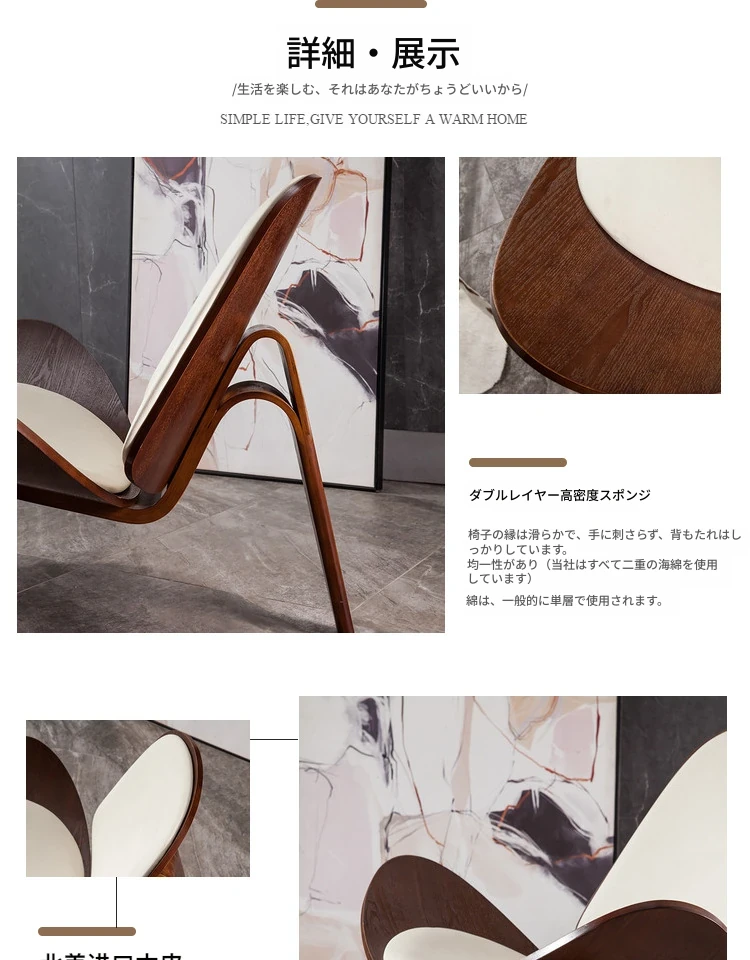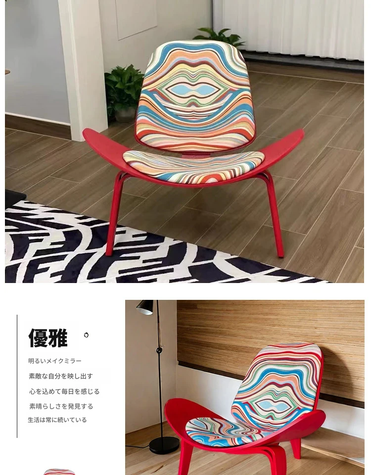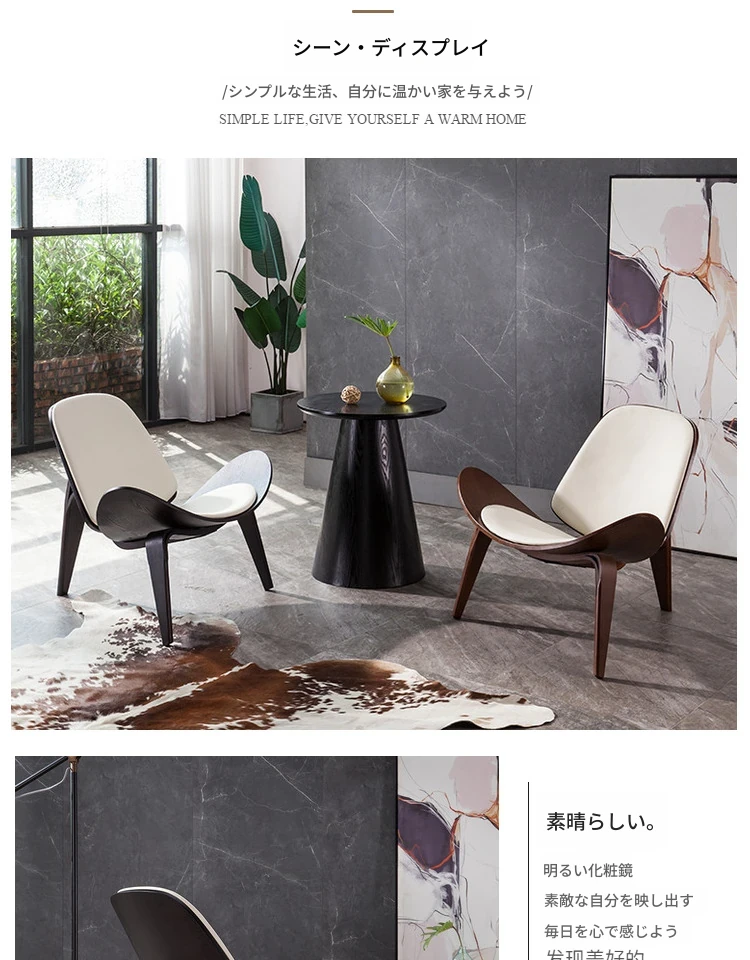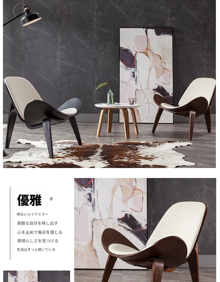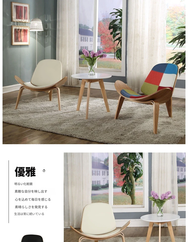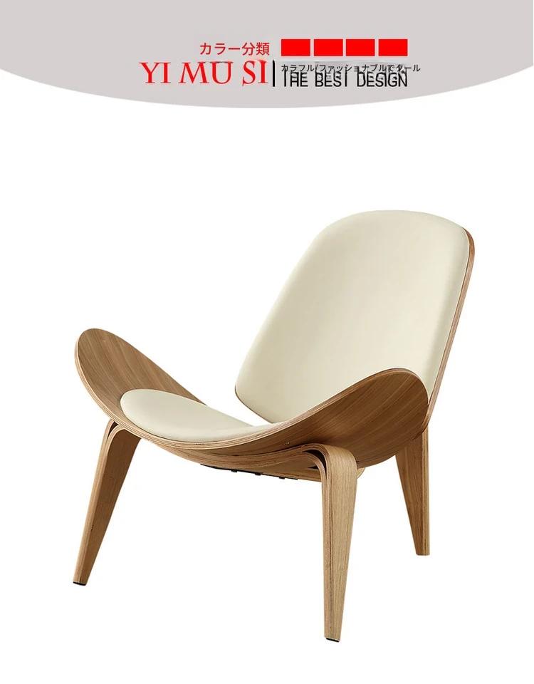 北欧アートの快適な無垢材製ライトラグジュアリー、創造的な現代的ミニマリズムデザイン、デザイナーによるシングルソファ、微笑む飛行機シェルチェア