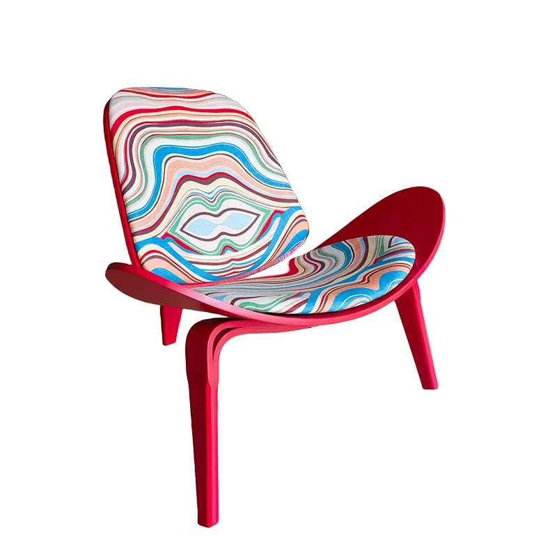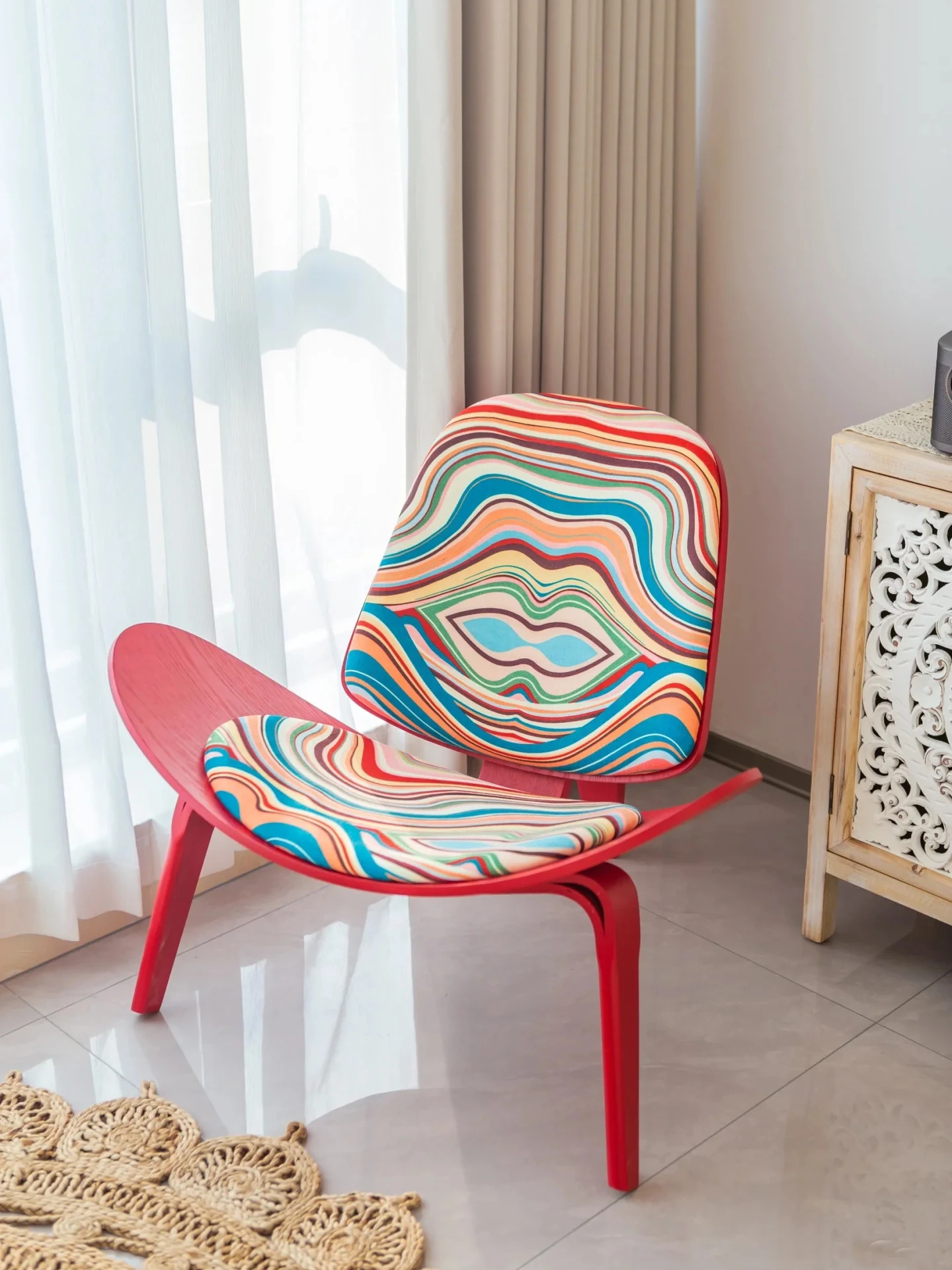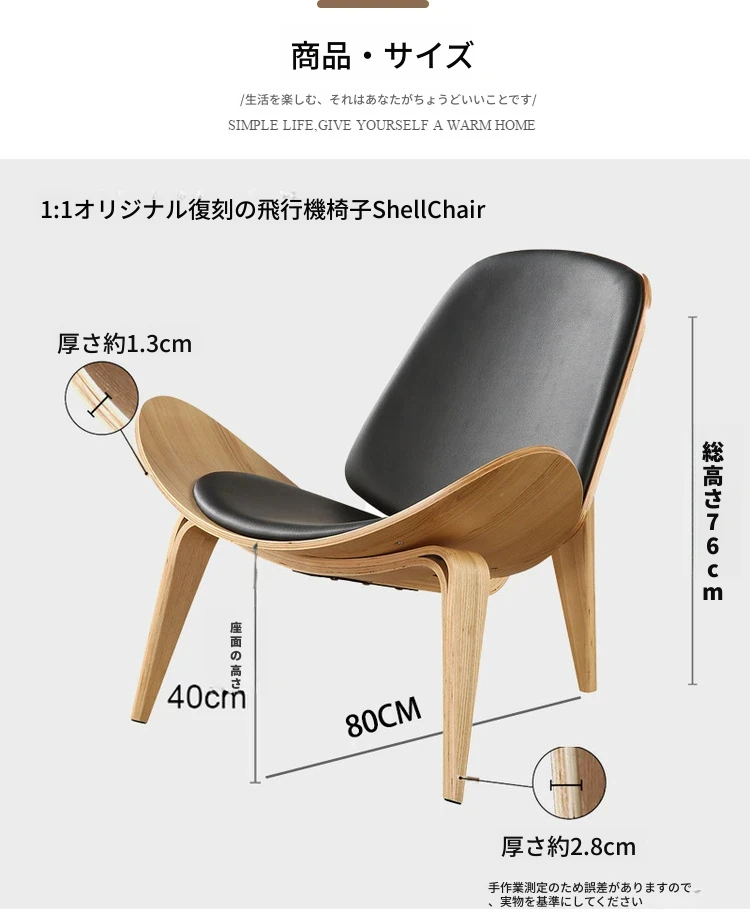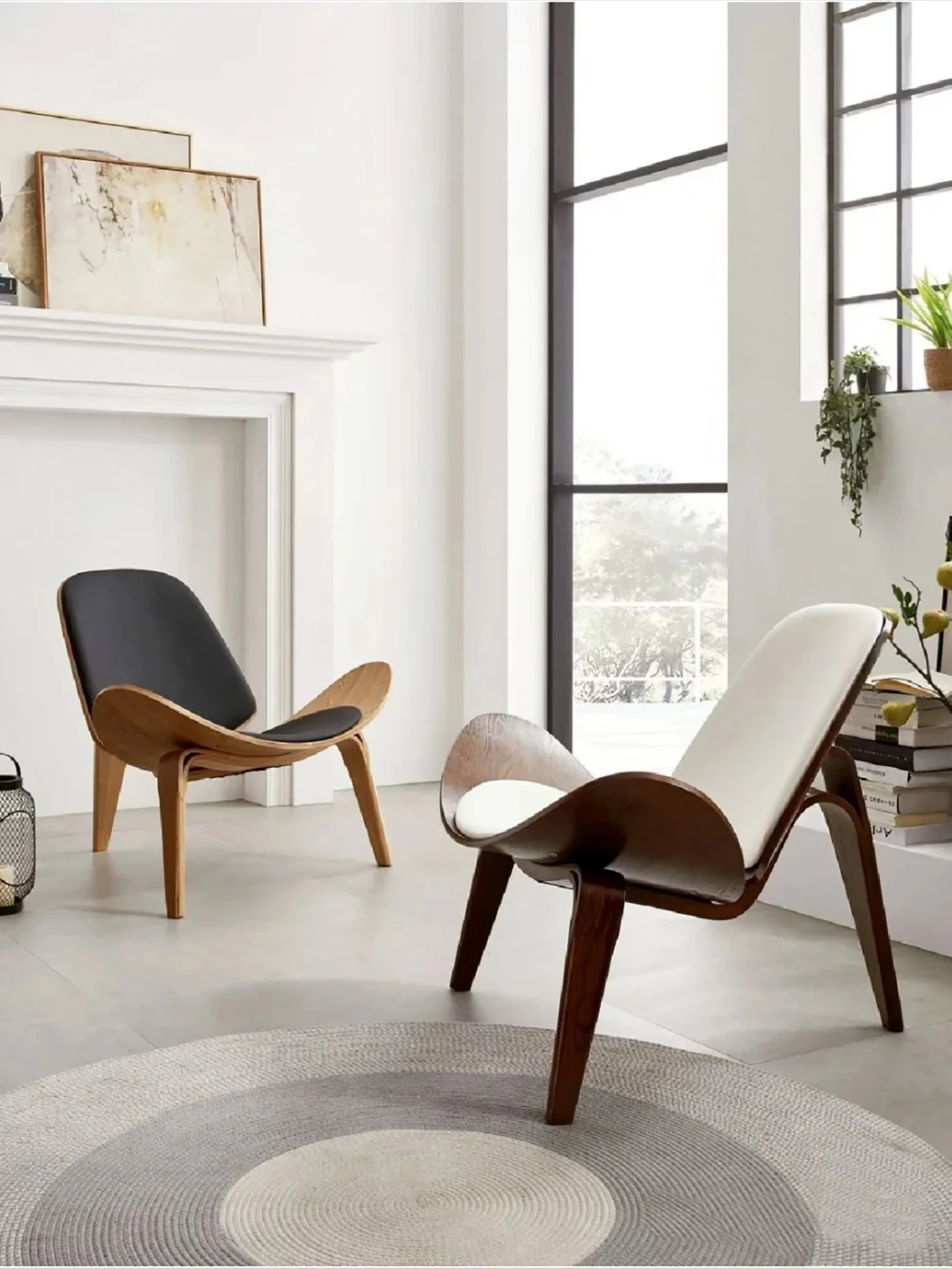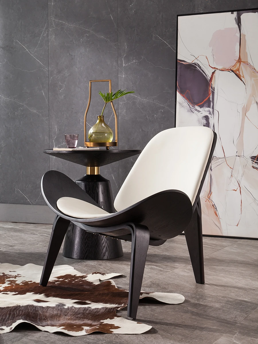 北欧アートの快適な無垢材製ライトラグジュアリー、創造的な現代的ミニマリズムデザイン、デザイナーによるシングルソファ、微笑む飛行機シェルチェア