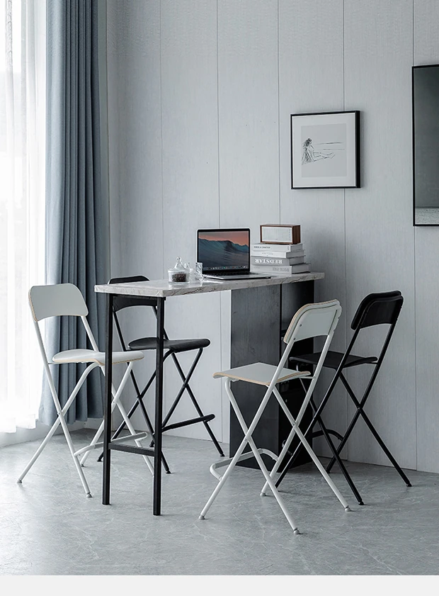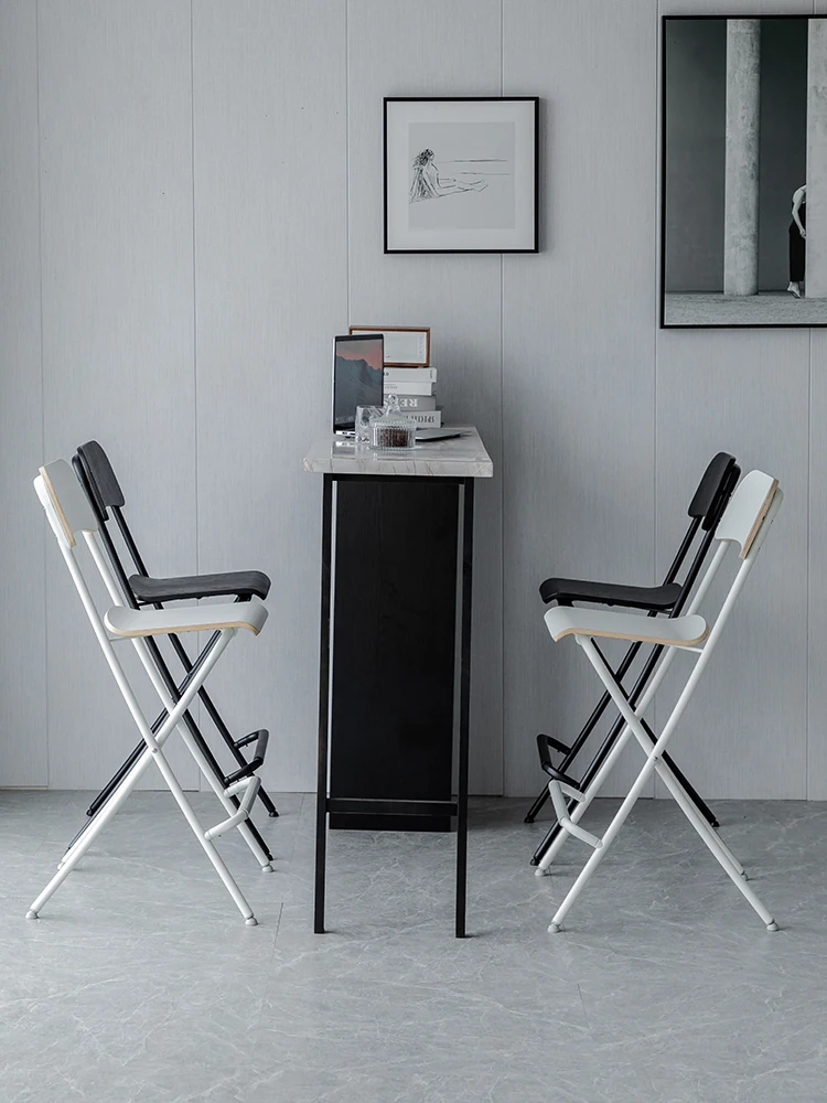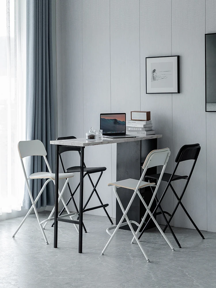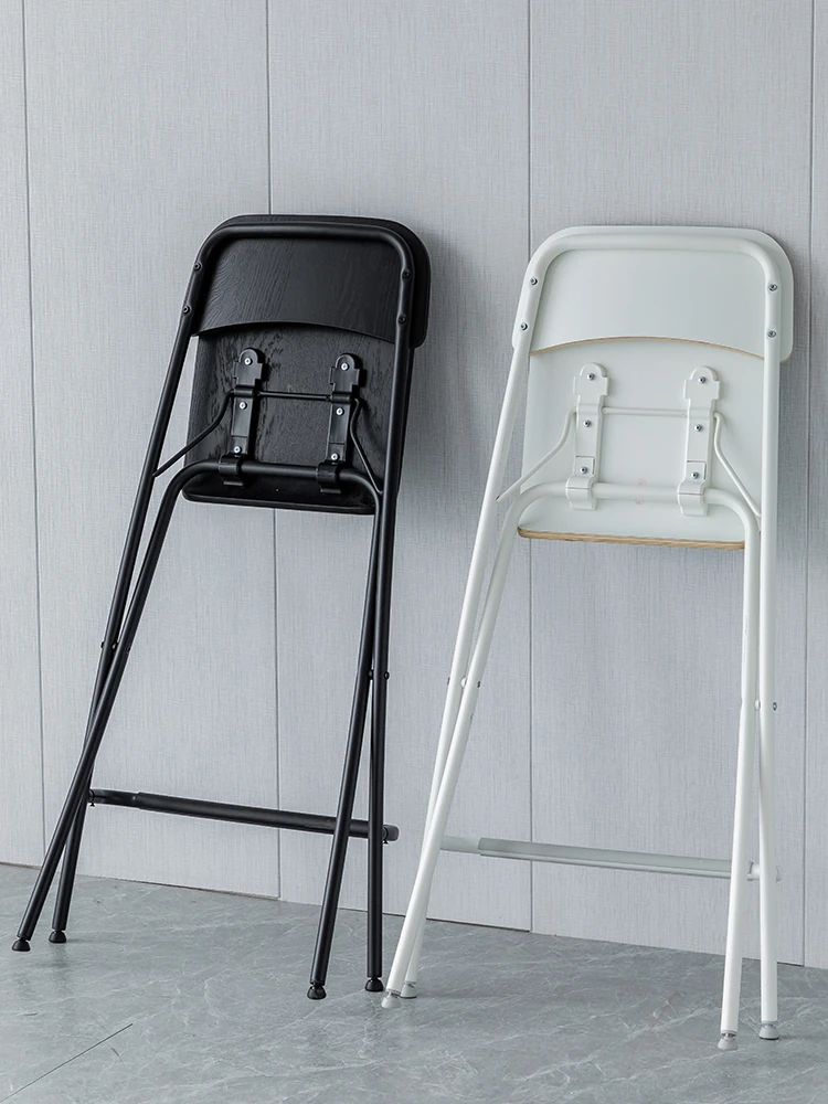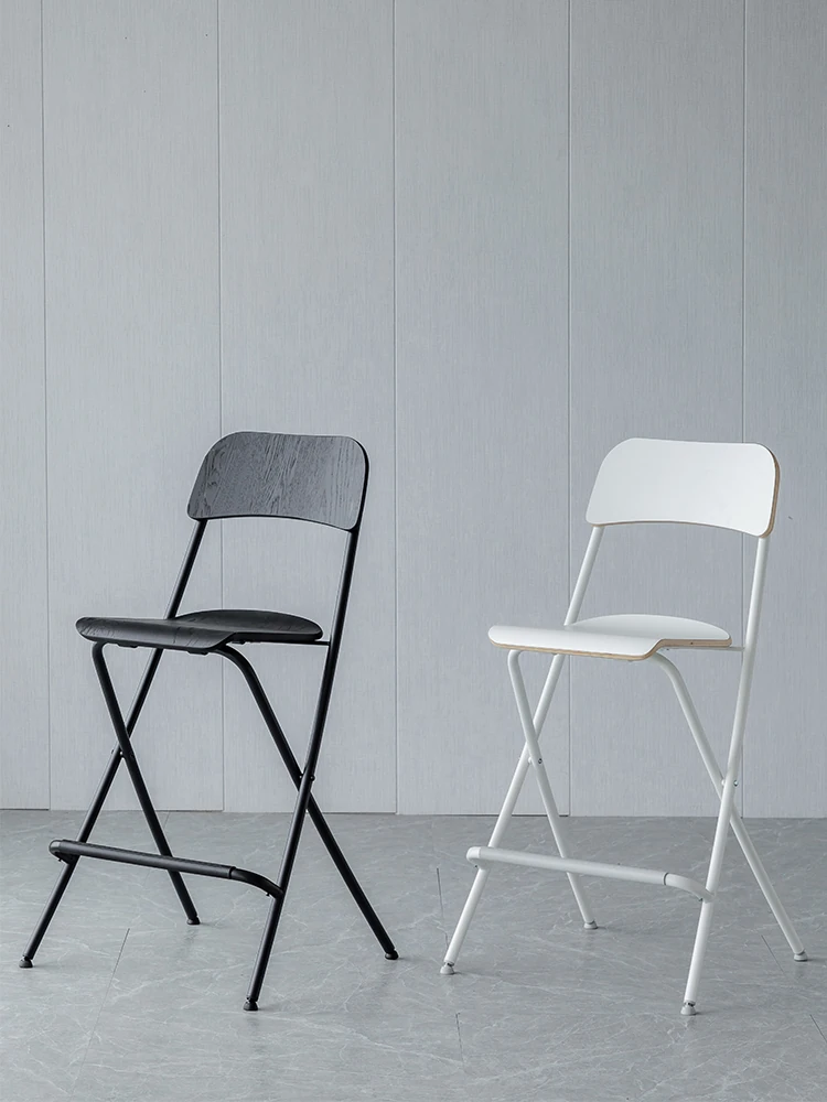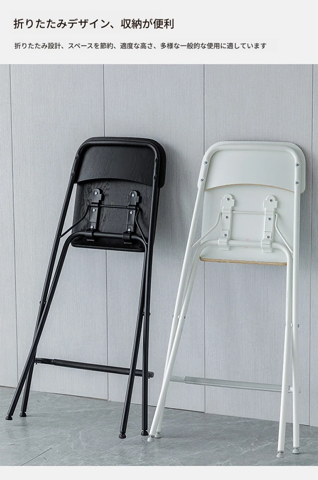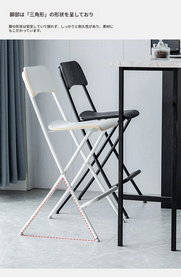 北欧スタイルのフランクリン折りたたみバースツール - モダンな無垢材で作られた収納便利なダイニングチェア、洗練されたデザインでおしゃれな空間を演出!