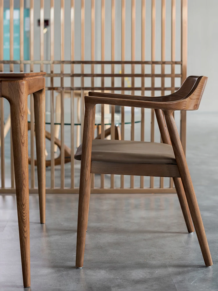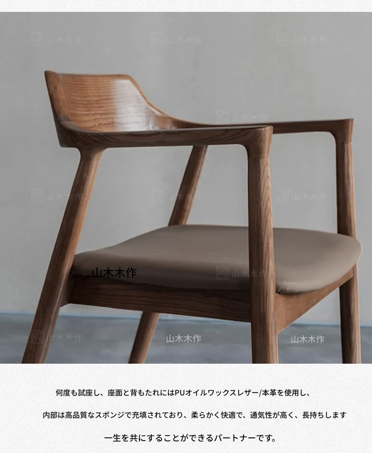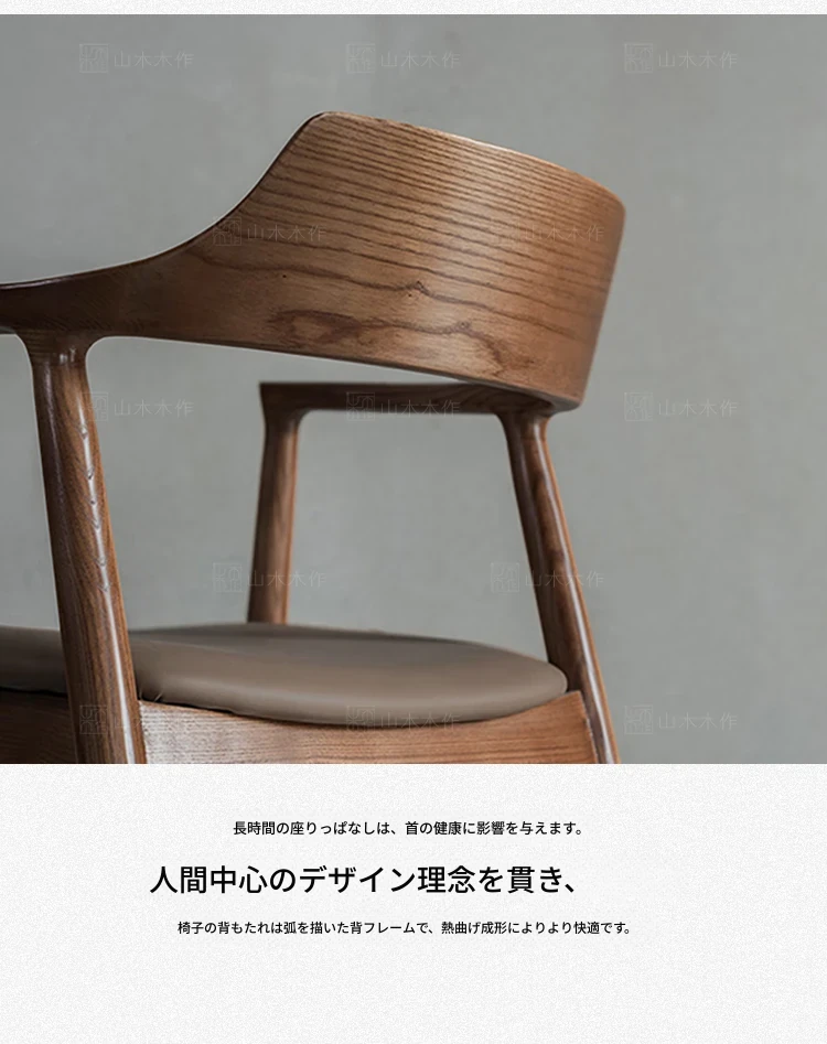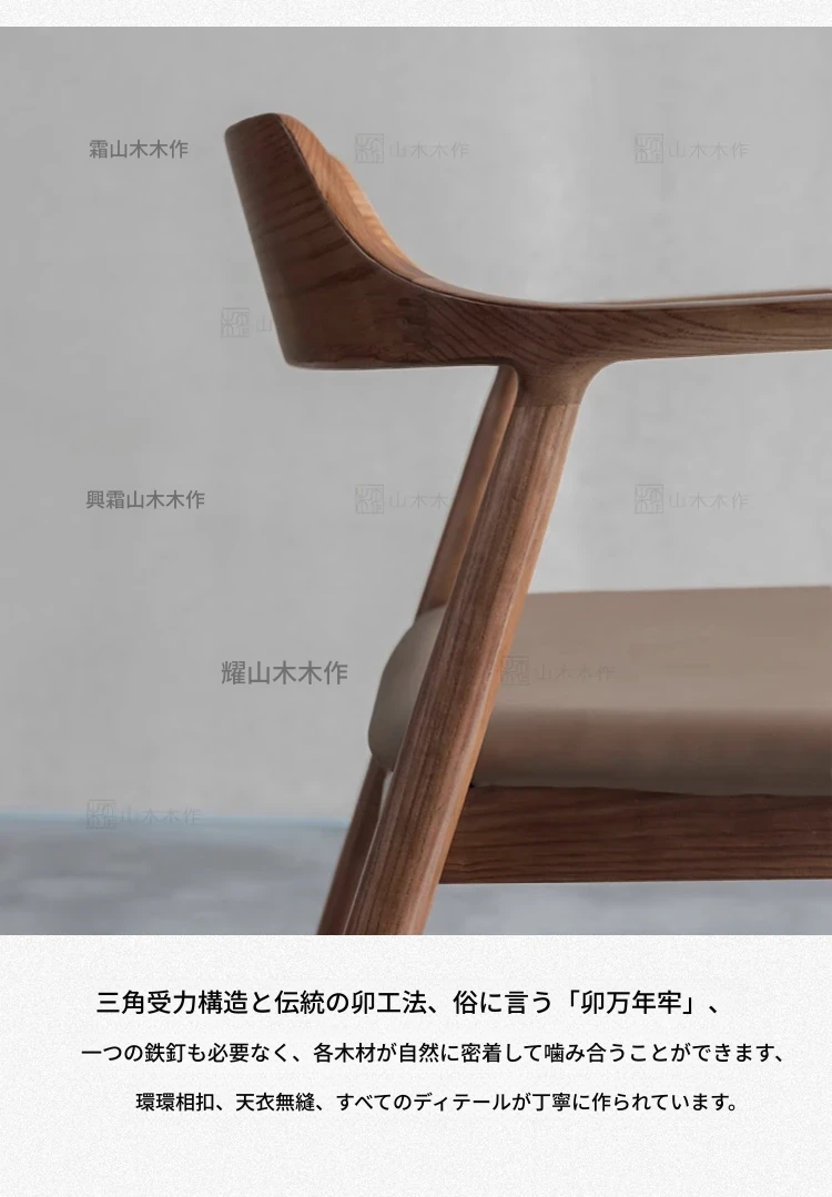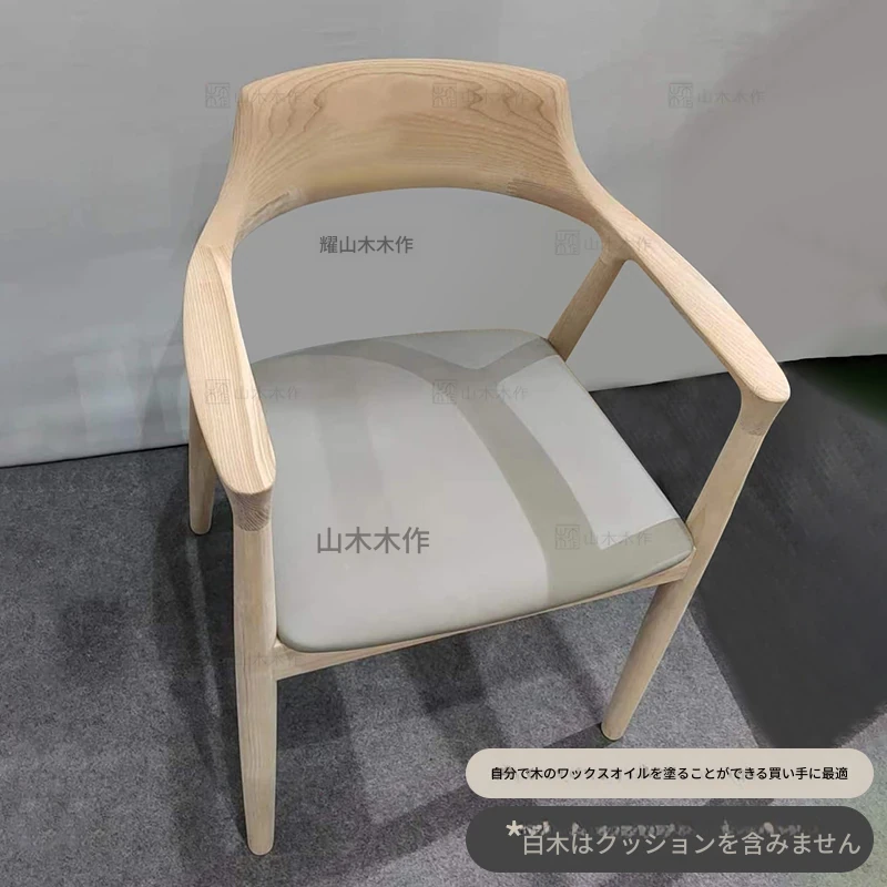 北欧風のシンプルな和モダンデザイン、広島産の高品質布製リラックスチェア。洗練された侘寂の美しさを持つ、木製のダイニングチェアで、あなたの食卓に優雅さをプラス。