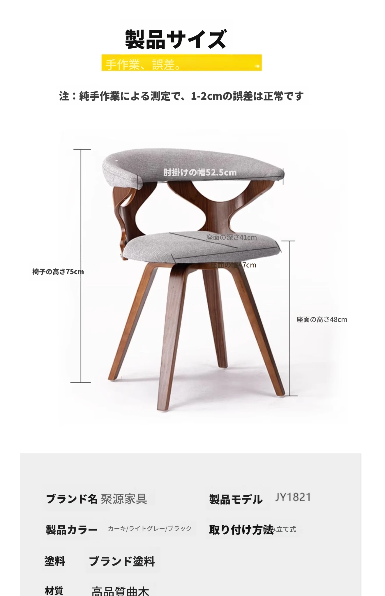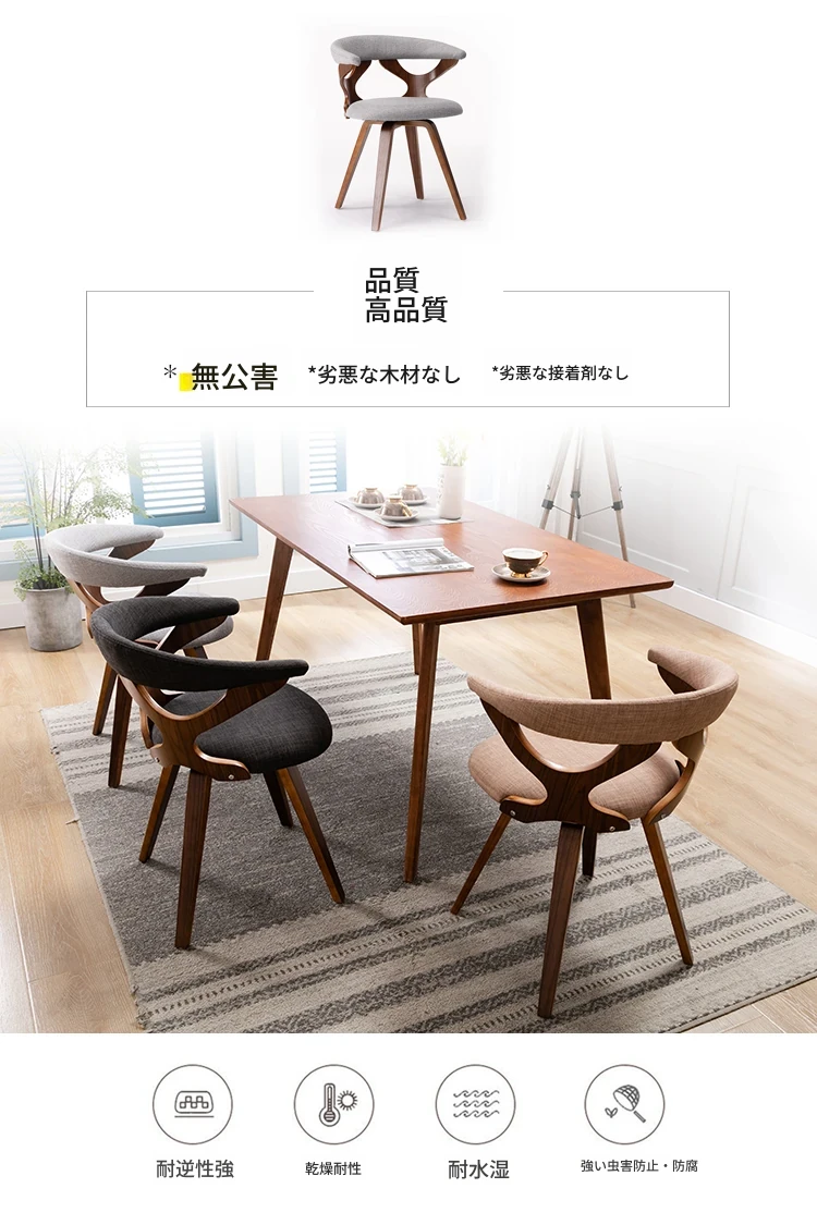 学生のための学習チェア - スタイリッシュな北欧デザインの実木製デスクチェア。快適な座り心地で、書斎やオフィスに最適。家庭用ダイニングテーブルにもぴったりな、牛角スタイルの実用的な椅子です!
