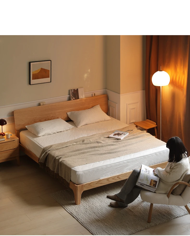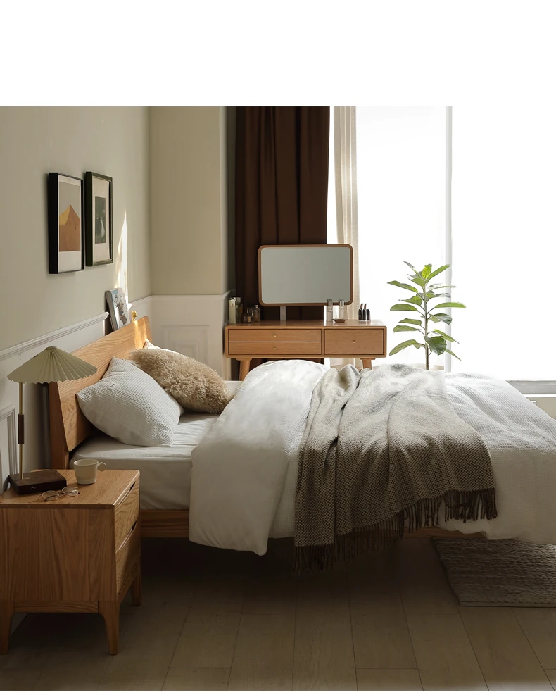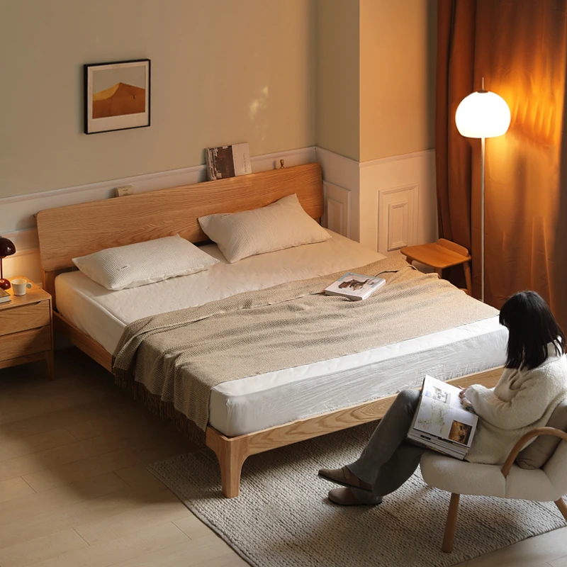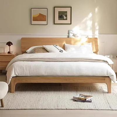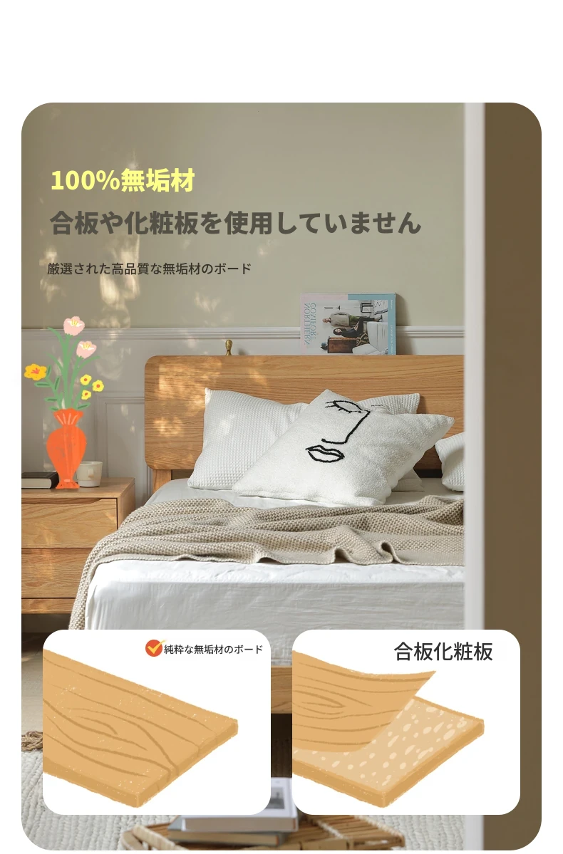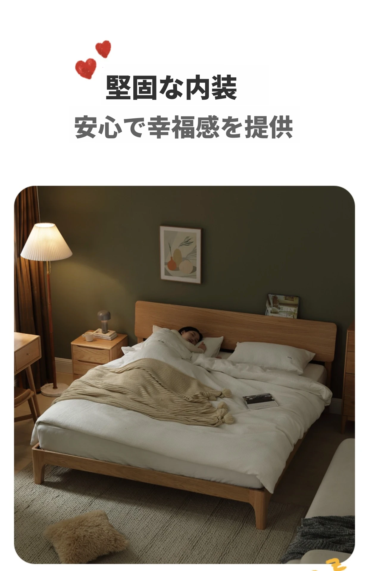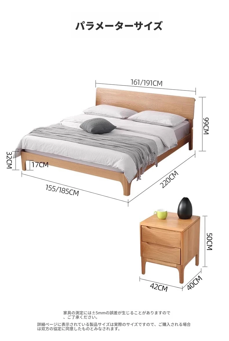 北欧式天然オーク使用、高級品質のコンパクト主寝室用セミダブルベッド - ロマンチックな結婚生活を始めましょう、幅広いサイズ選択肢1.5mから1.8m。