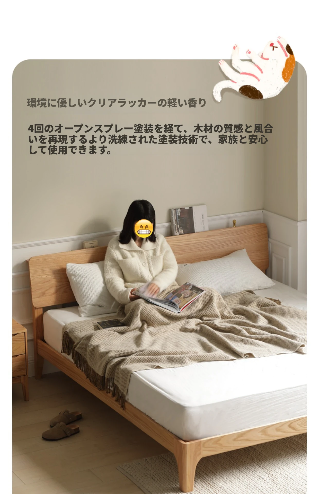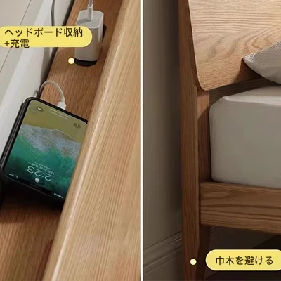 ベッド【アップグレード版】+ナイトスタンドX1個 高背もたれ+実木板封入