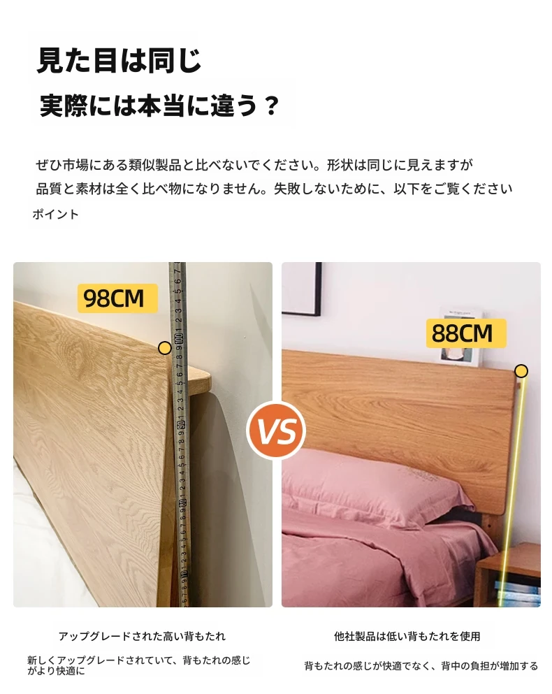 ベッド【アップグレード版】+マットレス【ヤシ繊維版】 高背もたれ+実木板封入