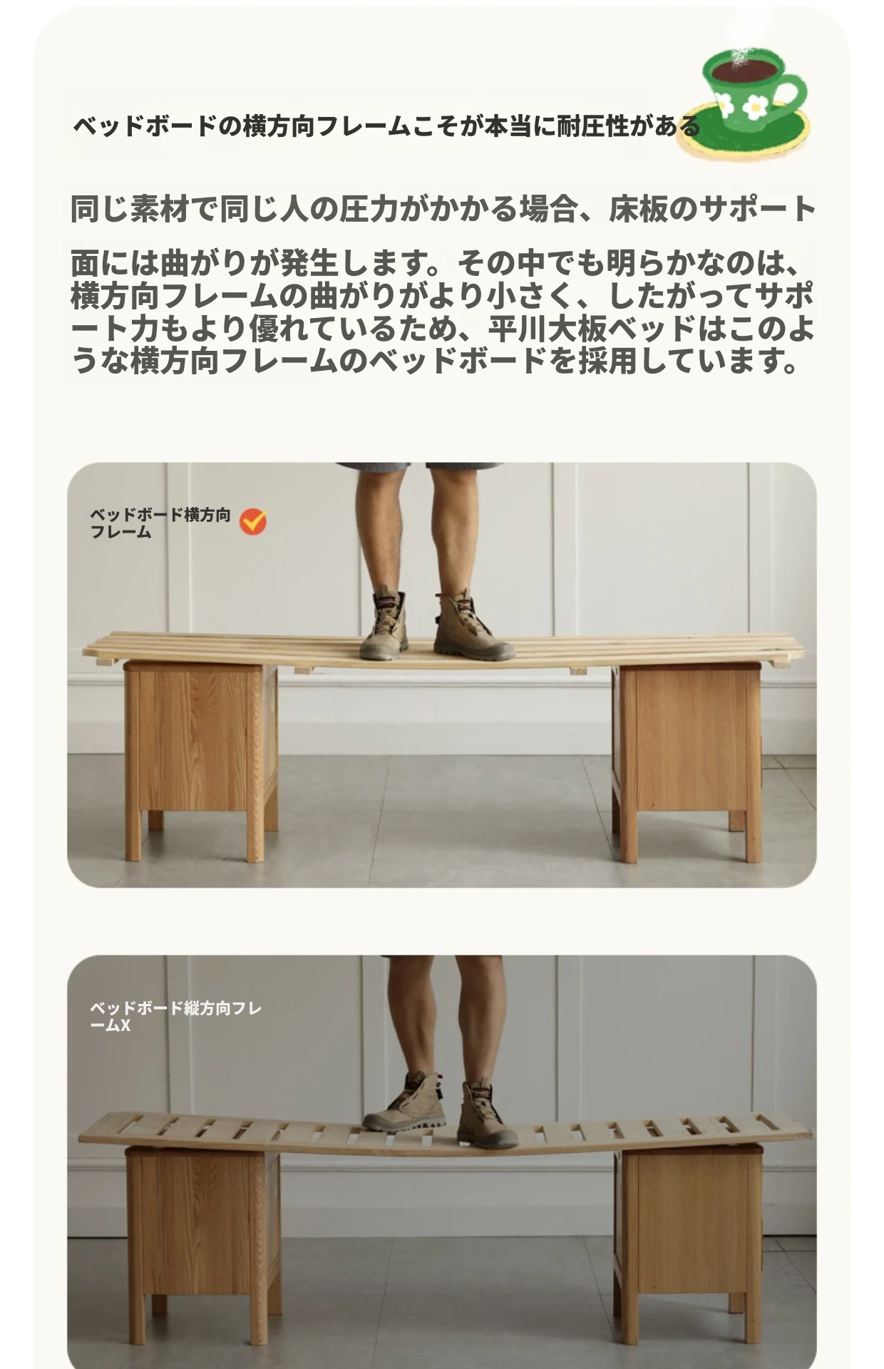 白オークベッドアップグレード版【シングルベッド】 高背もたれ+実木板封入