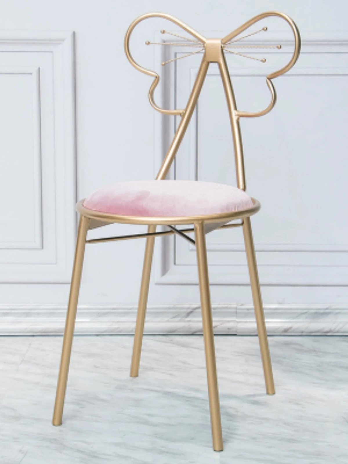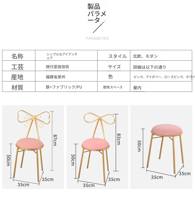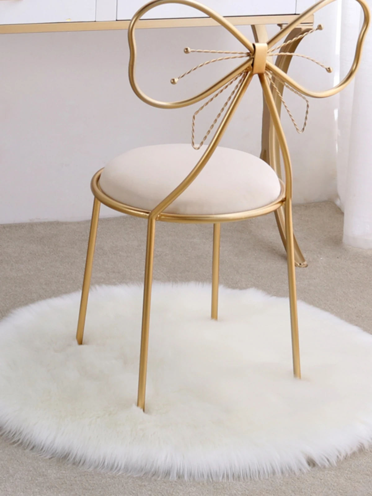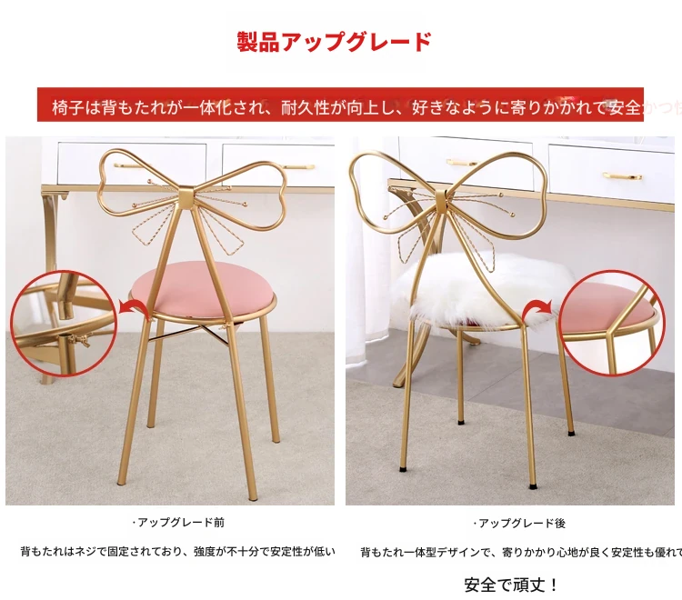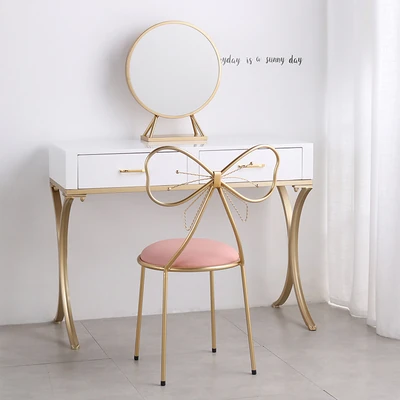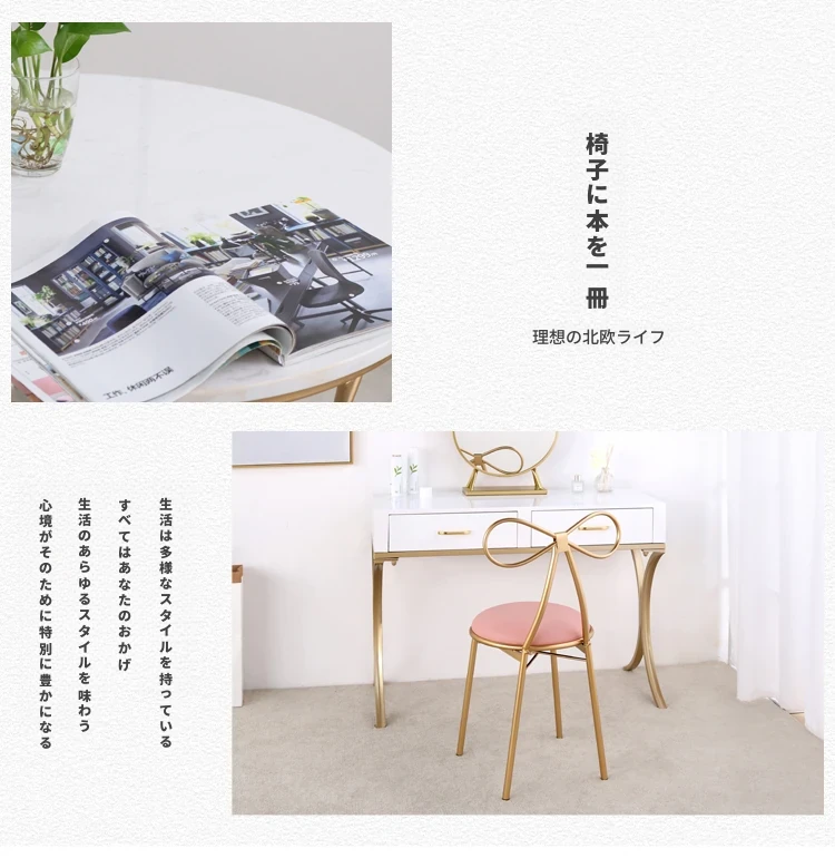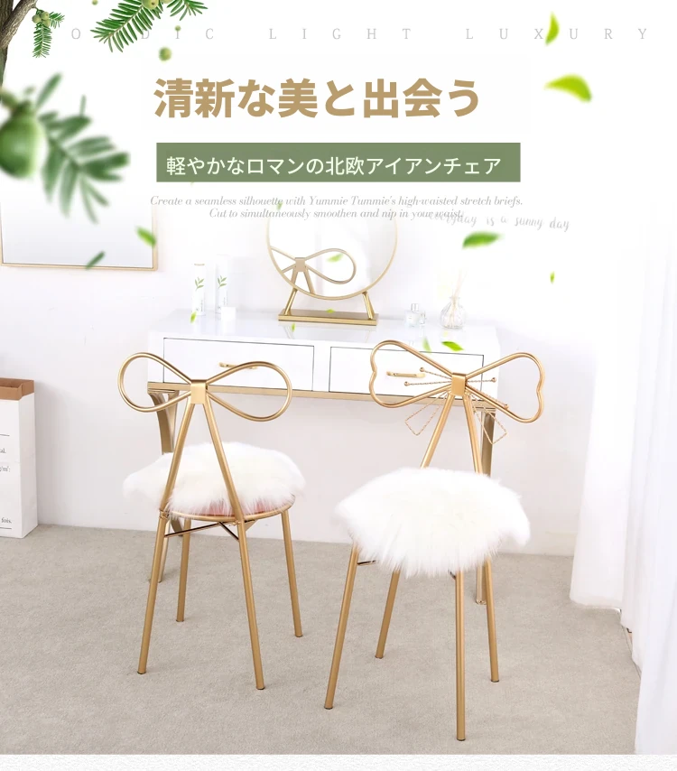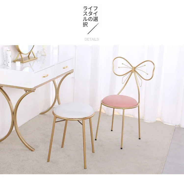 北欧スタイルのプリンセス美ネイル&メイクアップチェア - リボンデザインの可愛い椅子、インスタ映えする少女心あふれるドレッサースツール!