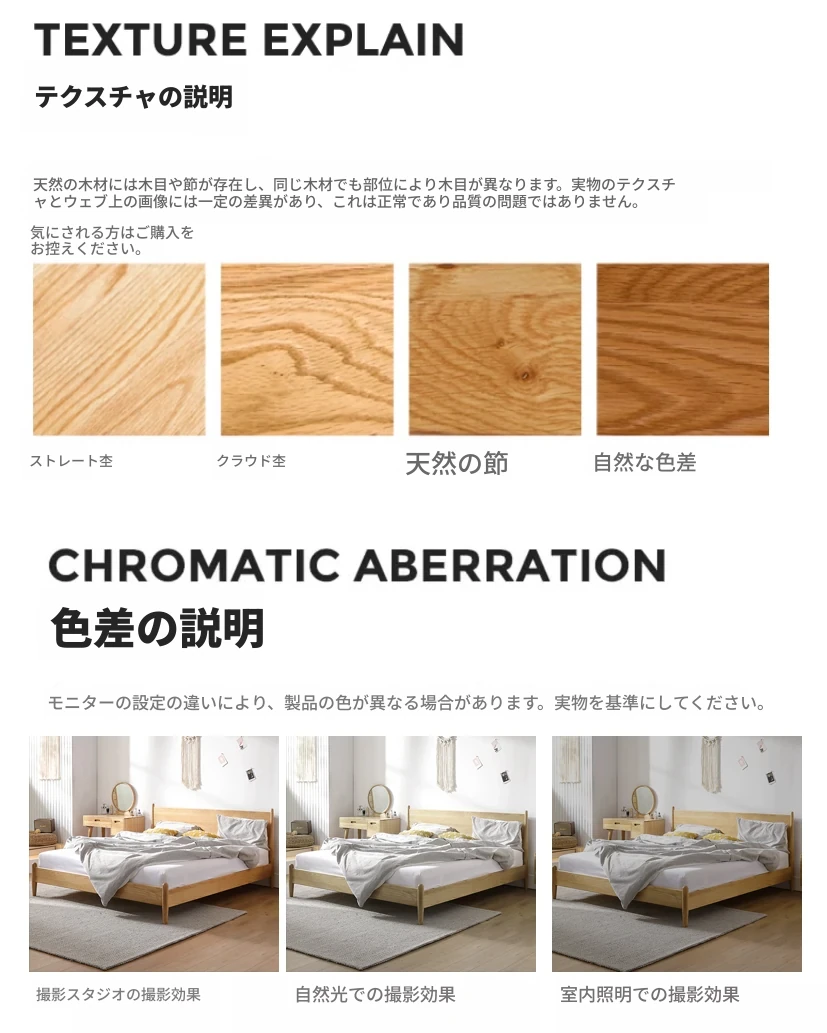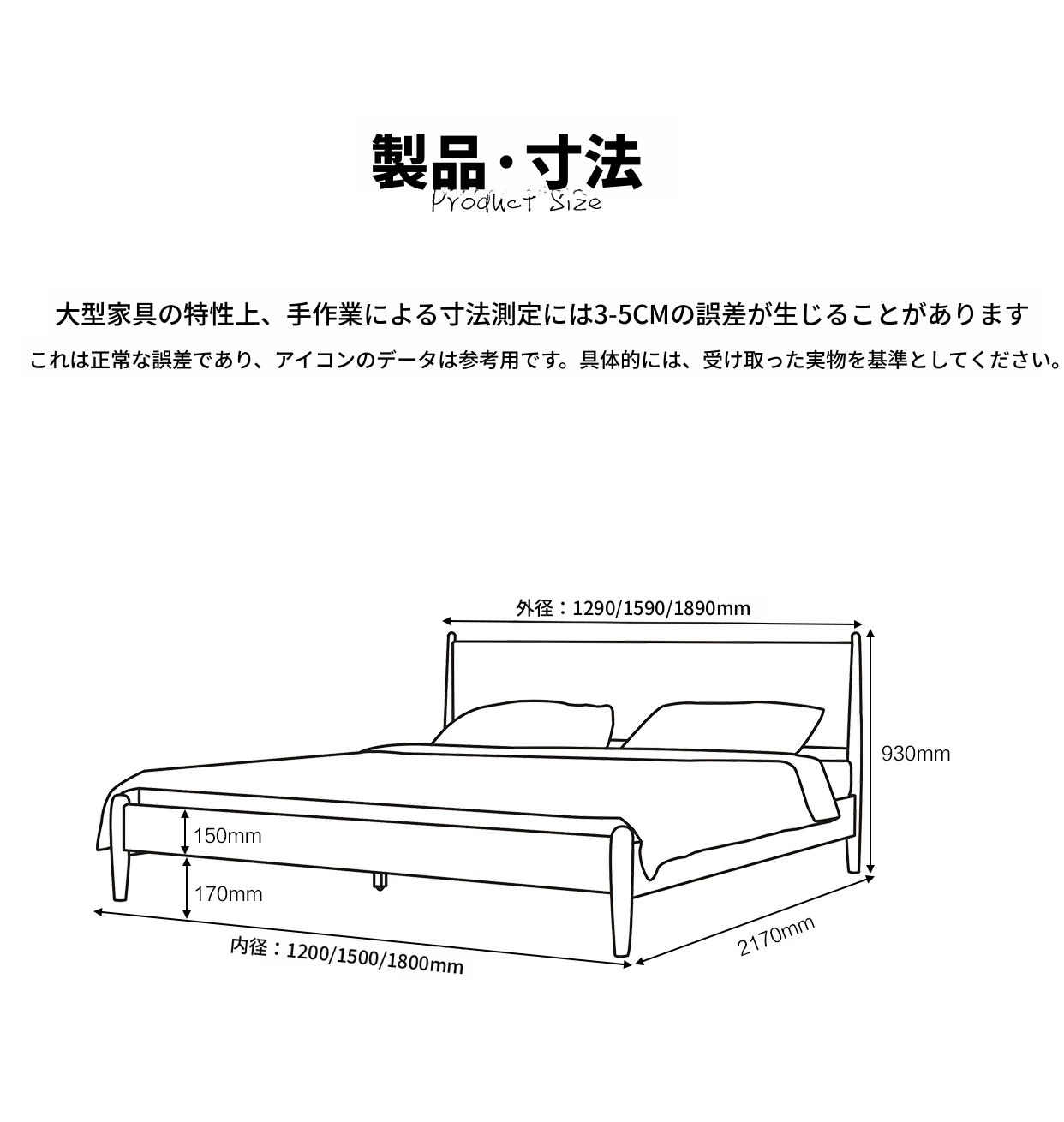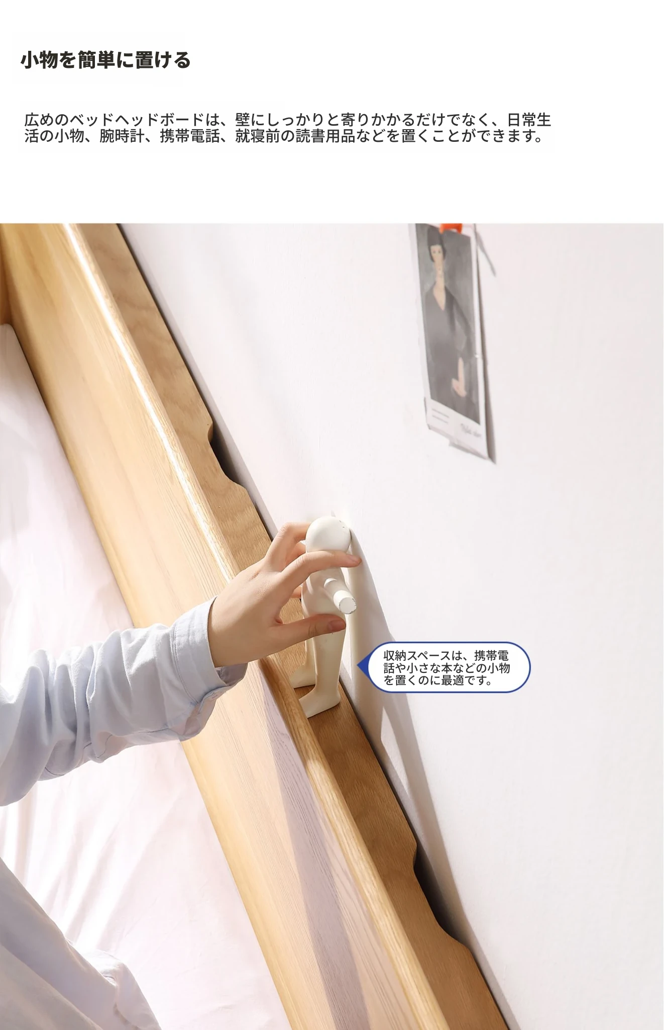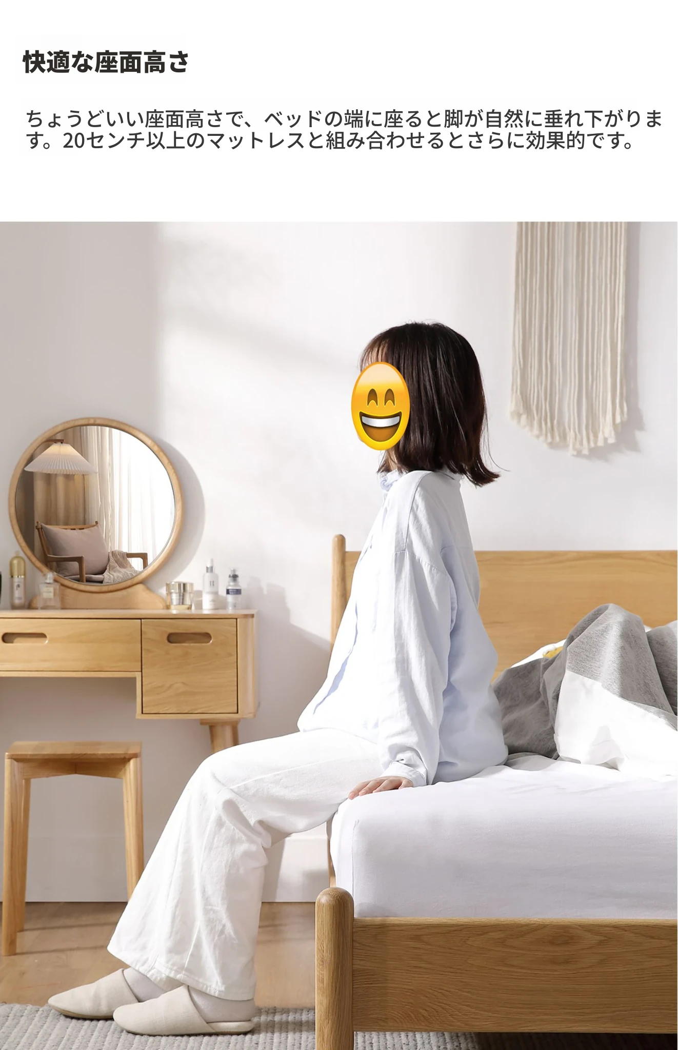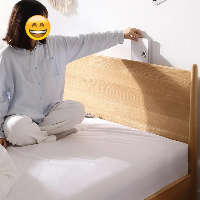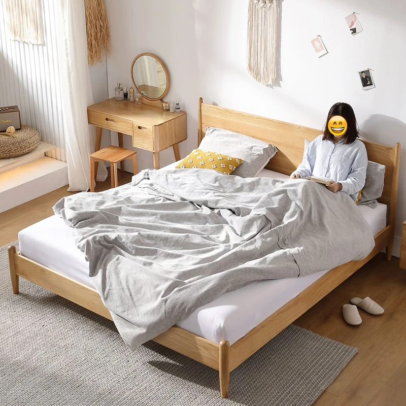 北欧ナチュラルウッドスタイルの白橡木製ベッド- 主寝室にも予備寝室にもぴったりなシンプルなデザイン!選べるサイズ:150cmまたは180cmのダブルベッド、特別な一日に最適なウエディングベッド。