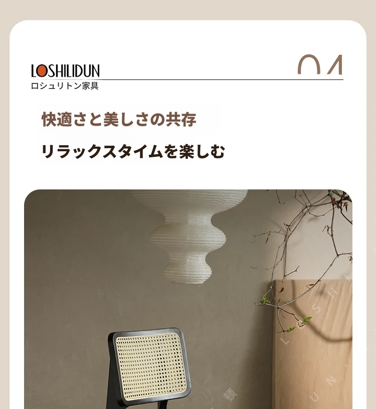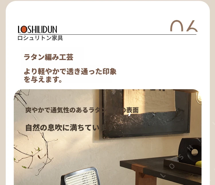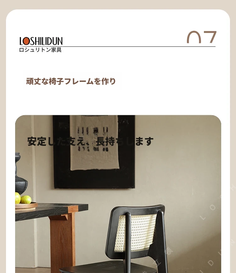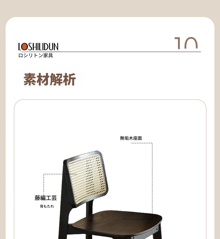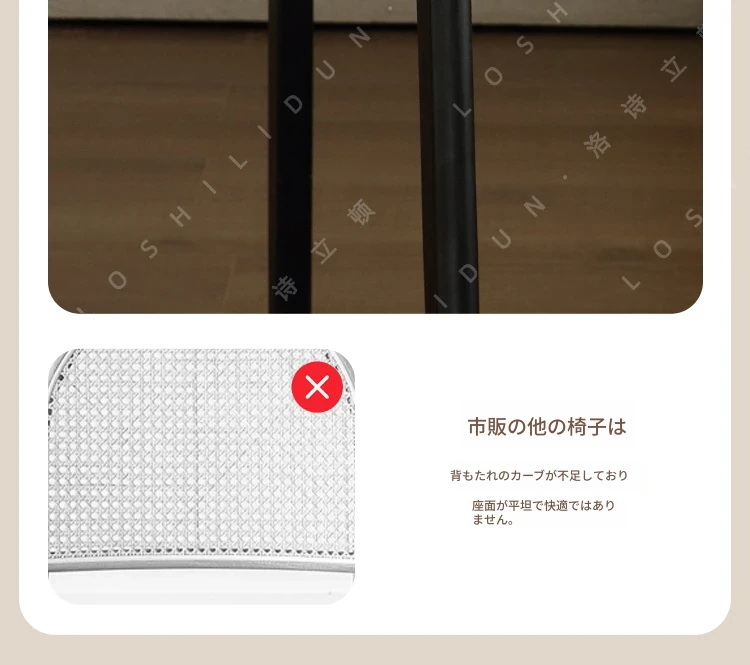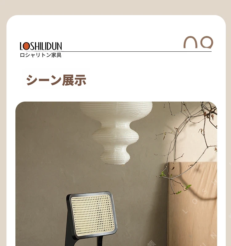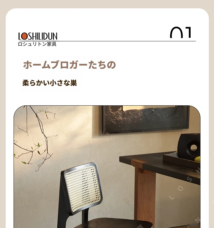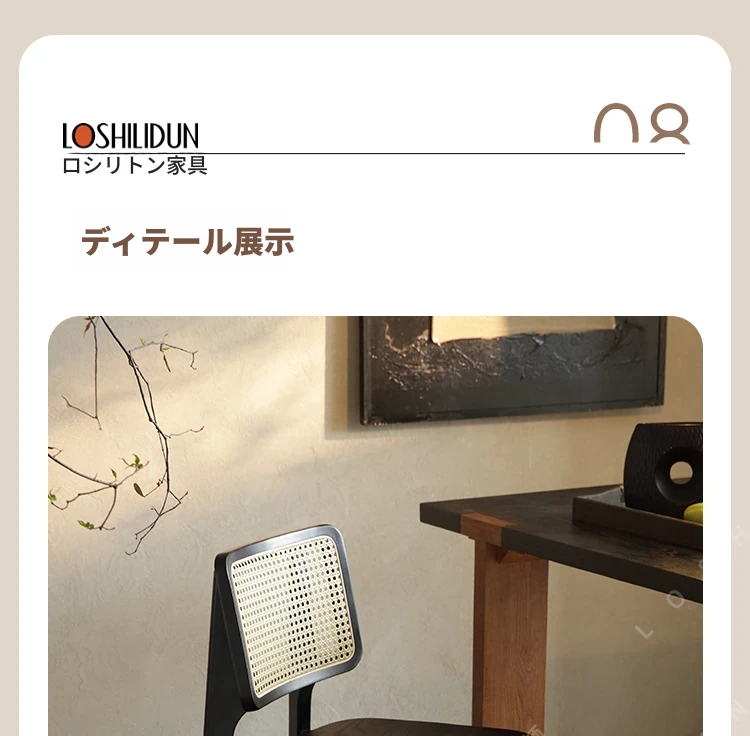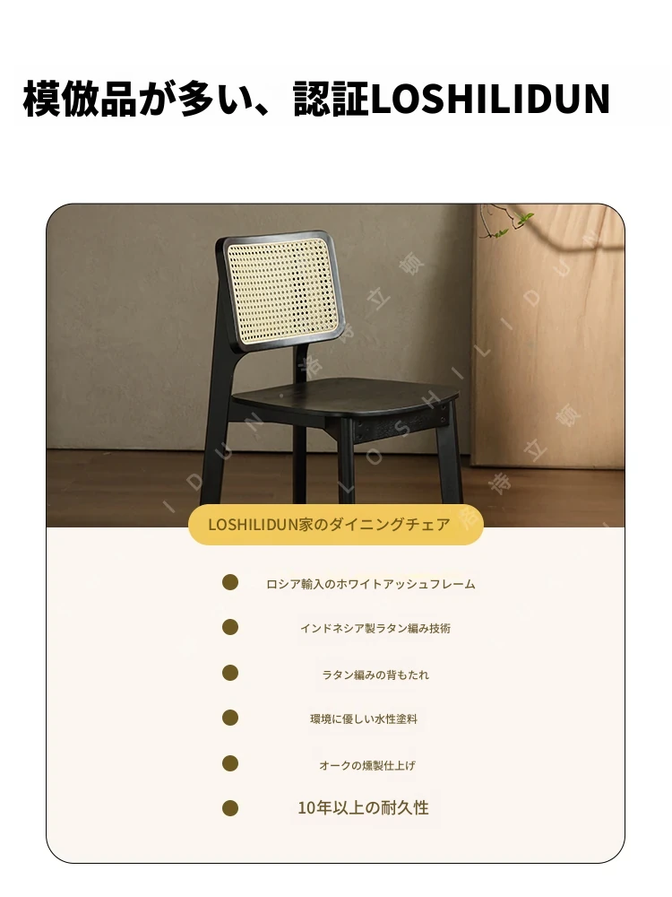 北欧スタイルの無垢材ダイニングチェア|日本風デザイン|ブラックバックレスト|手作りのラタン編み|長時間座っても快適な座り心地!