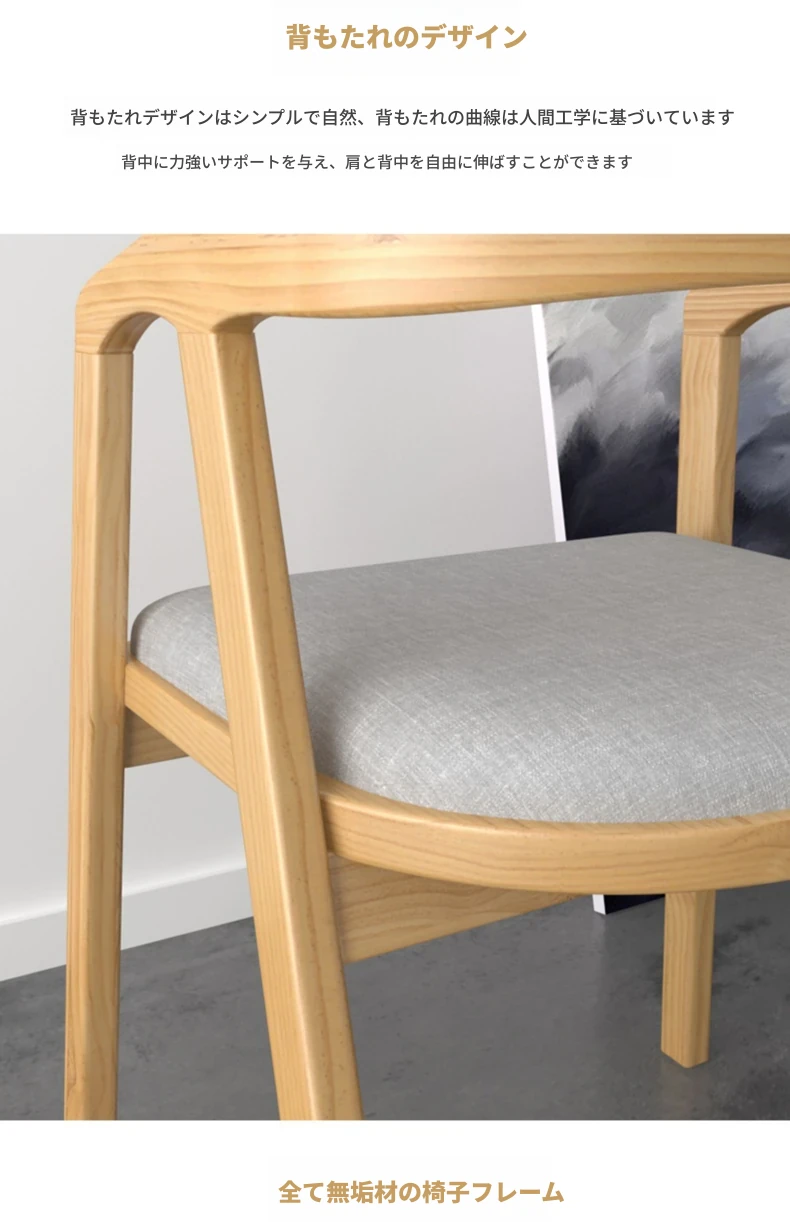 北欧スタイルの無垢材オフィスチェア|自宅用・ダイニング・バックレスト付き・デスク・会議・アームチェア・商業用にも最適なレストランスツール【快適さとデザインを両立】