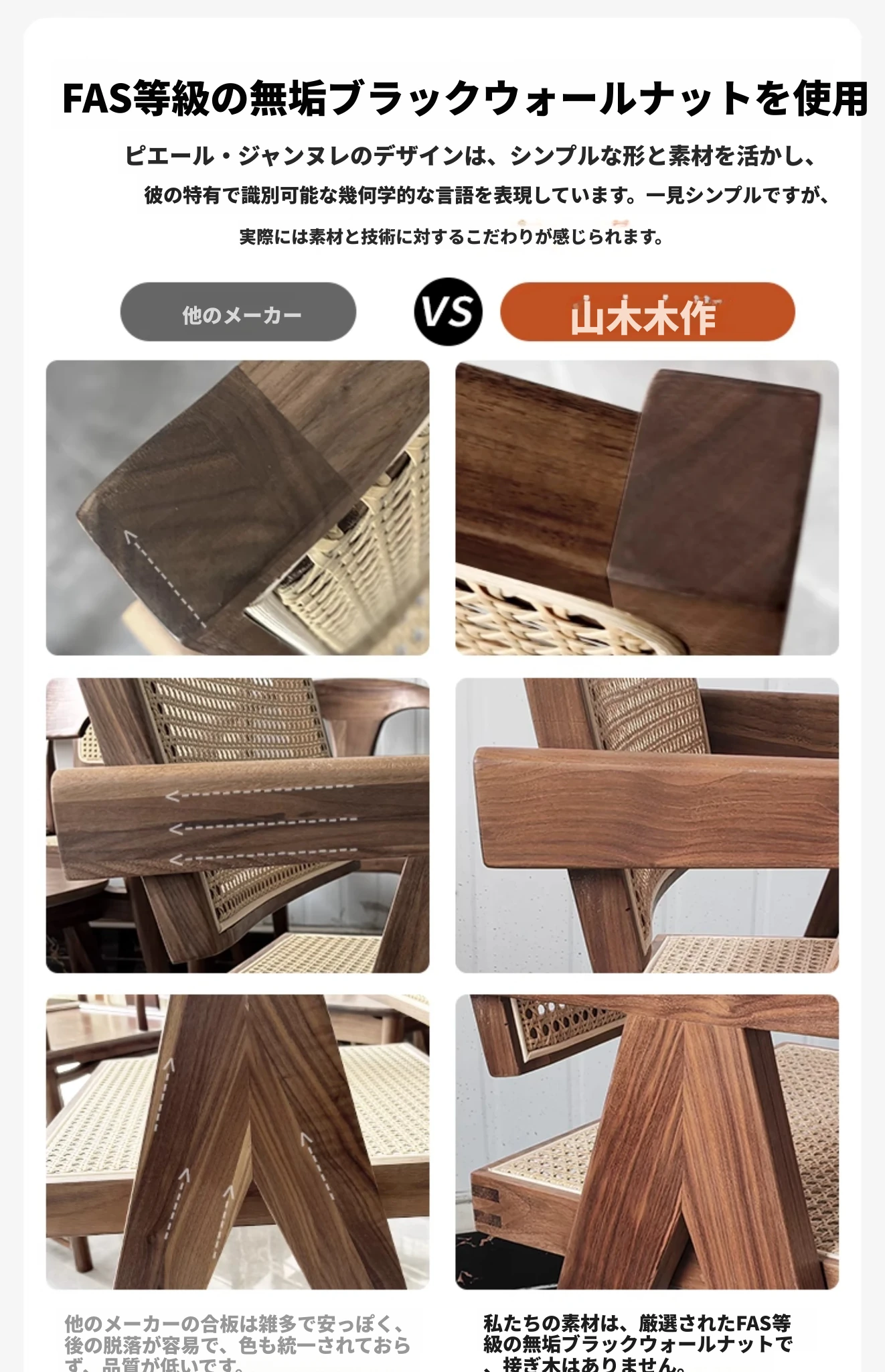 チャンディガール椅子比較直接購入白アッシュ原木色のフェイク藤