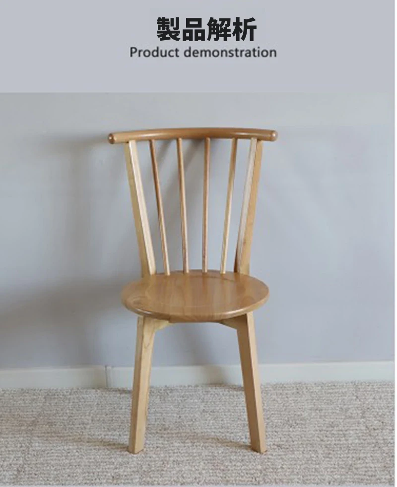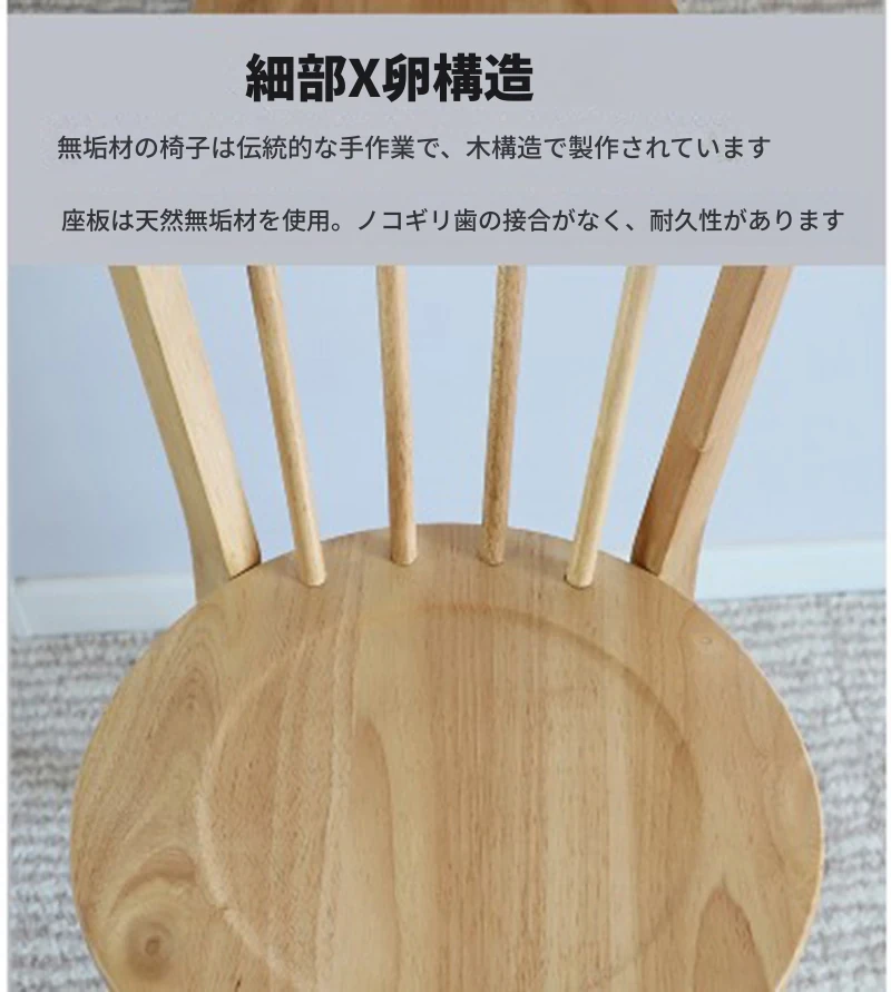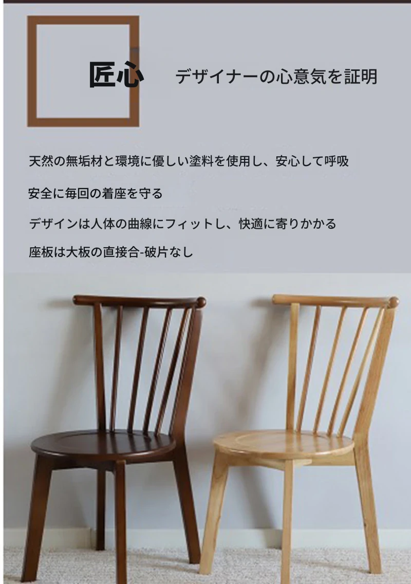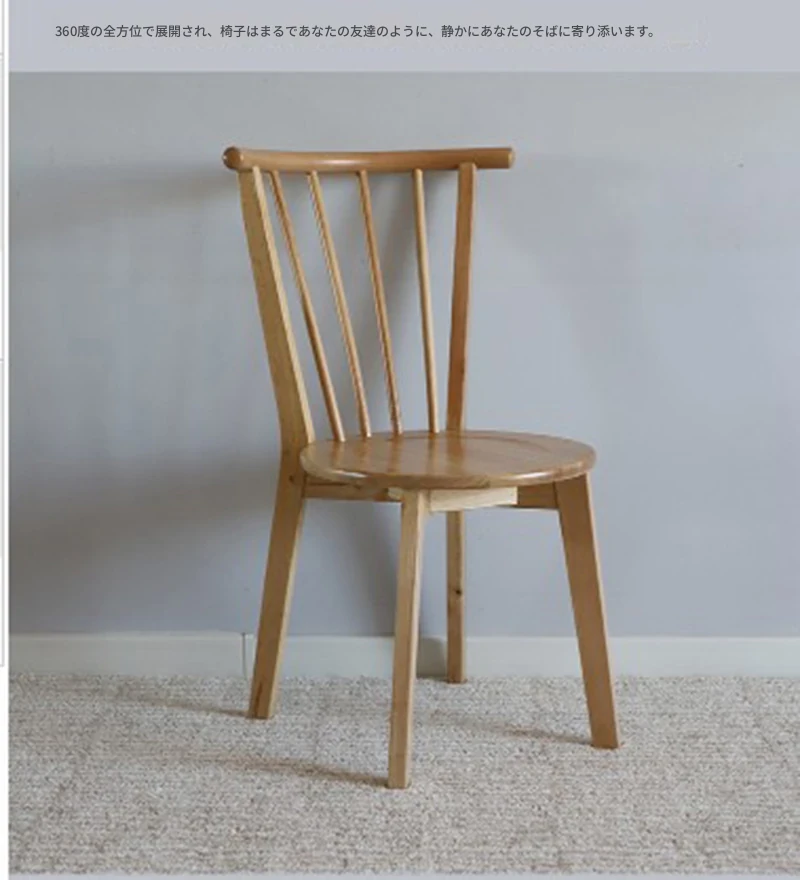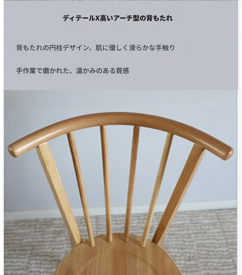 北欧スタイルの無垢材使用!ラグジュアリーなウィンザーチェア、リラックスできる和風デザインのカフェ用・宿泊施設用・家庭用。大人向けの背もたれ付きダイニングチェアで、居心地の良さを追求しました。