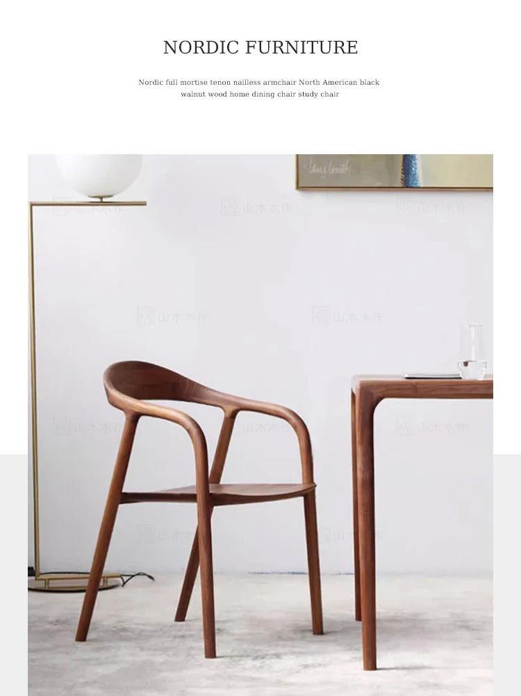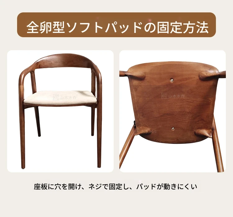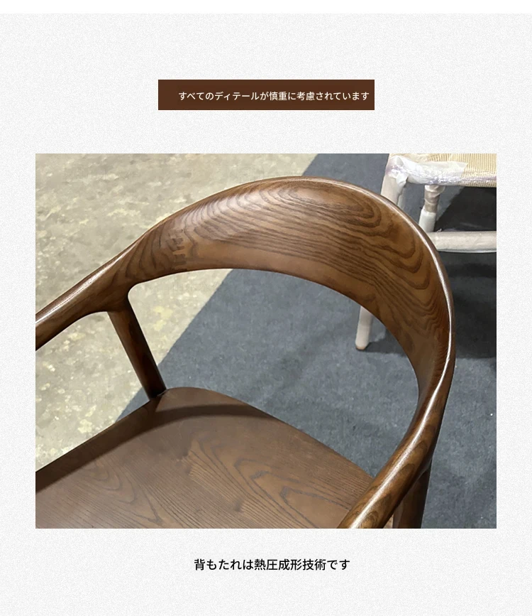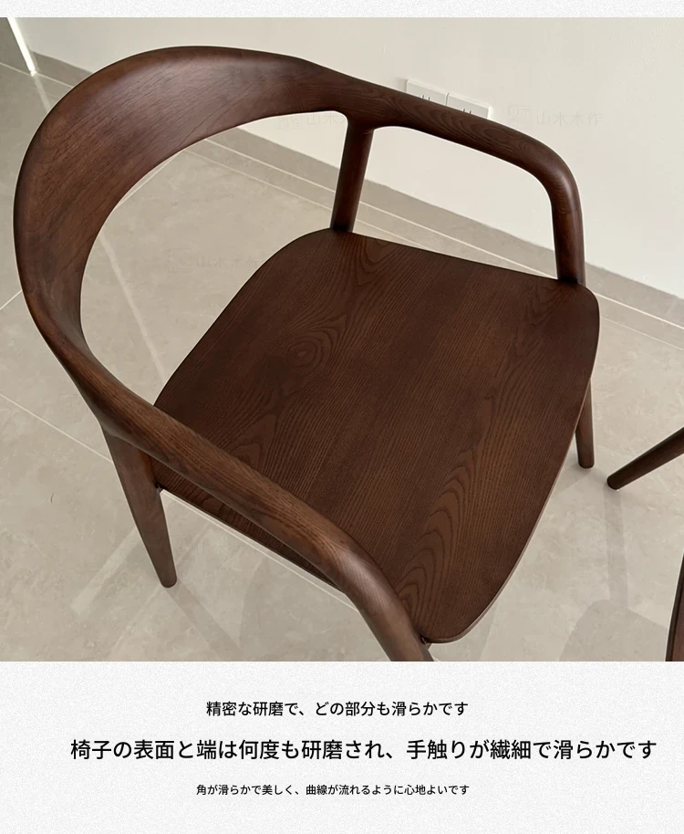 山木北欧スタイル無釘全榫接合の快適アームチェア|レストラン、リビング、書斎に最適|北米産ホワイトアッシュ使用で耐久性抜群!