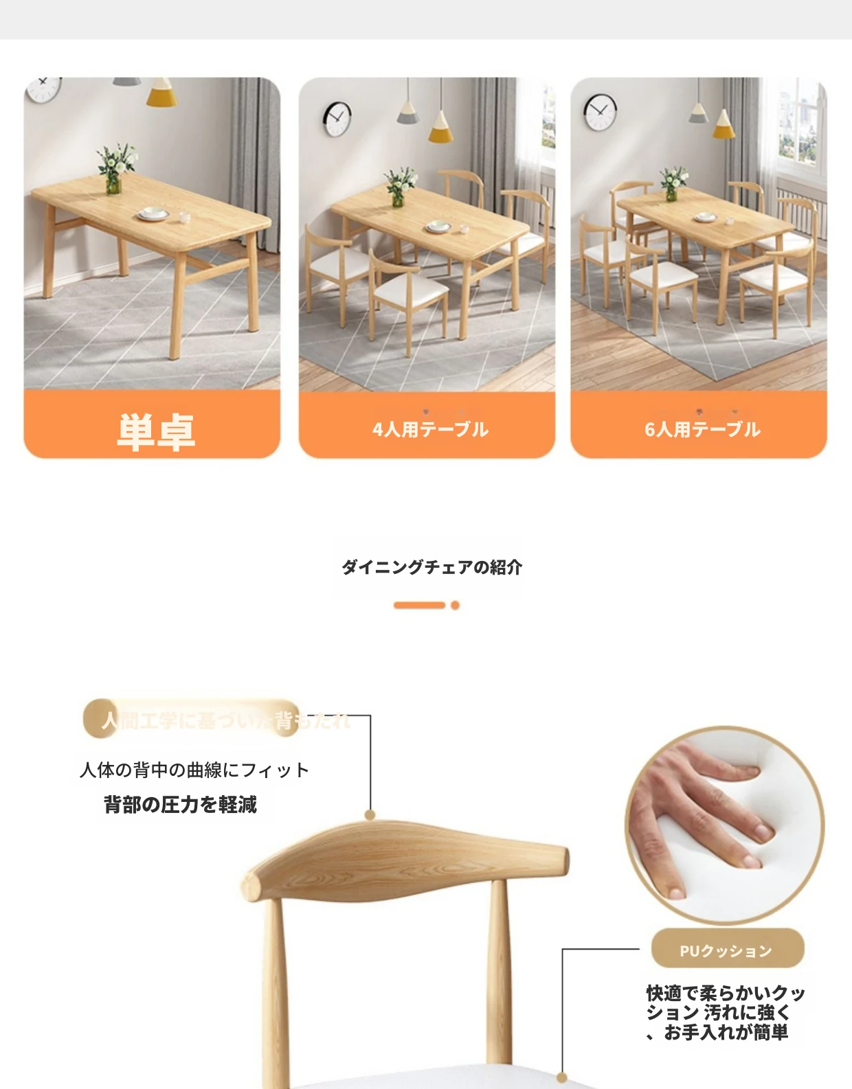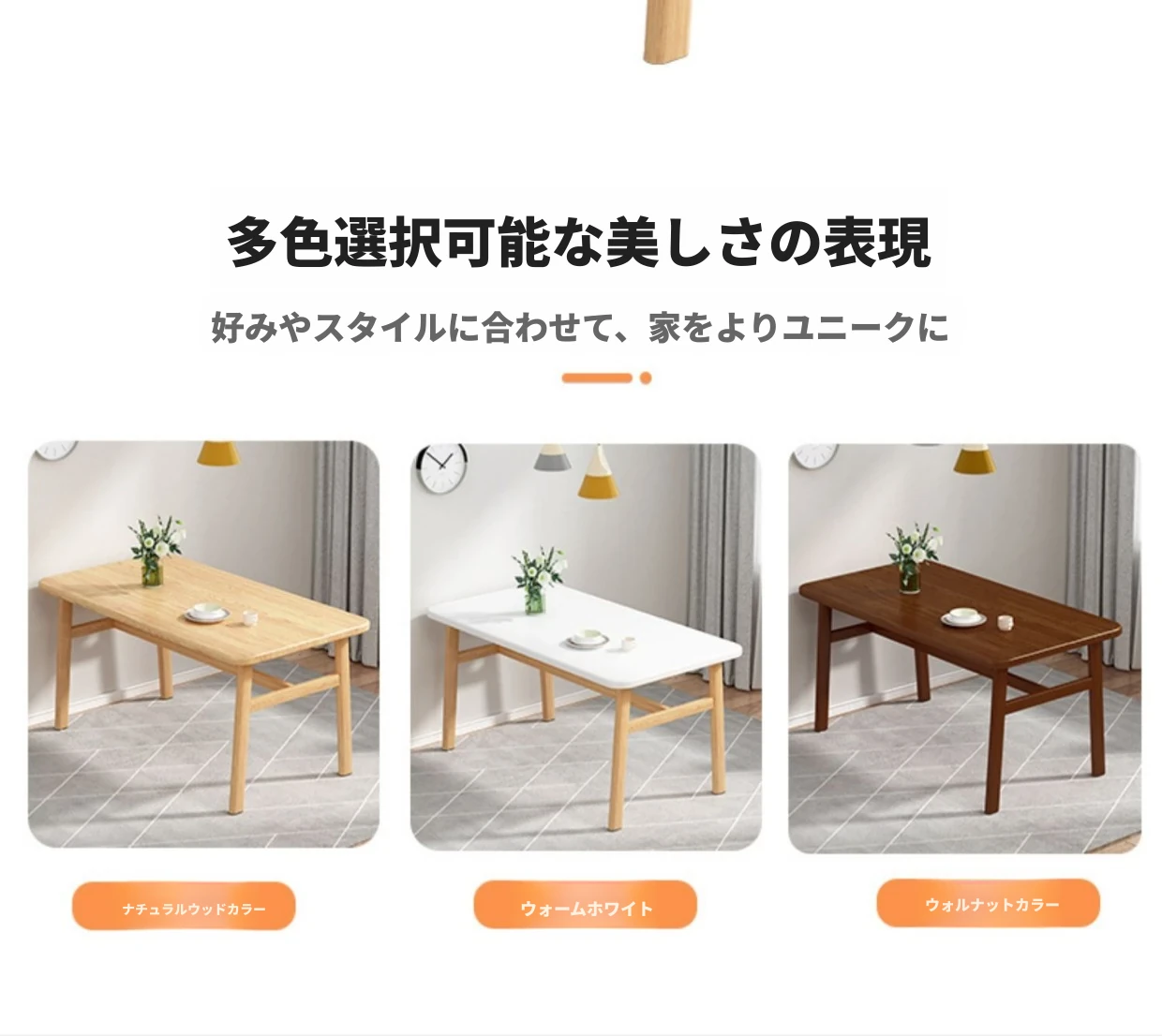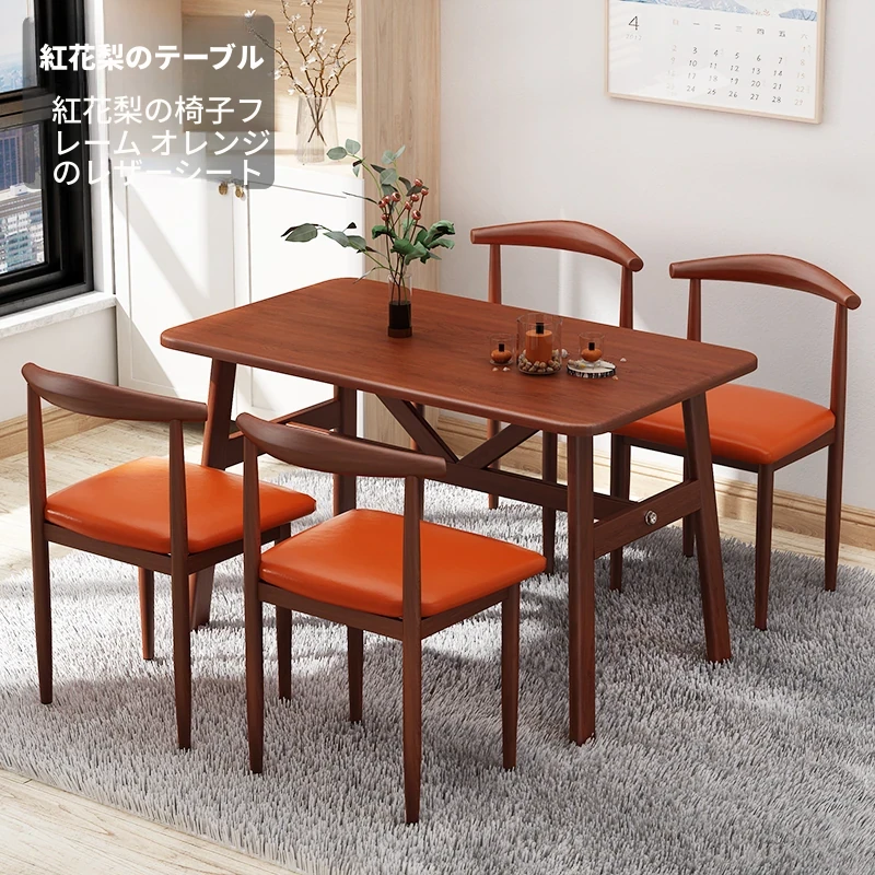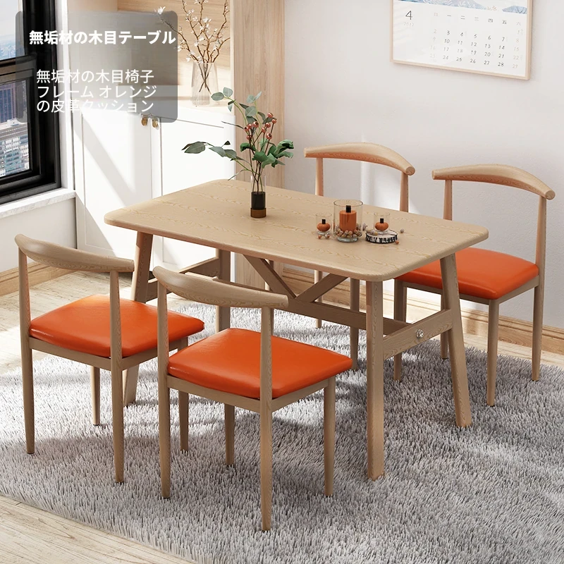 60*120ナチュラルウッド色テーブル+4脚【オレンジ皮色】