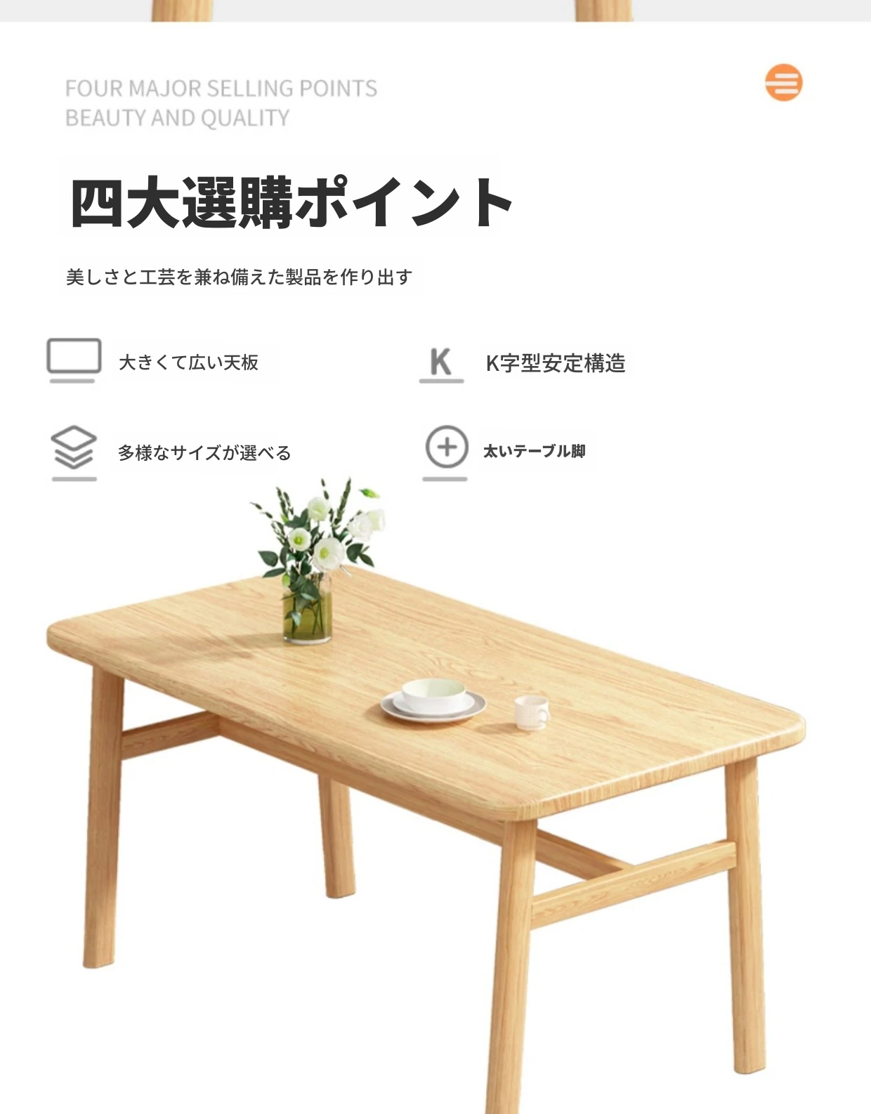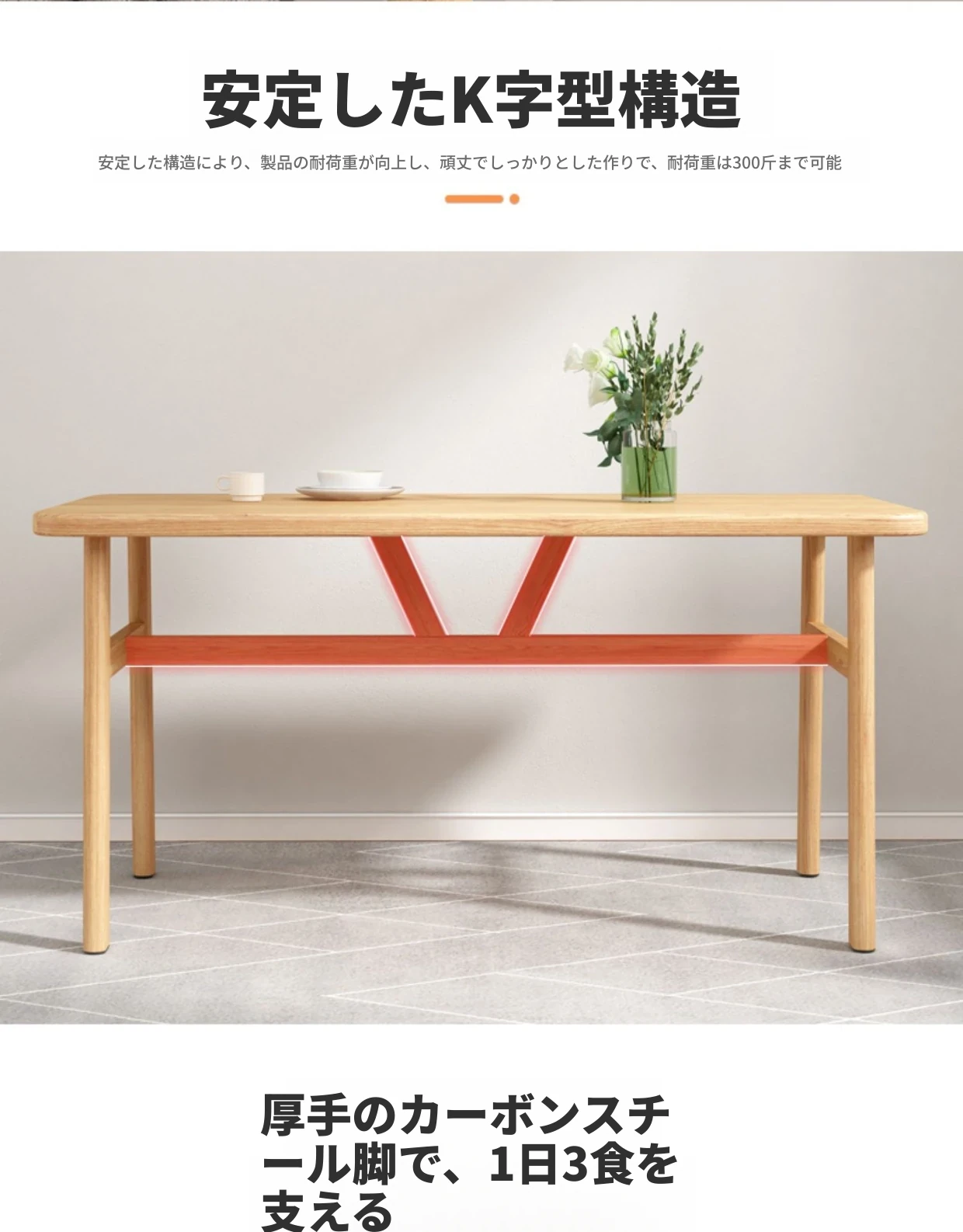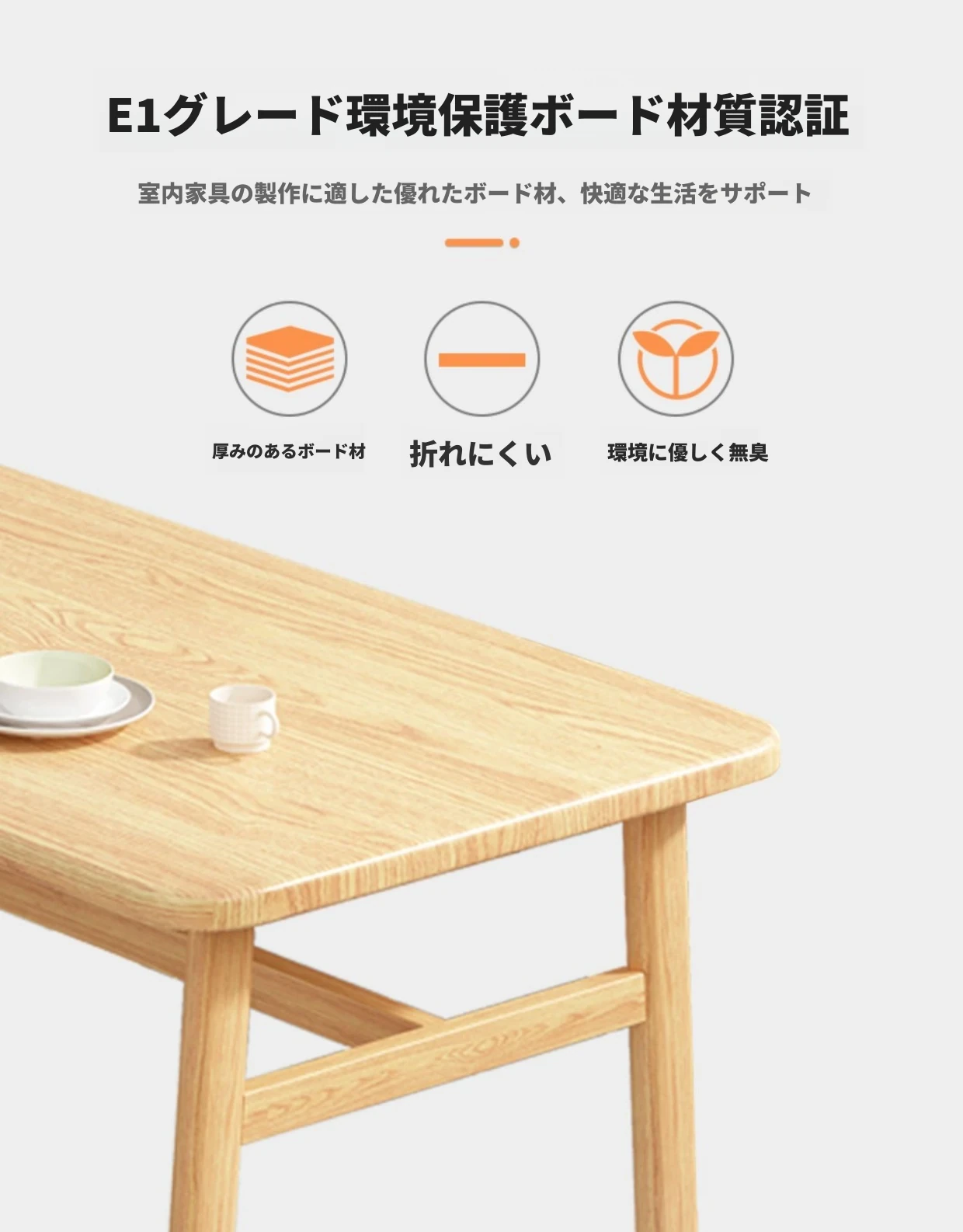 60*120ナチュラルウッド色テーブル+4脚【オレンジ皮色】