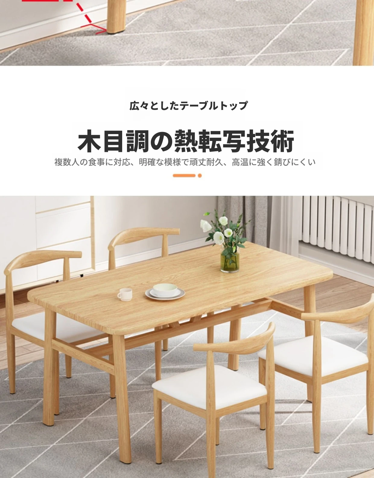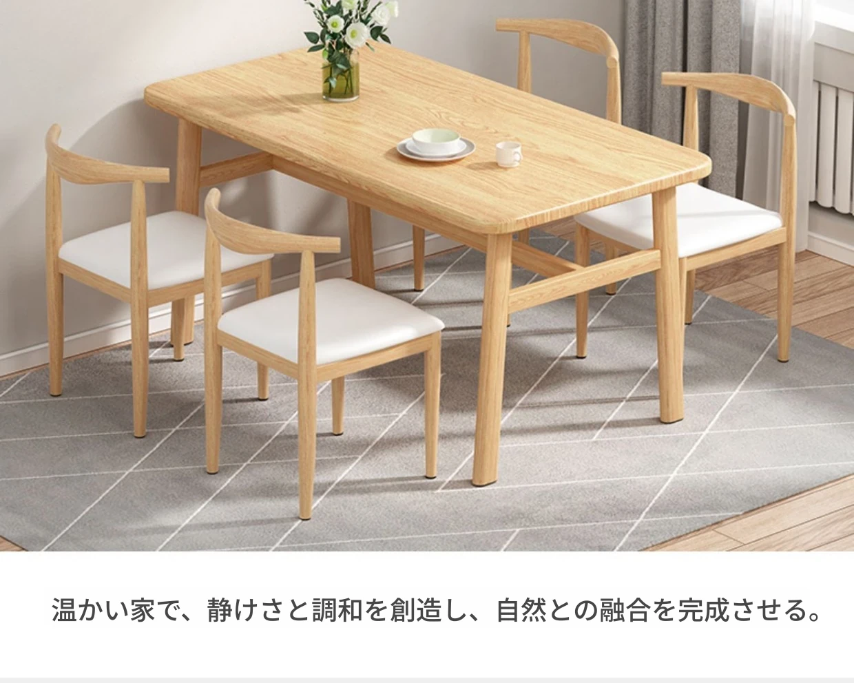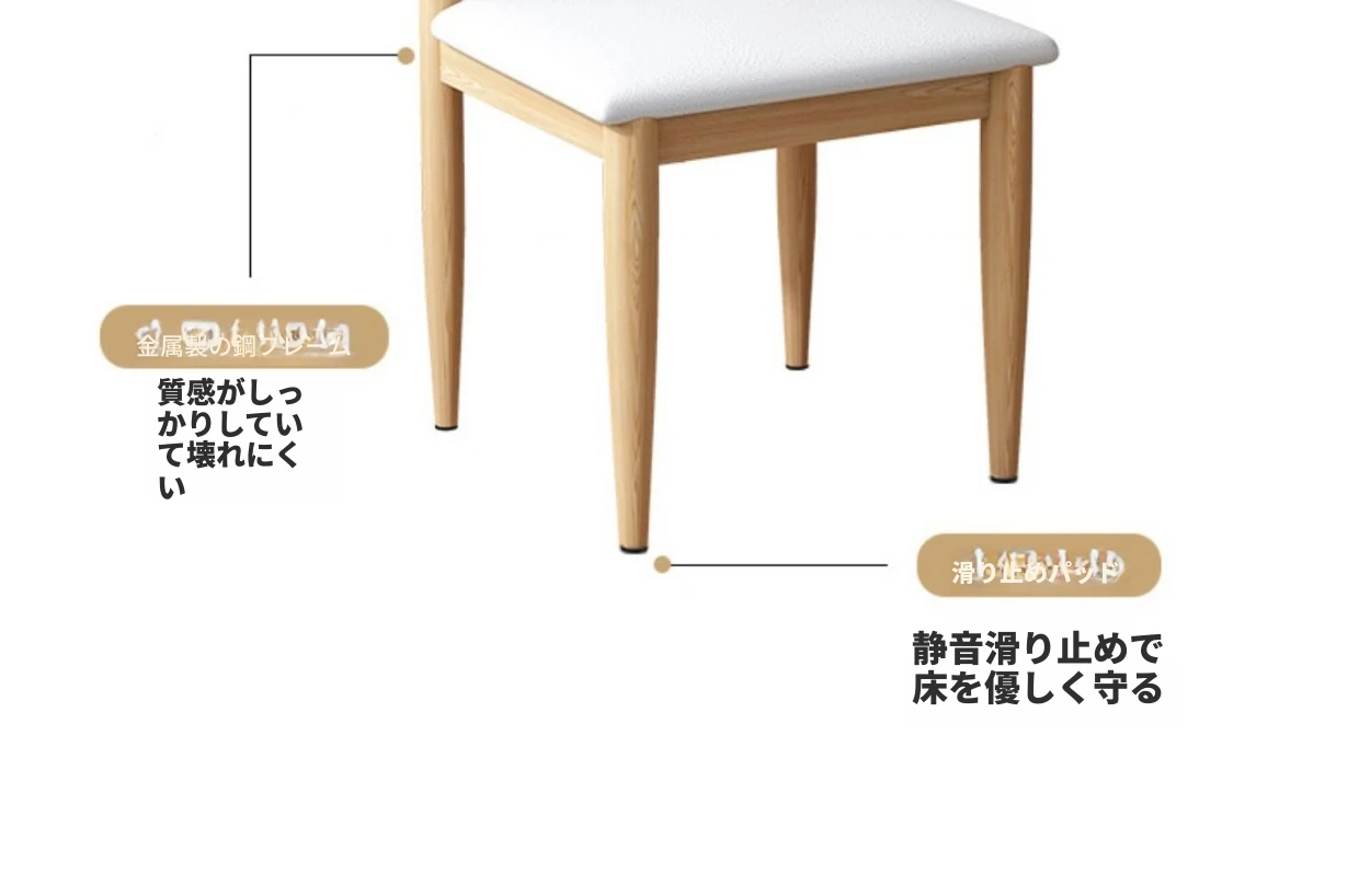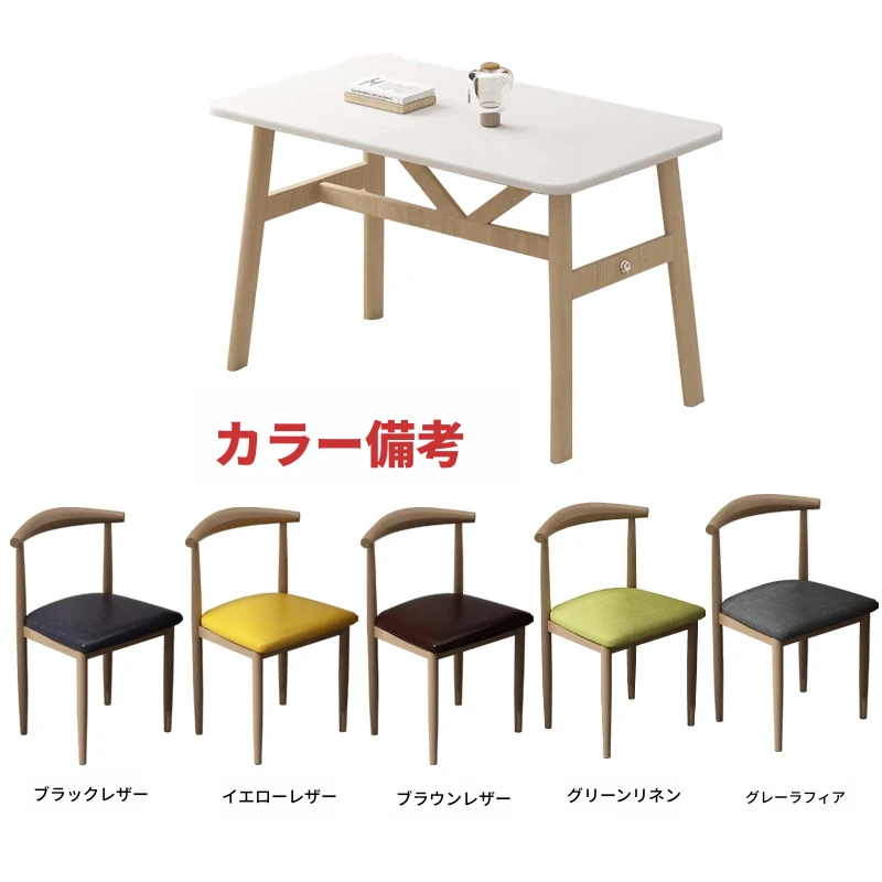 60*120ナチュラルウッド色テーブル+4脚【白皮色】