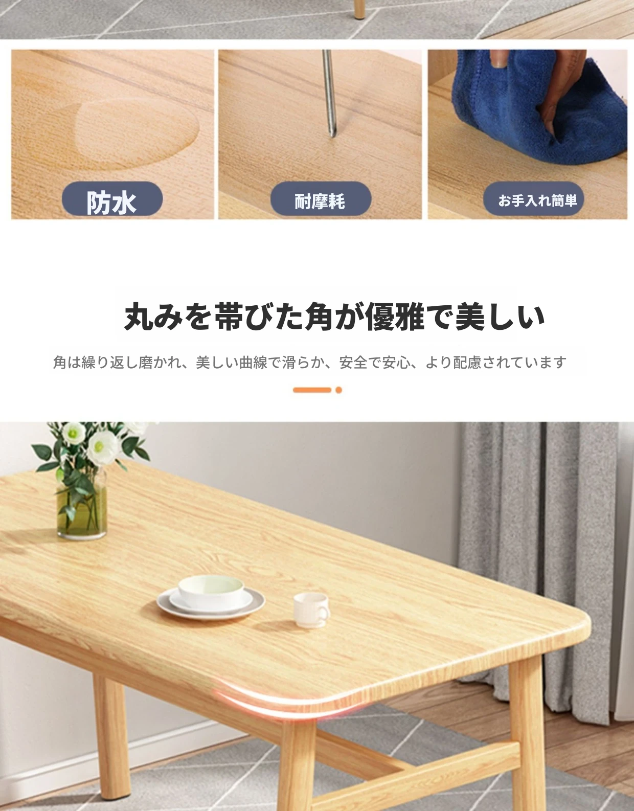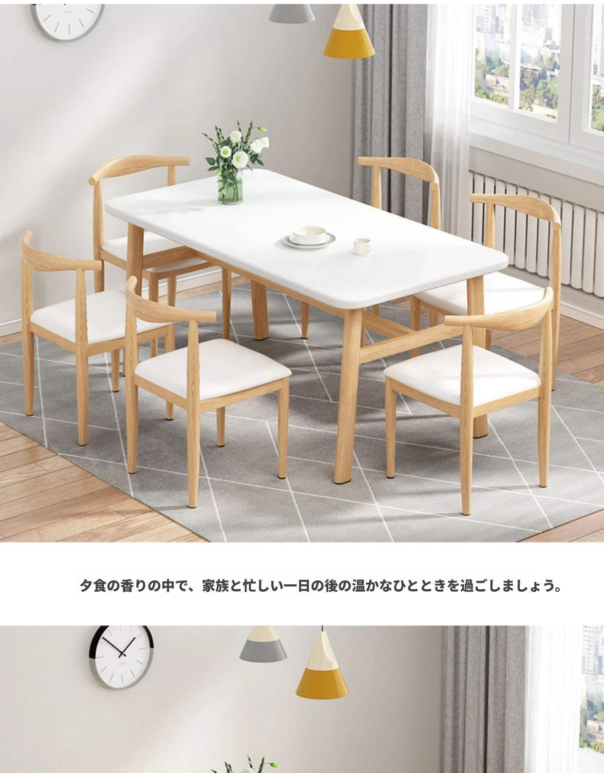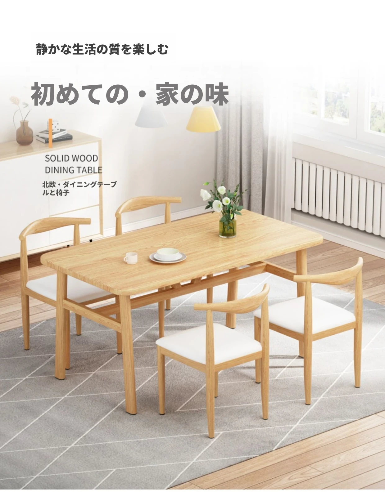 60*120ナチュラルウッド色テーブル+4脚【白皮色】