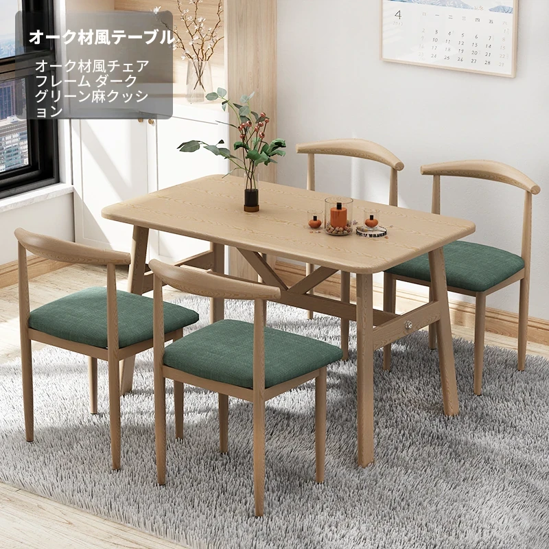 60*120ナチュラルウッド色テーブル+4脚【緑麻色】