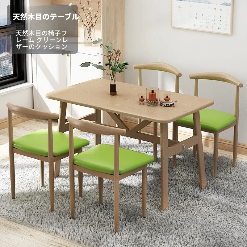 60*120ナチュラルウッド色テーブル+4脚【グリーン皮色】