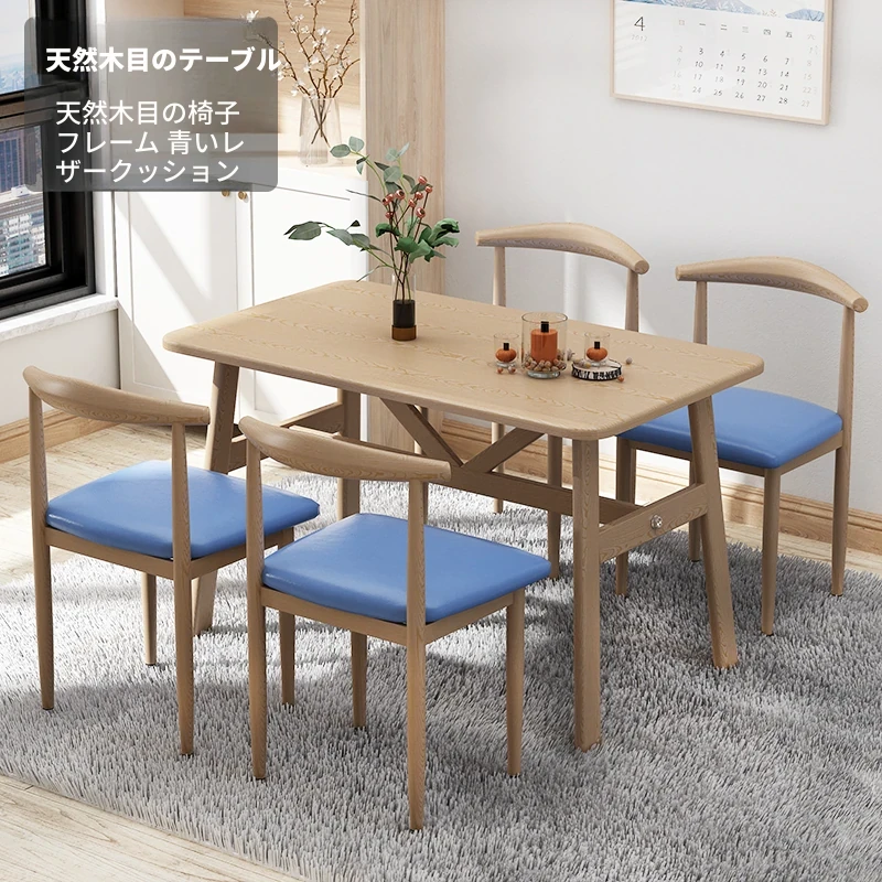 60*120ナチュラルウッド色テーブル+4脚【青皮色】