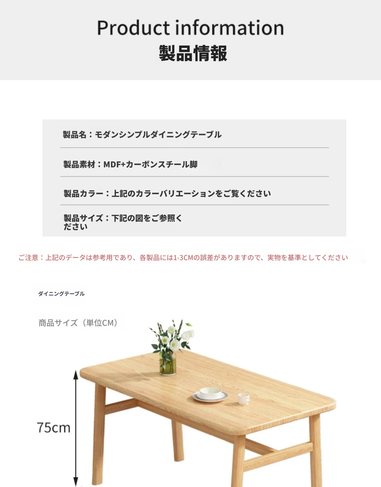 60*120のテーブルと2脚の椅子 色の備考