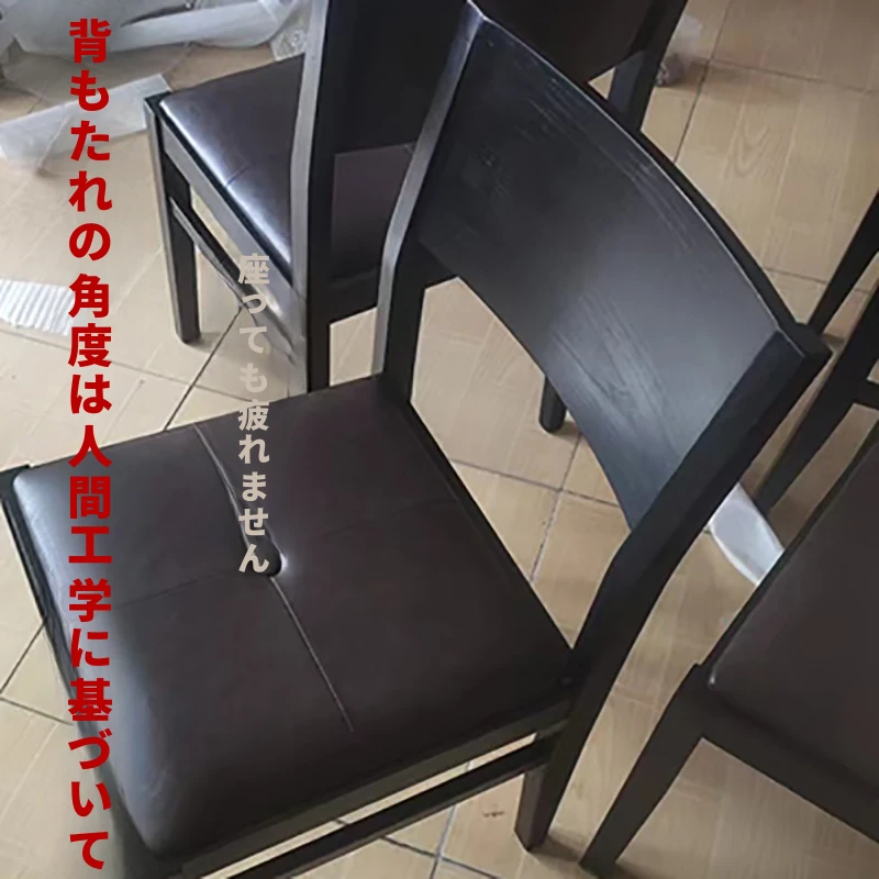 北欧スタイルの無垢材ソフトパッキングダイニングチェア|モダンでクリエイティブなリラックス軽奢レザー|快適な家庭用シンプルデザインの背もたれ付き書斎椅子【ホワイトベース】