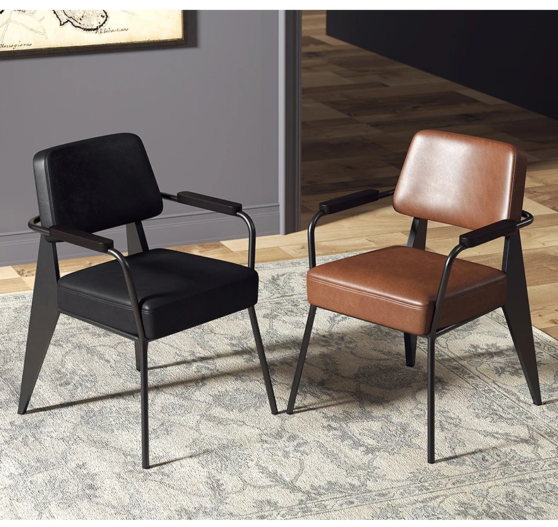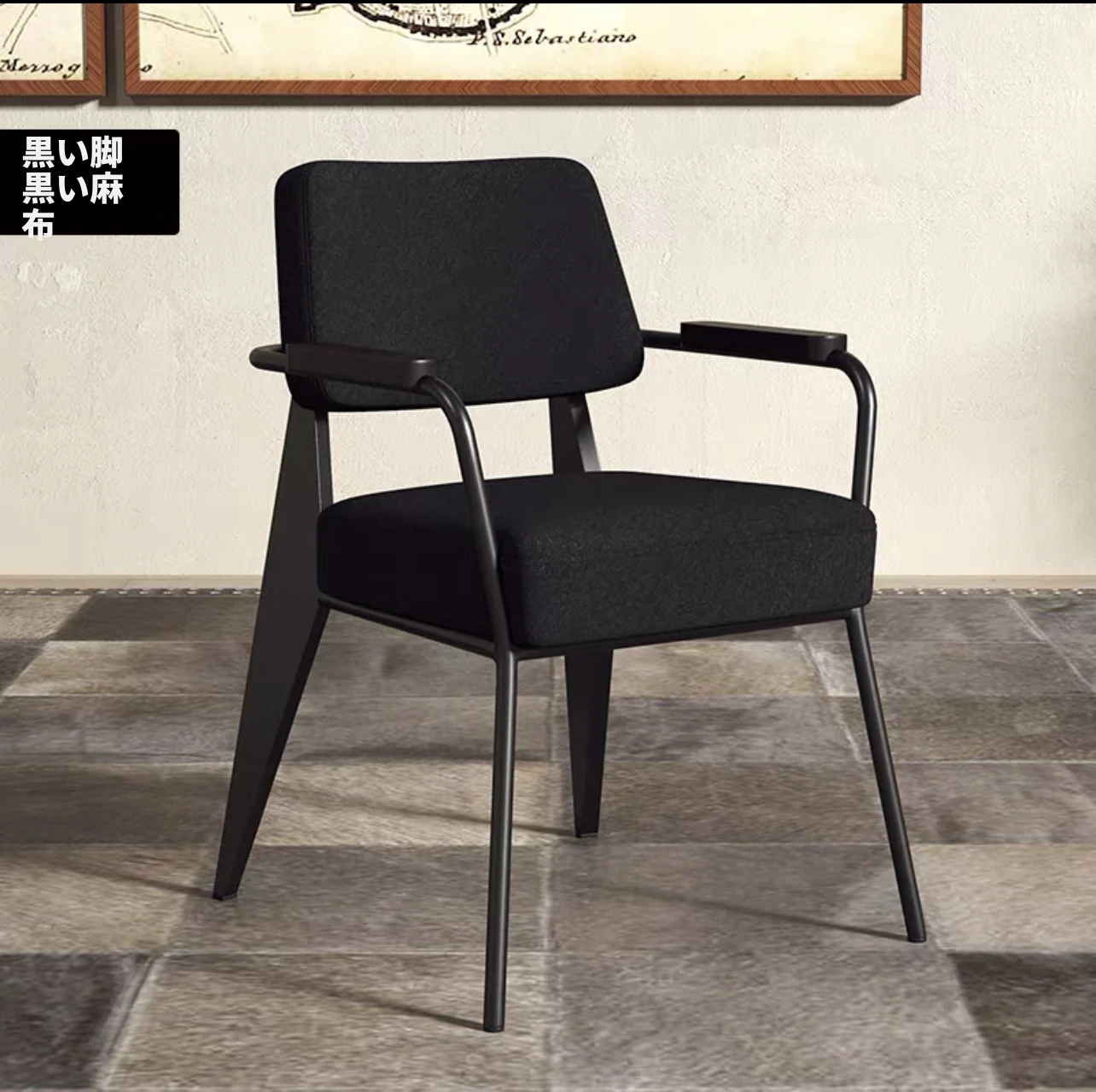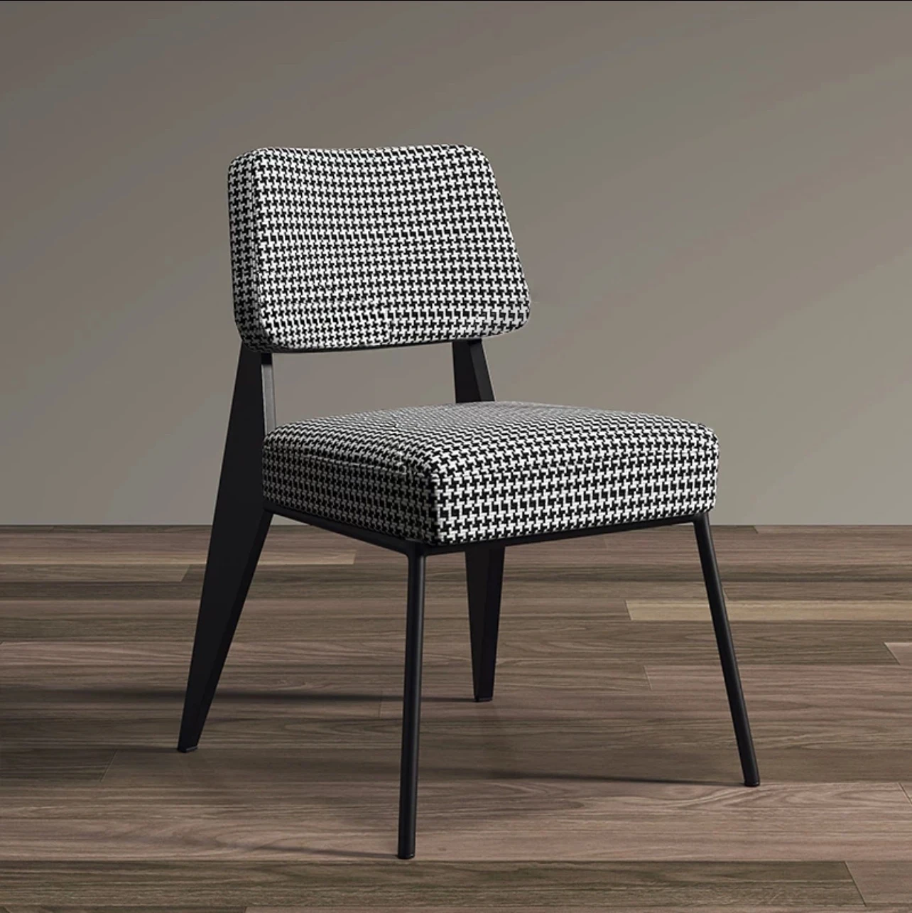北欧スタイルのソフトクッションダイニングチェア|おしゃれなアイアンフレーム|快適な背もたれ付き|アメリカンデザインの書斎・カフェにもぴったり|リラックスした食事時間を演出する完璧な椅子!