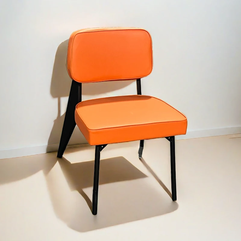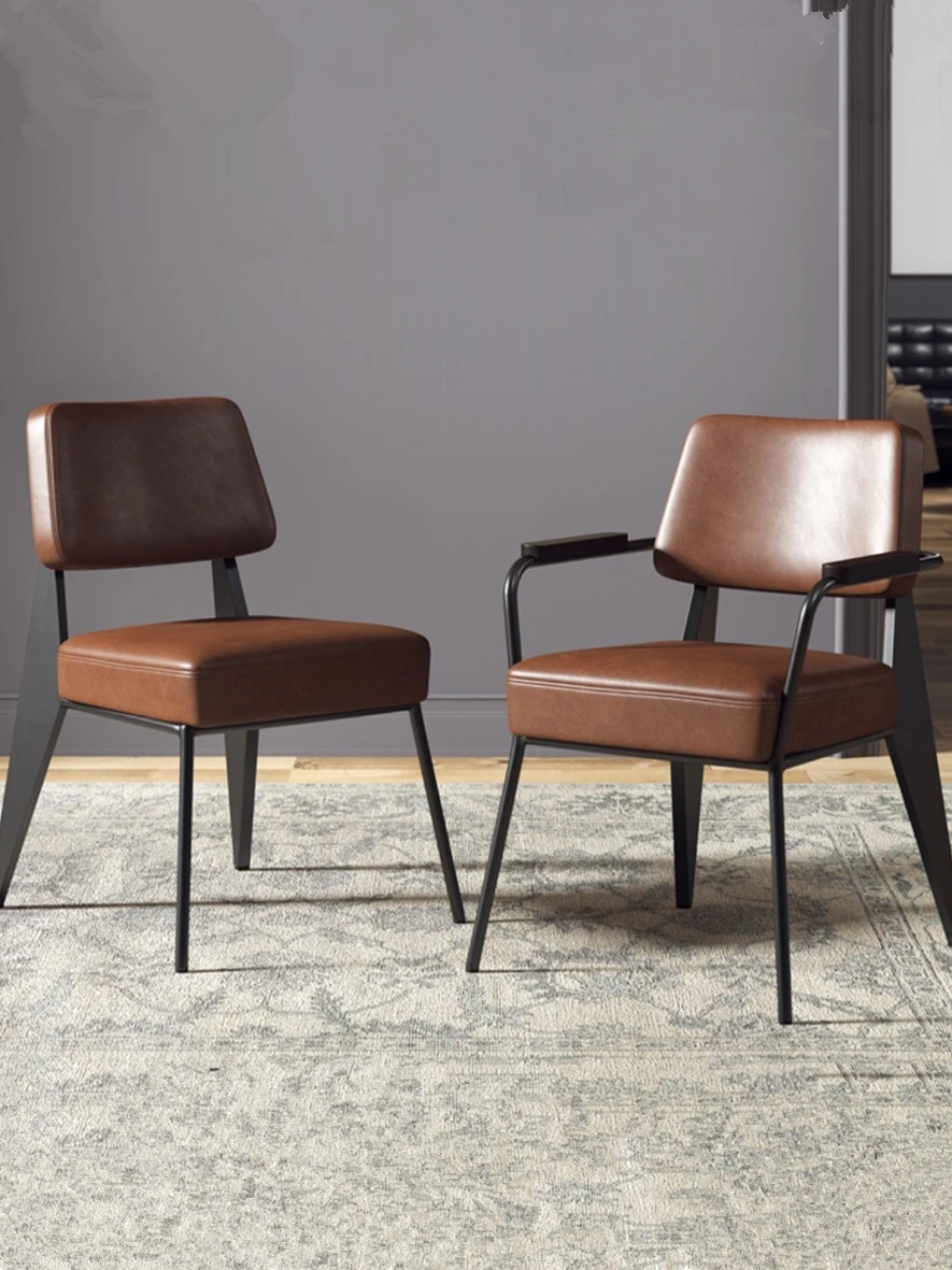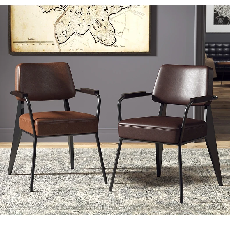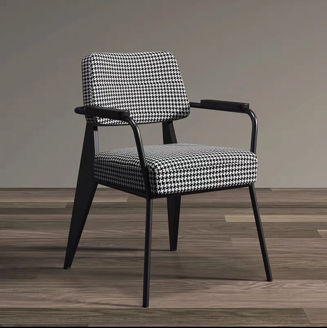 北欧スタイルのソフトクッションダイニングチェア|おしゃれなアイアンフレーム|快適な背もたれ付き|アメリカンデザインの書斎・カフェにもぴったり|リラックスした食事時間を演出する完璧な椅子!