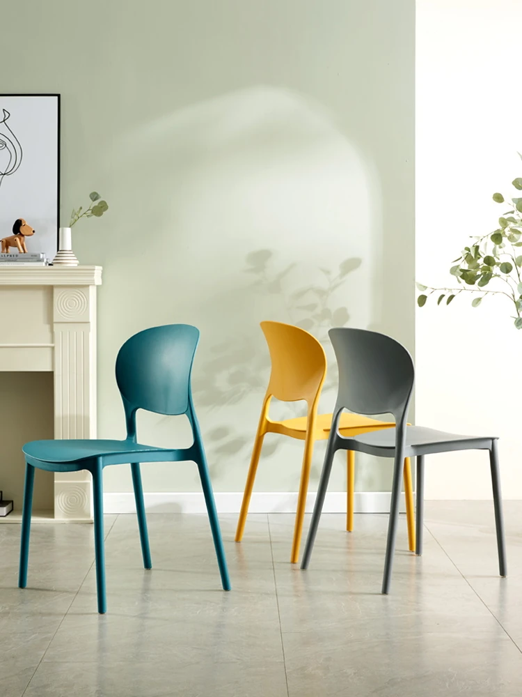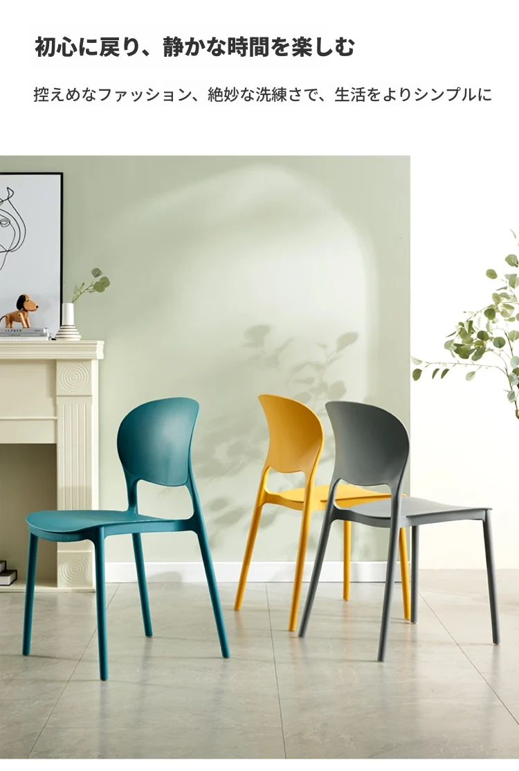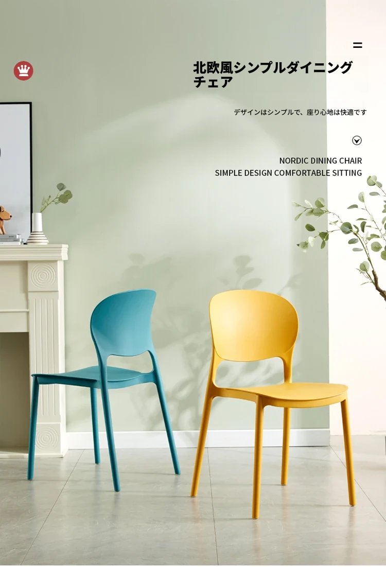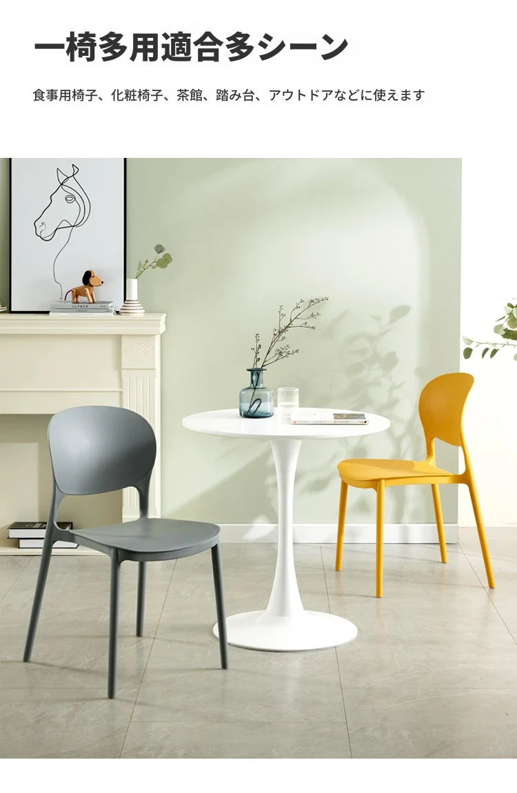 北欧風デザインの厚手プラスチック製ダイニングチェア、経済的な背もたれ付き!大人向けのプラスチックデスクチェア、屋外でも使える便利なスツール。快適さとスタイルを両立した一品です!