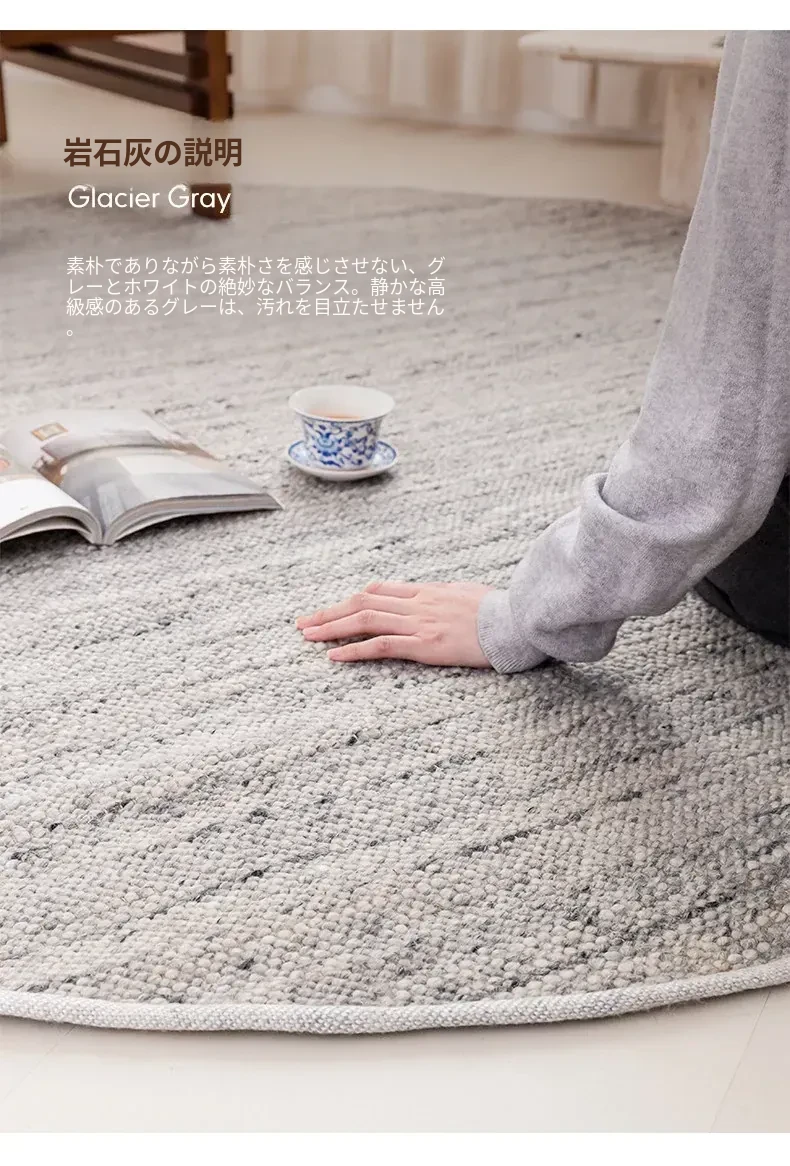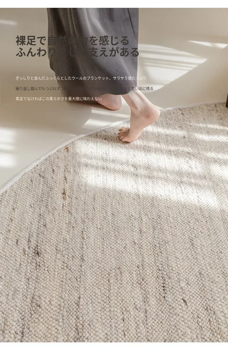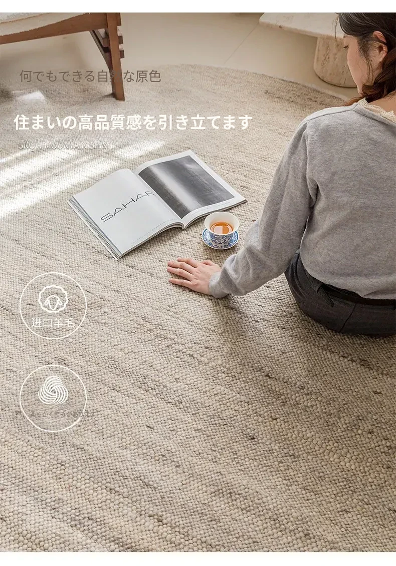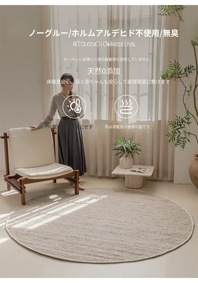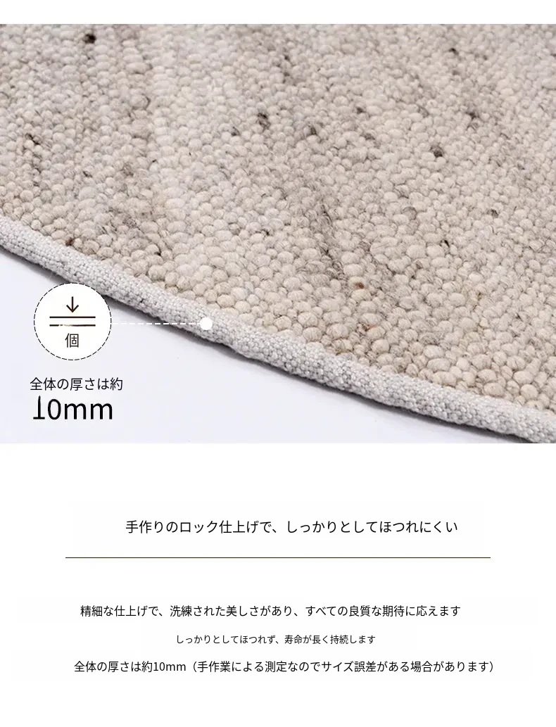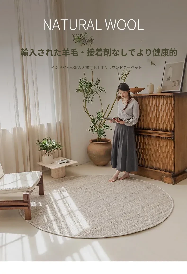視覚と香りを楽しむ、輸入ウールラグ 円形 無接着 手編み リビングルームに高級感を演出 和風寝室の防音効果付き