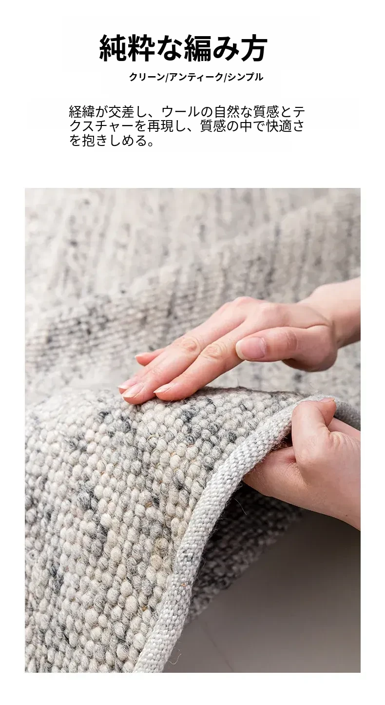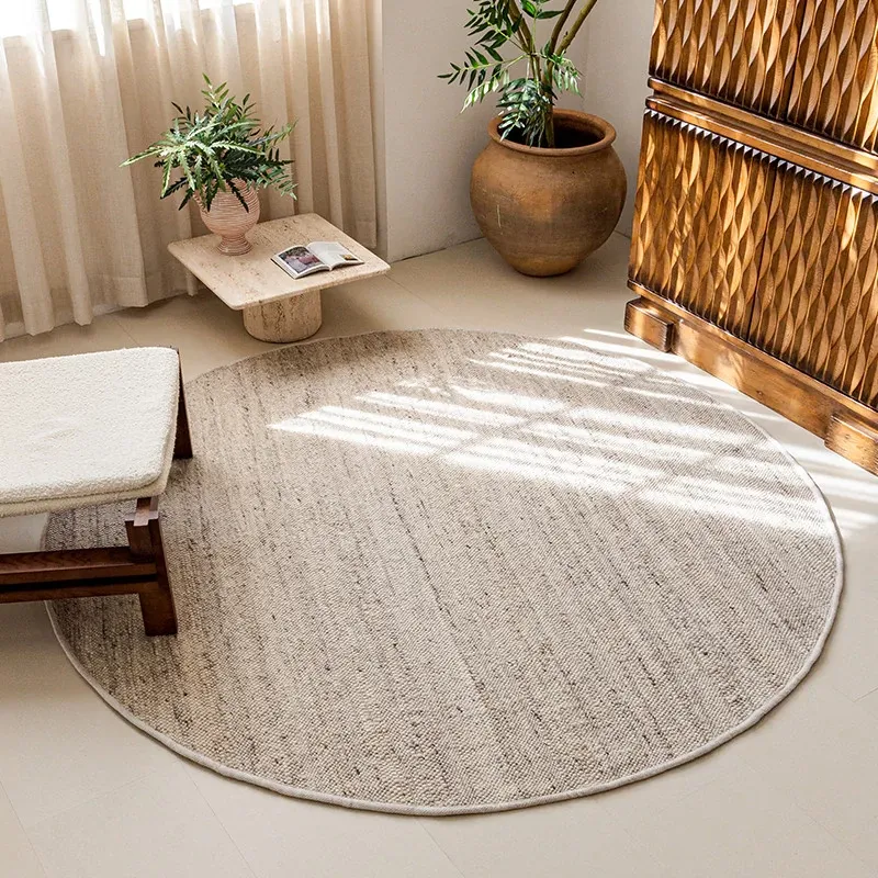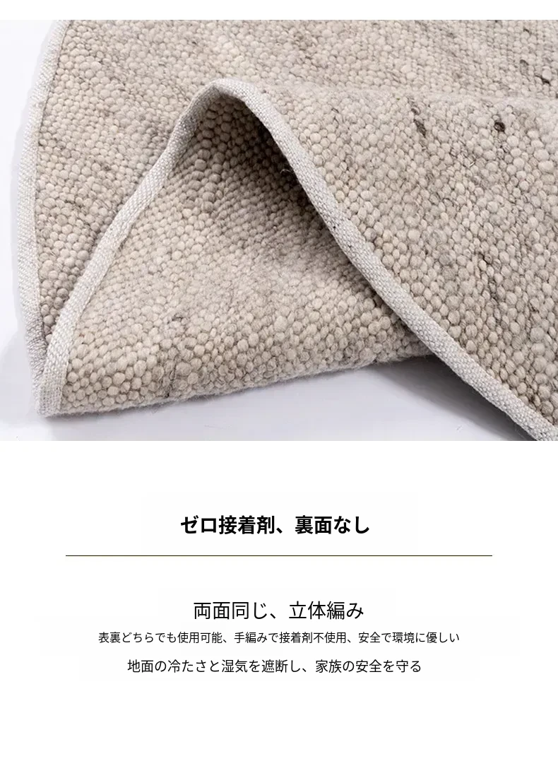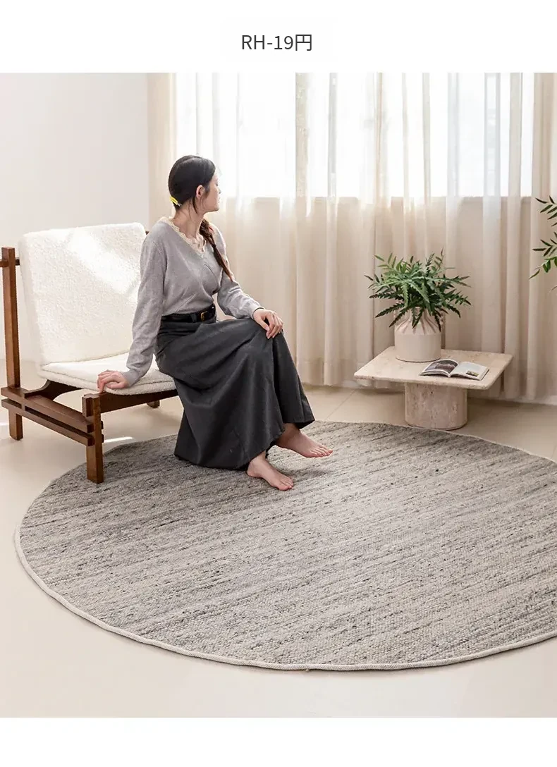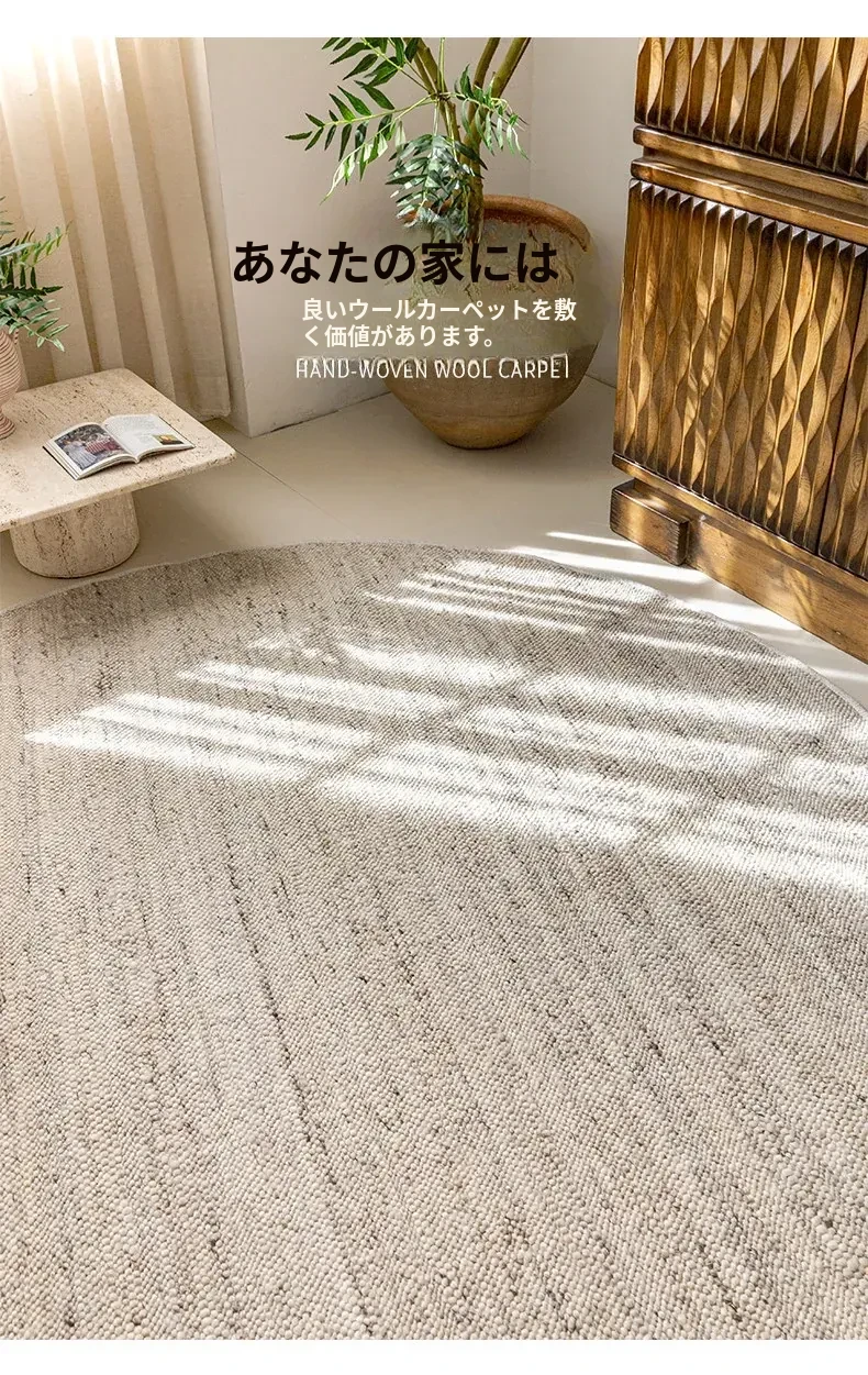 視覚と香りを楽しむ、輸入ウールラグ 円形 無接着 手編み リビングルームに高級感を演出 和風寝室の防音効果付き