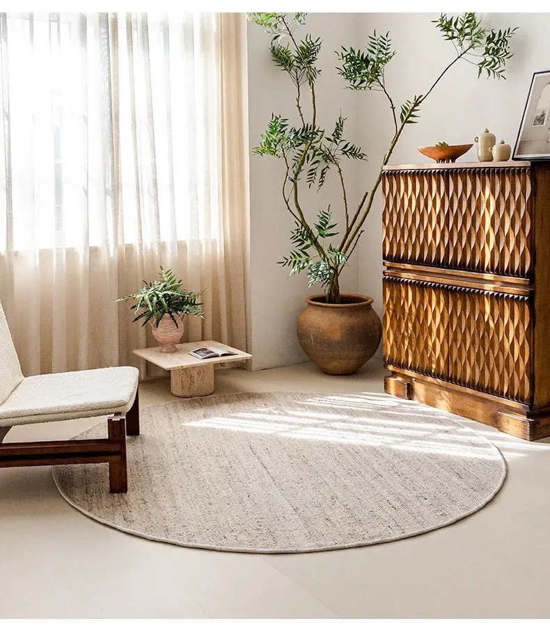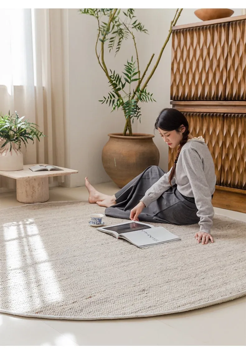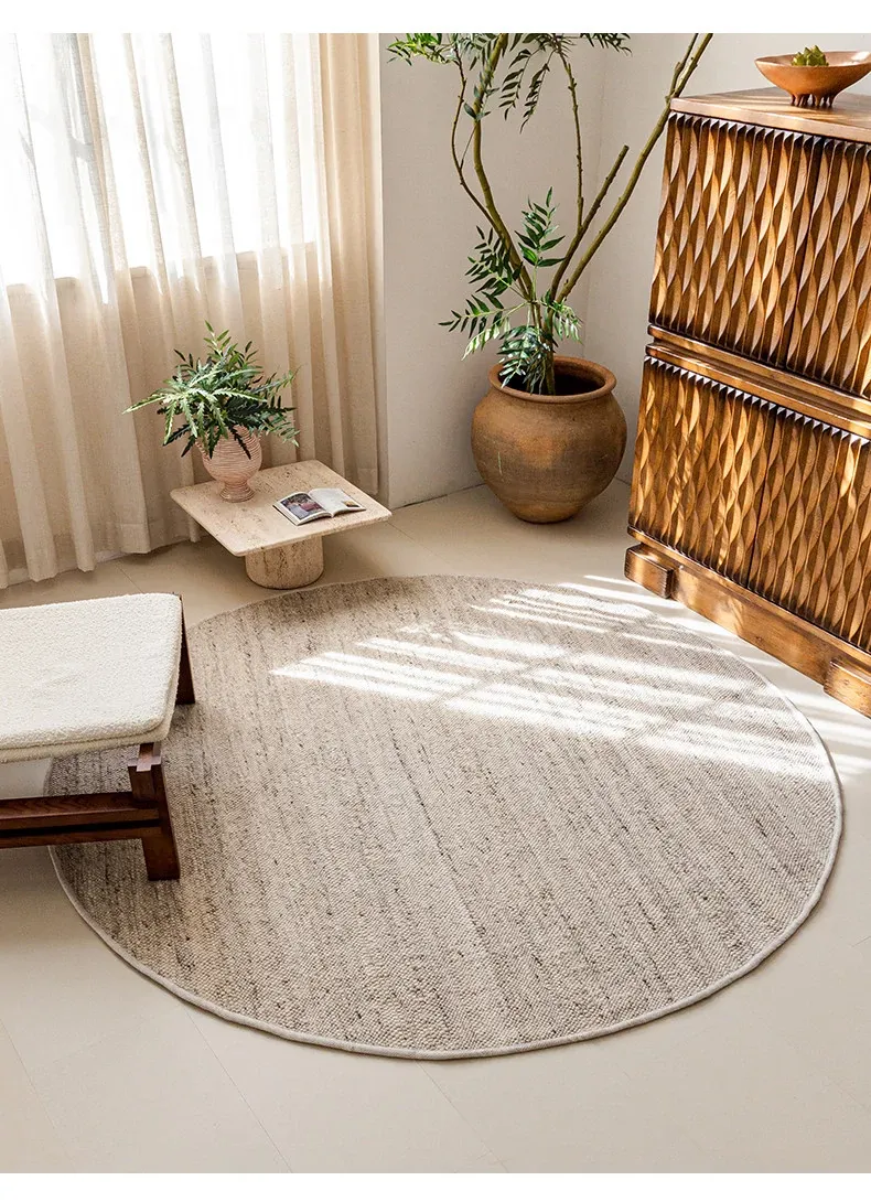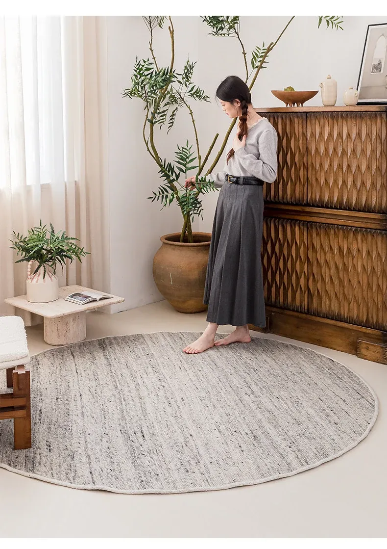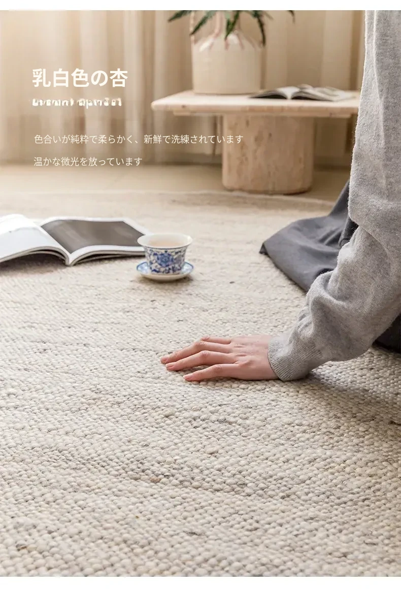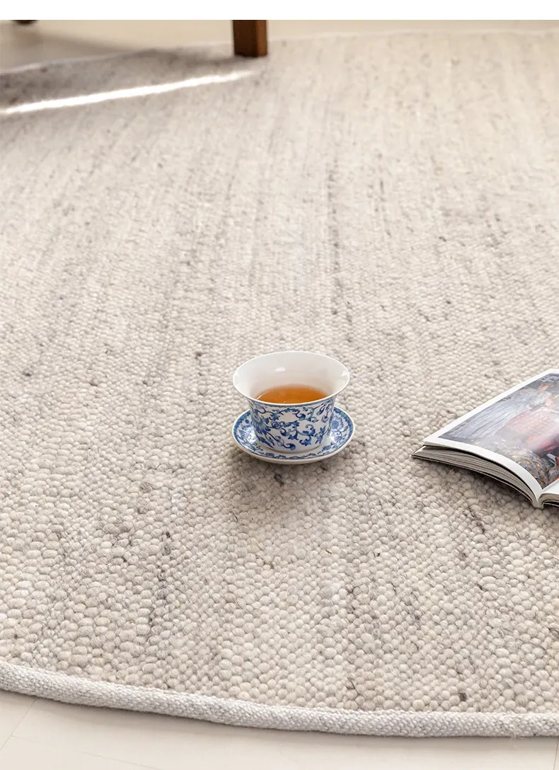 視覚と香りを楽しむ、輸入ウールラグ 円形 無接着 手編み リビングルームに高級感を演出 和風寝室の防音効果付き