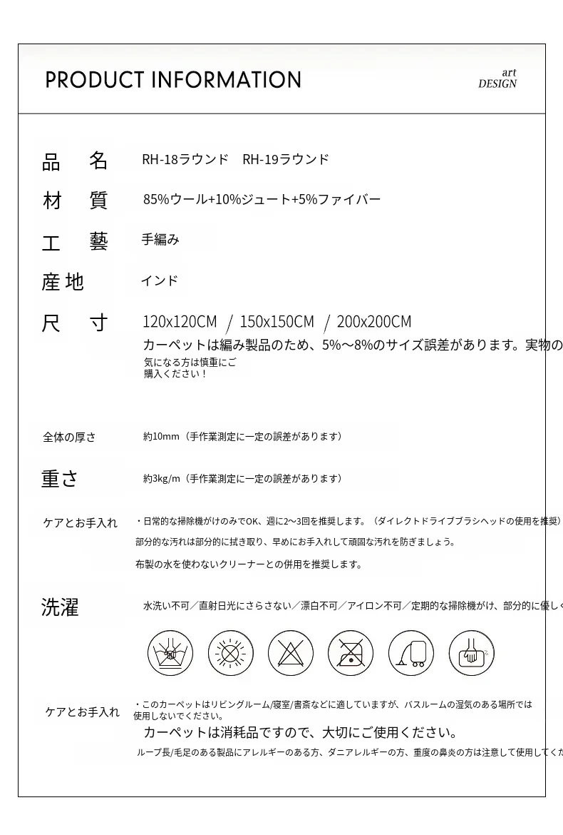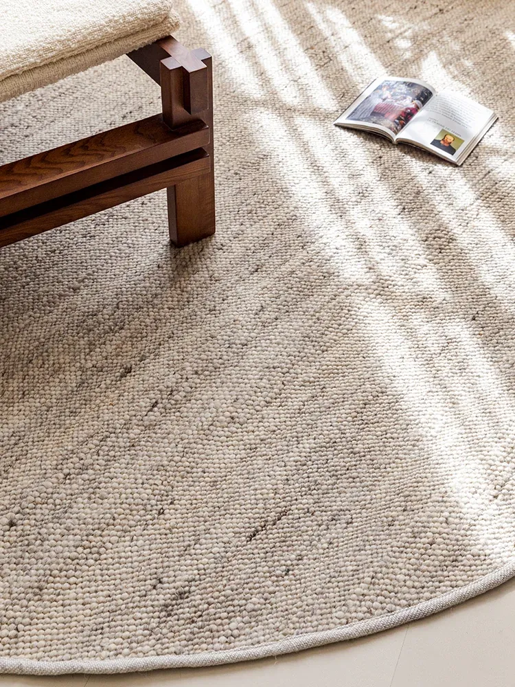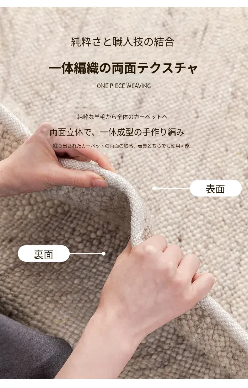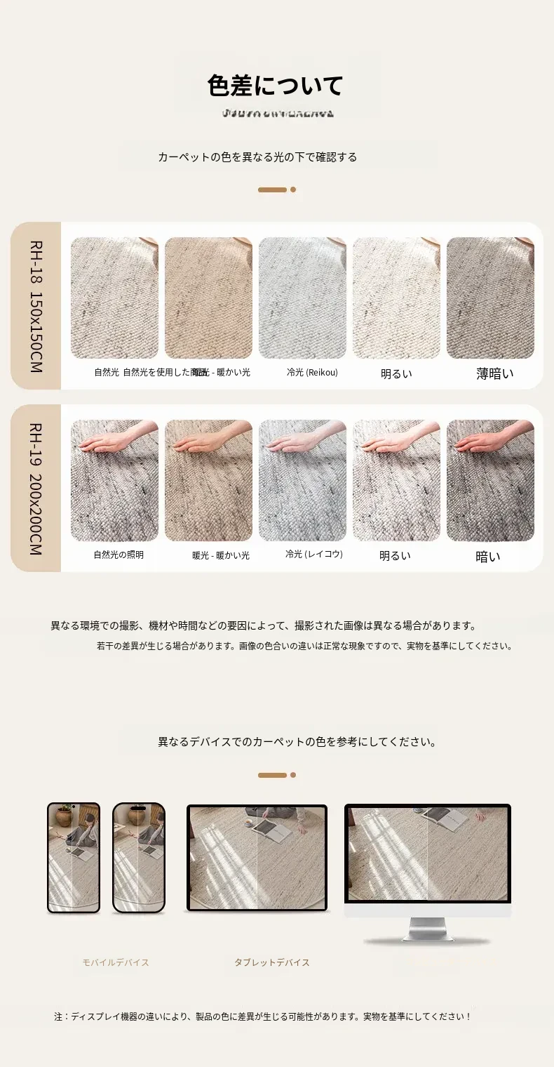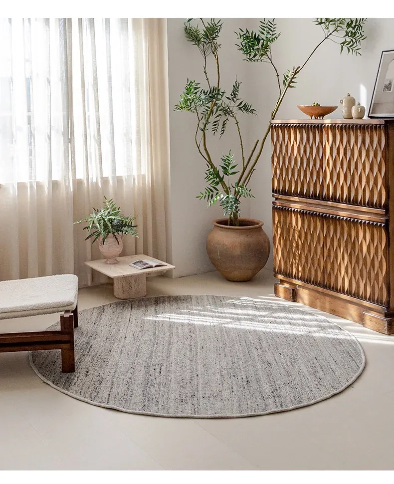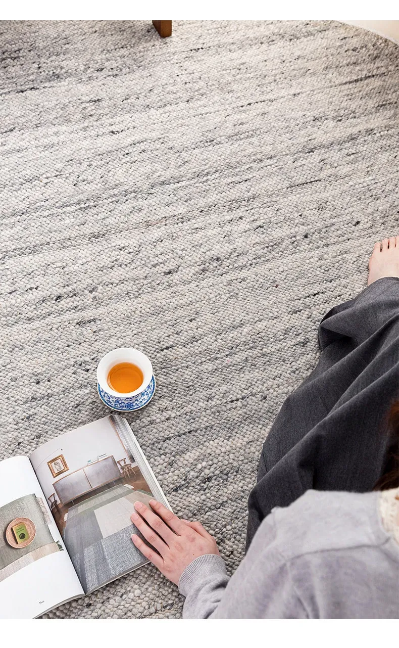 視覚と香りを楽しむ、輸入ウールラグ 円形 無接着 手編み リビングルームに高級感を演出 和風寝室の防音効果付き