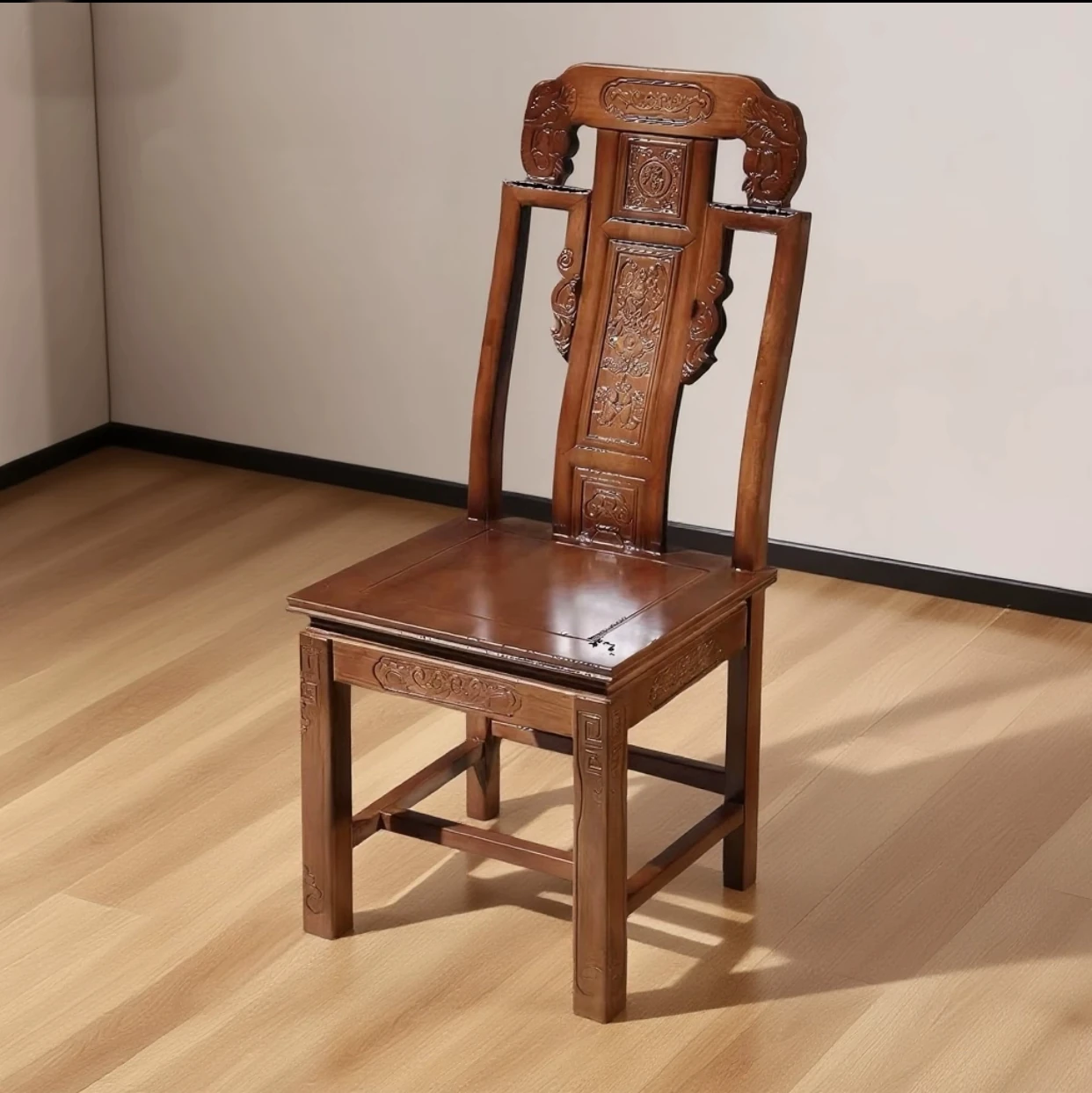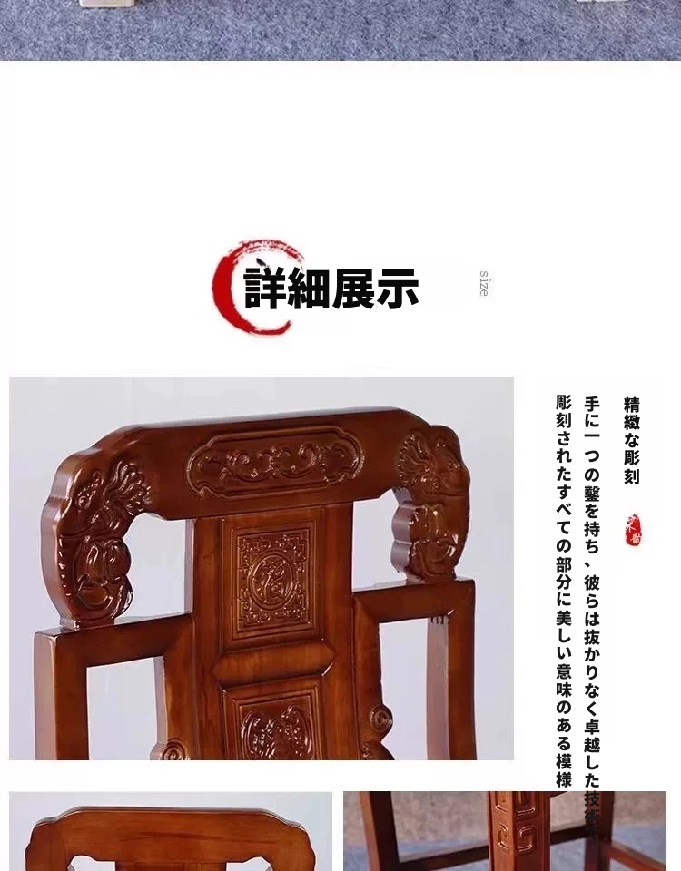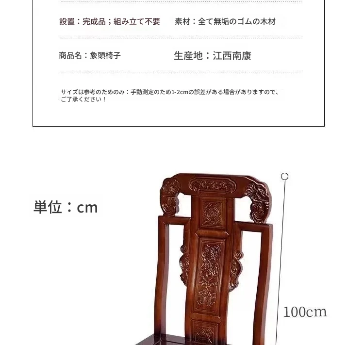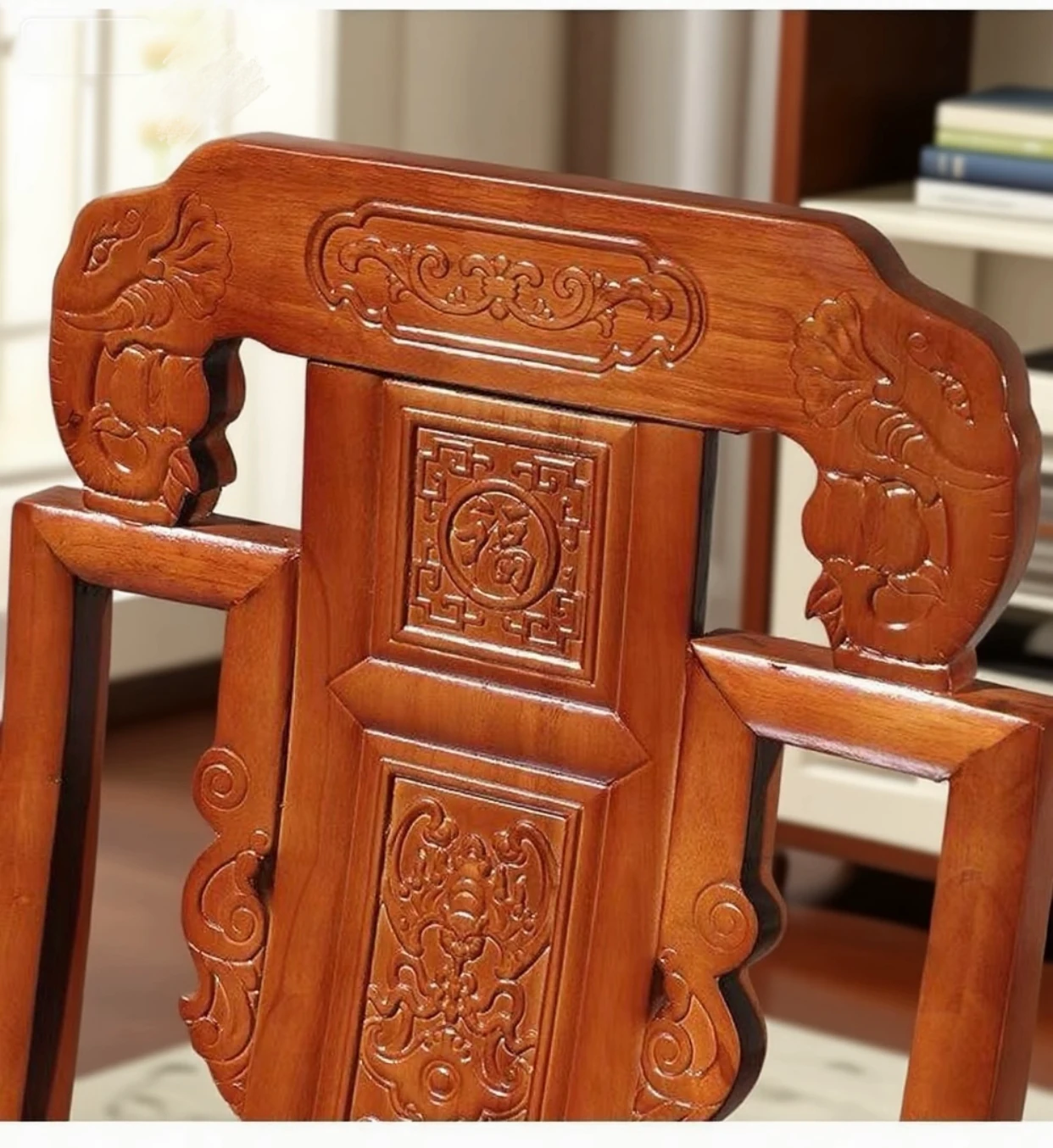 高品質輸入木製ホテル家庭用椅子・スツール 中華風ダイニングテーブルチェア 彫刻デザインの伝統的なアンティーク象頭椅子 クラシックな魅力を持つ一品