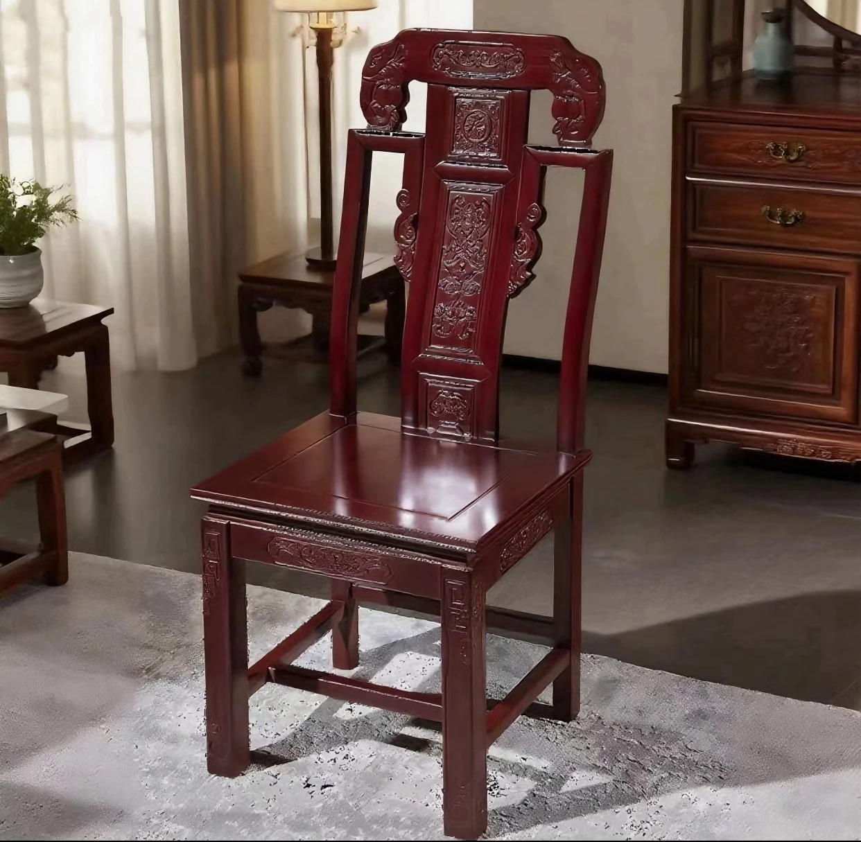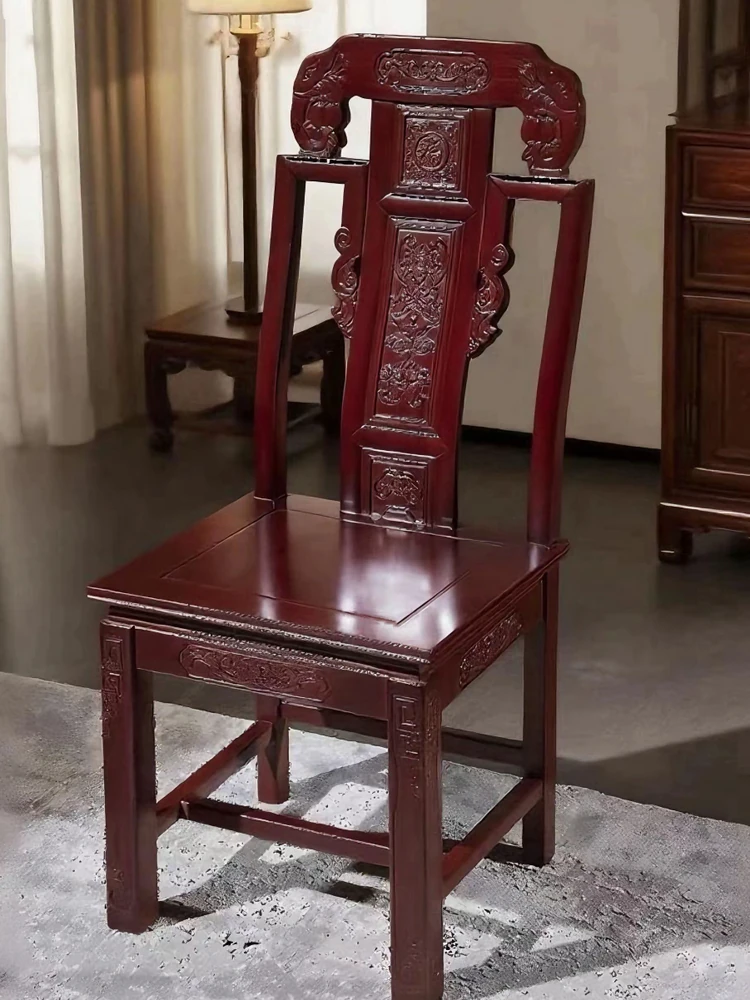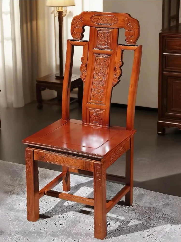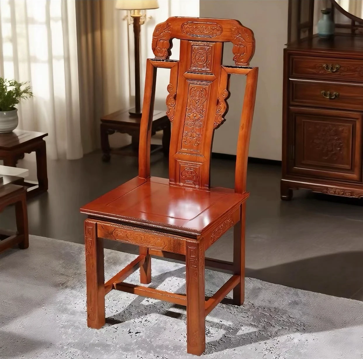 高品質輸入木製ホテル家庭用椅子・スツール 中華風ダイニングテーブルチェア 彫刻デザインの伝統的なアンティーク象頭椅子 クラシックな魅力を持つ一品