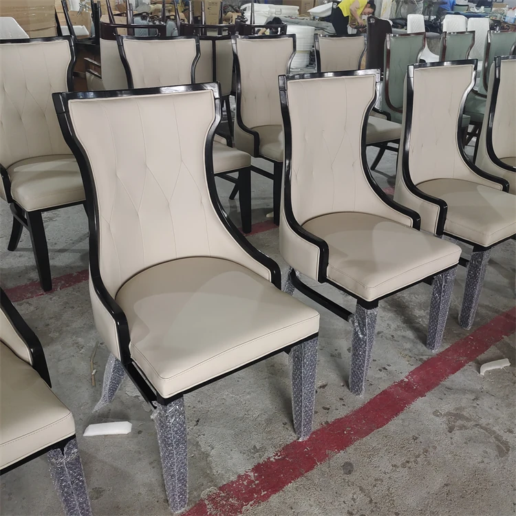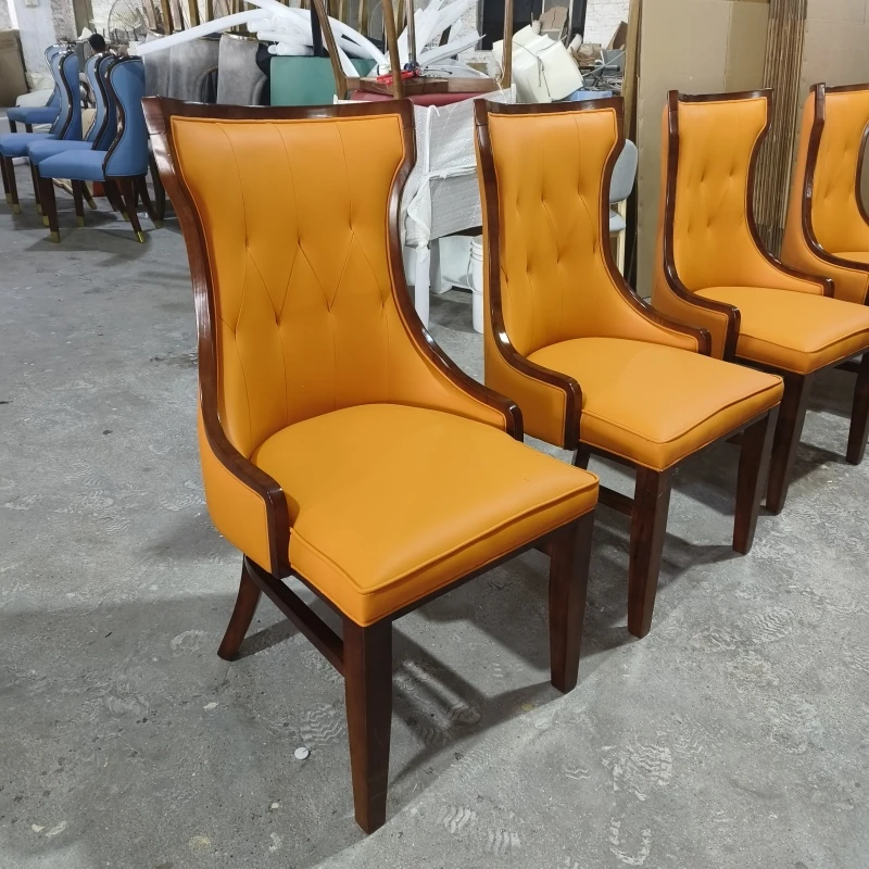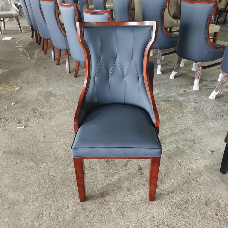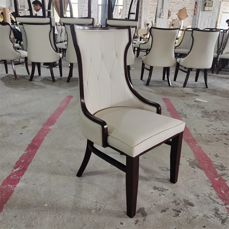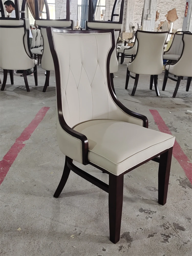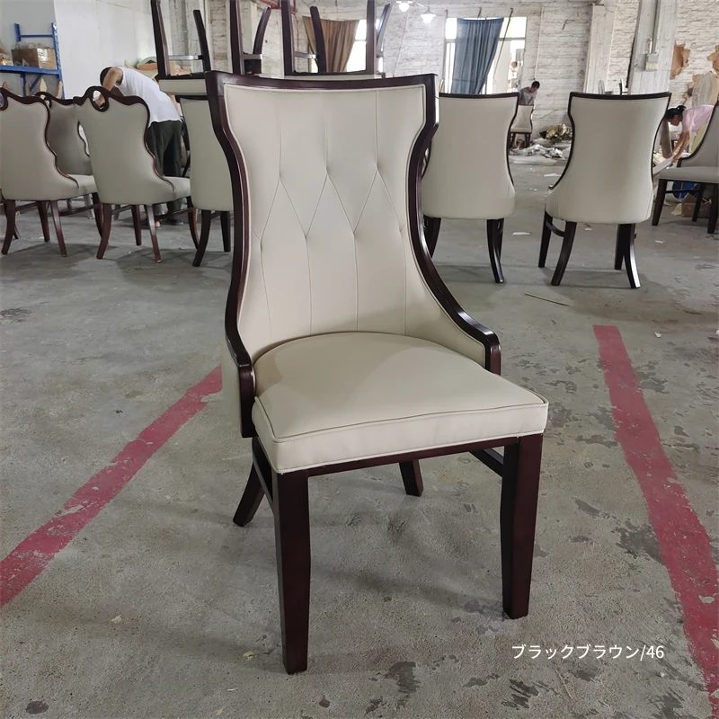 高級ラウンジ用モダン実木チェア - ソフトパック背もたれ付き、家庭用・ホテルの個室・レストランに最適なPUレザー製ダイニングチェア!快適さとスタイルを兼ね備えた一品。