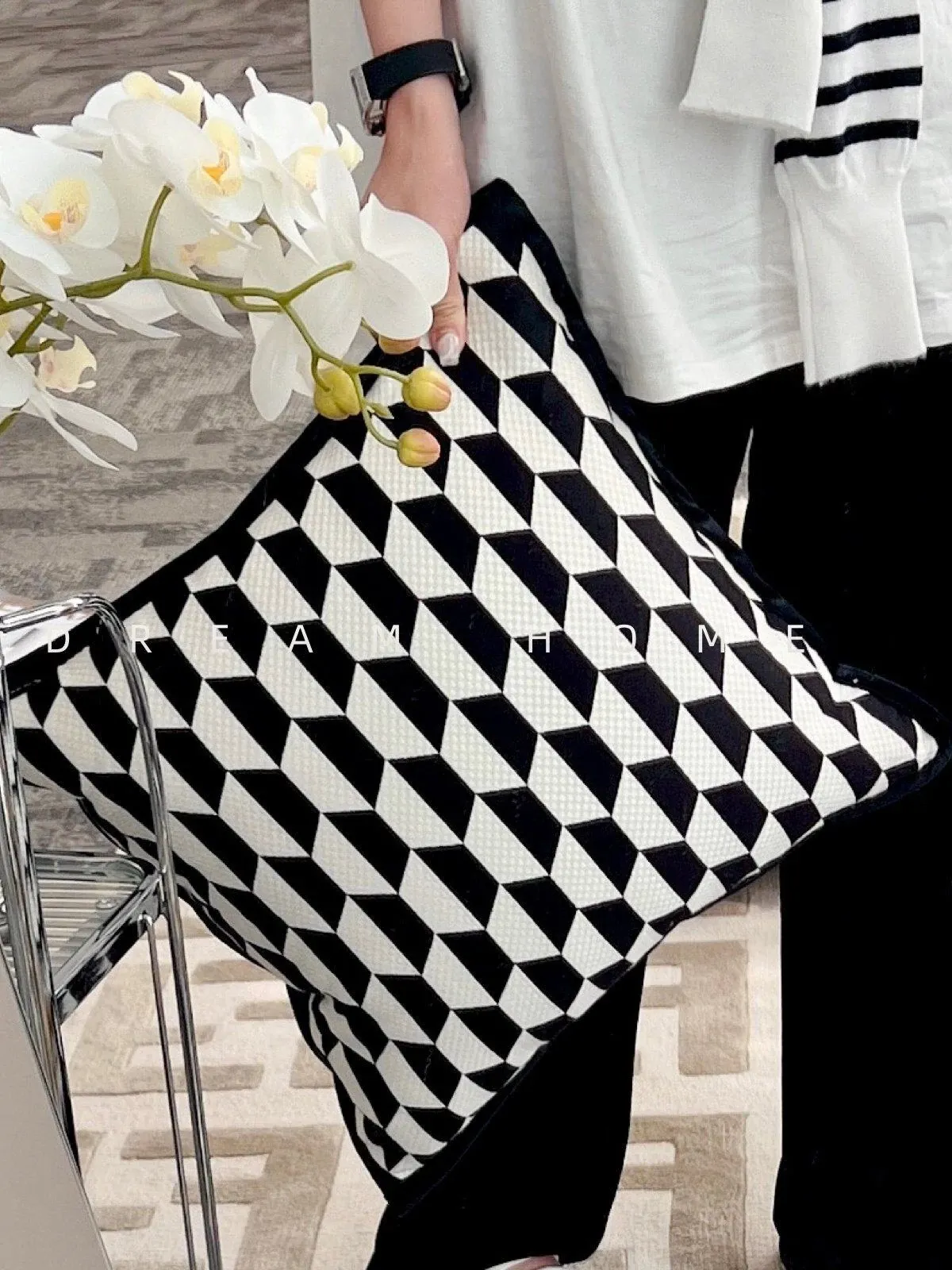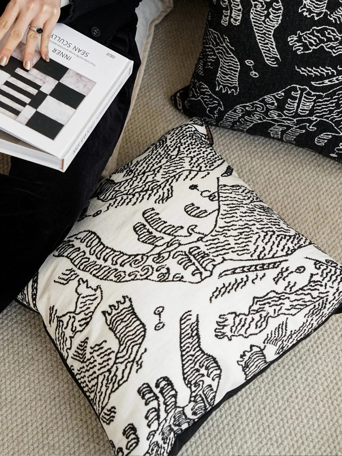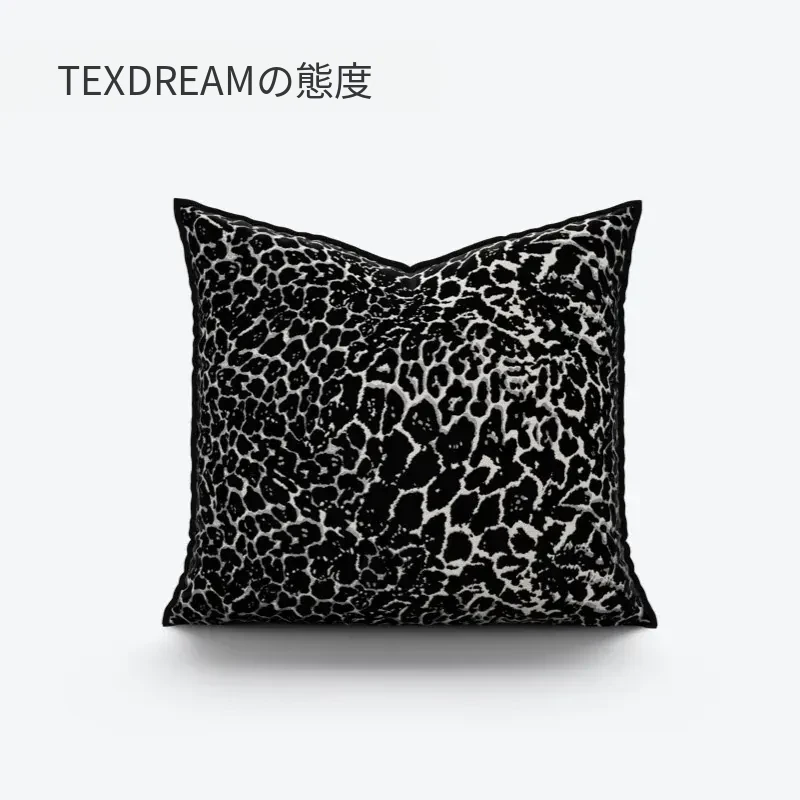 【ヒョウ柄クッション-黒白】