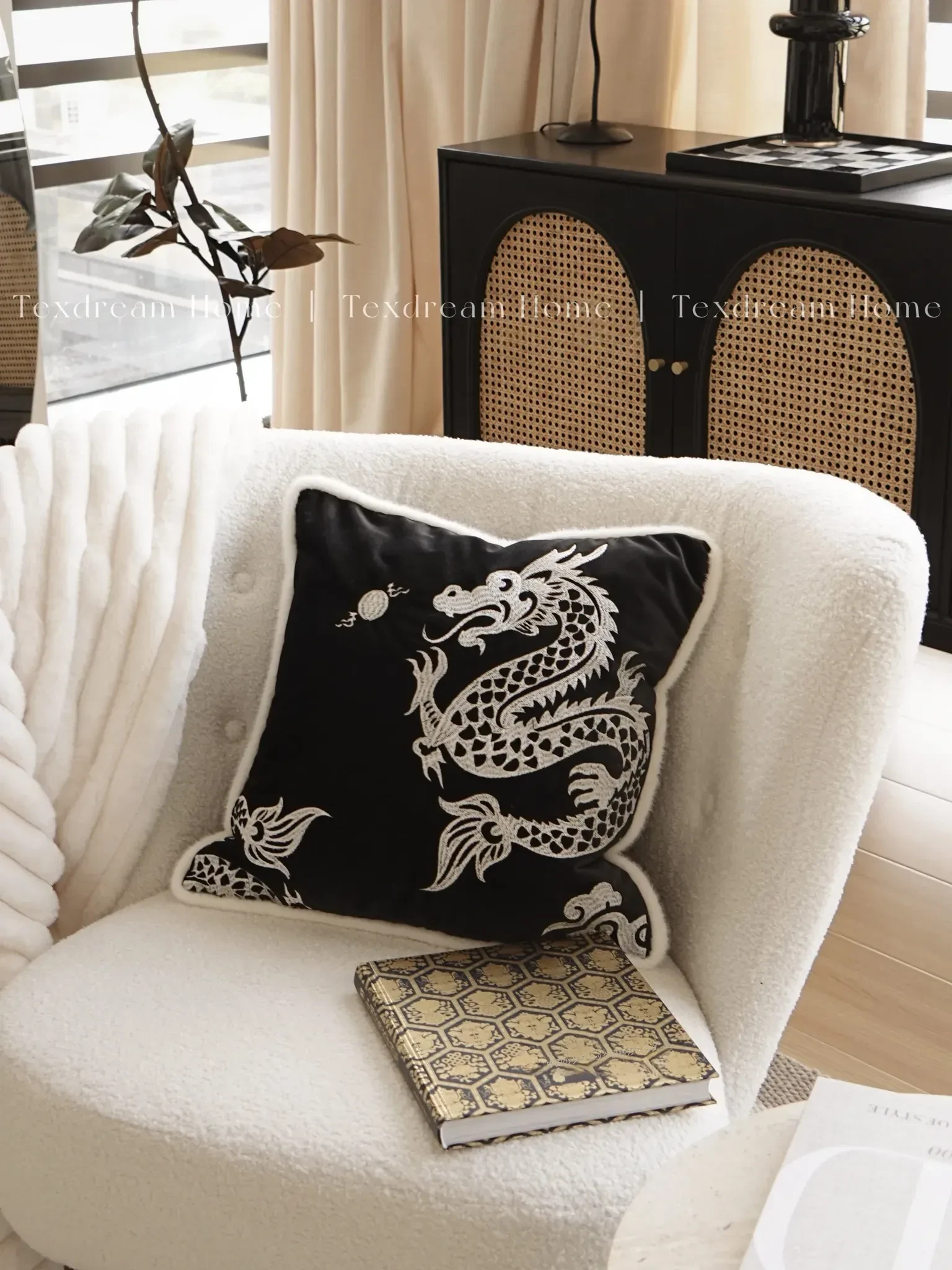 【龍の模様のクッション-黒】