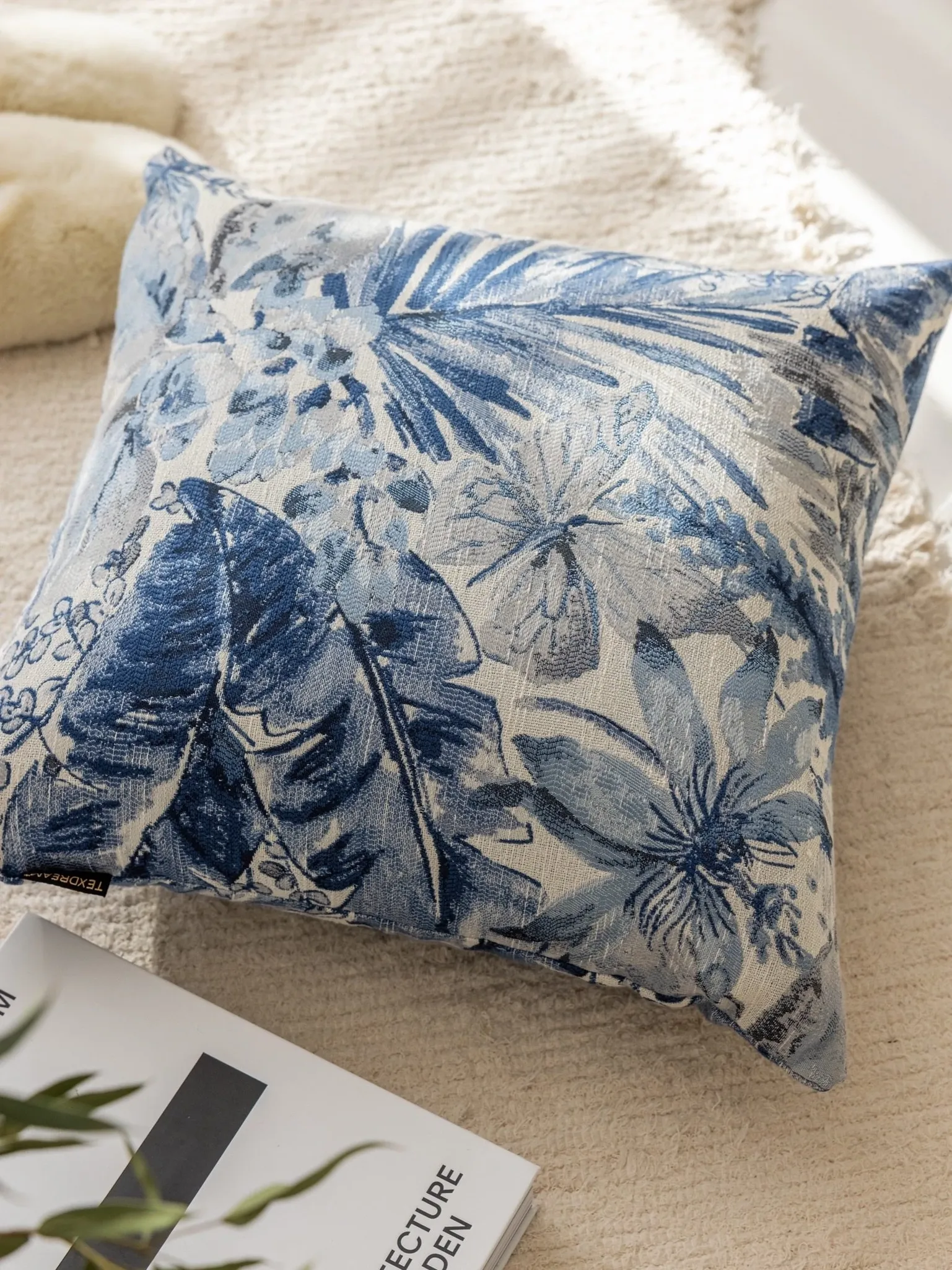 【ヒョウ柄クッション-青】