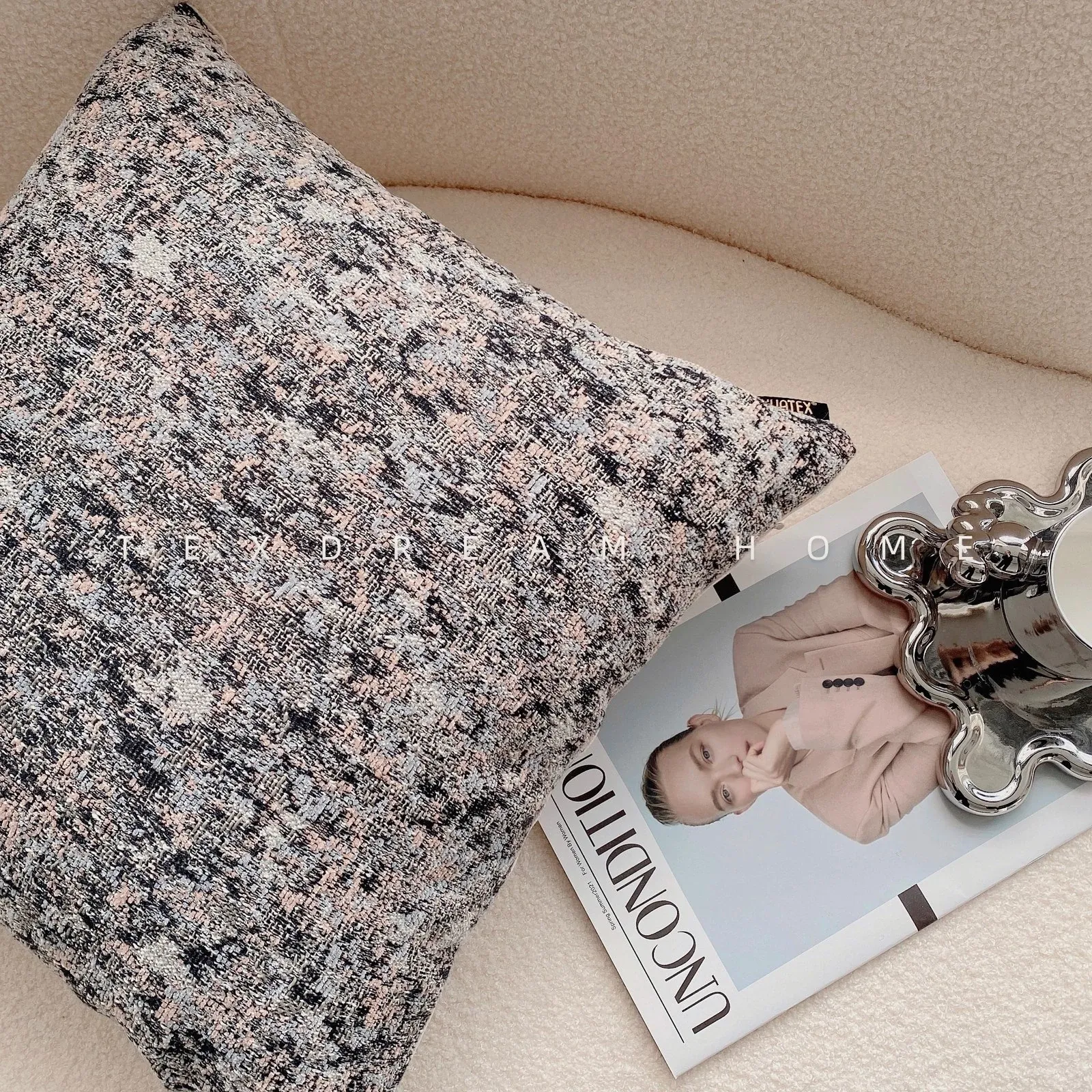 【ヒョウ柄クッション-アイボリー】