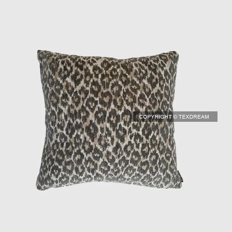 【ヒョウ柄クッション-グレー】