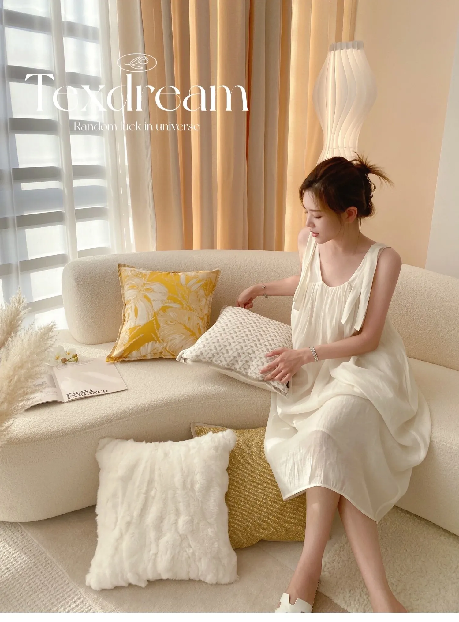 【ヒョウ柄クッション-黄白】