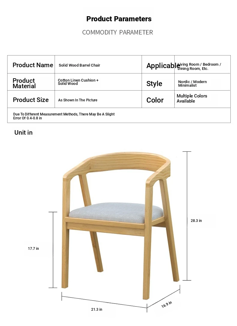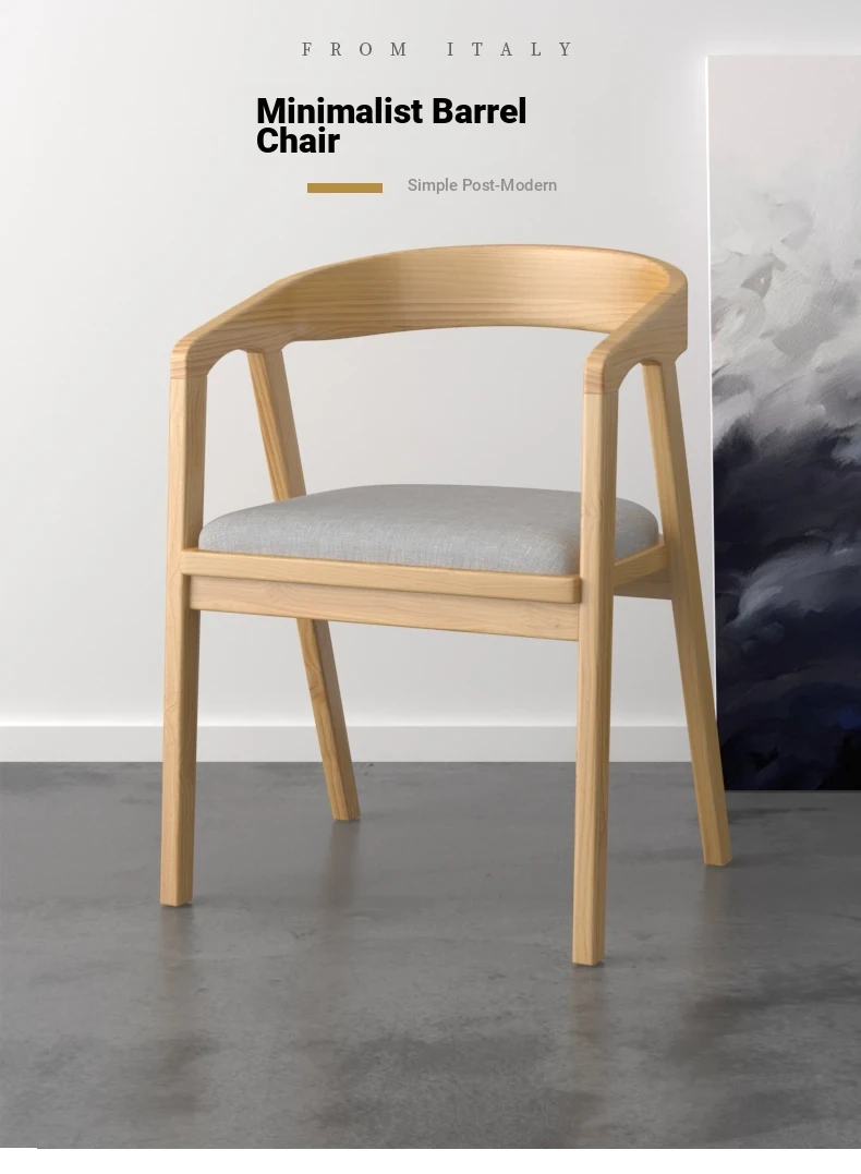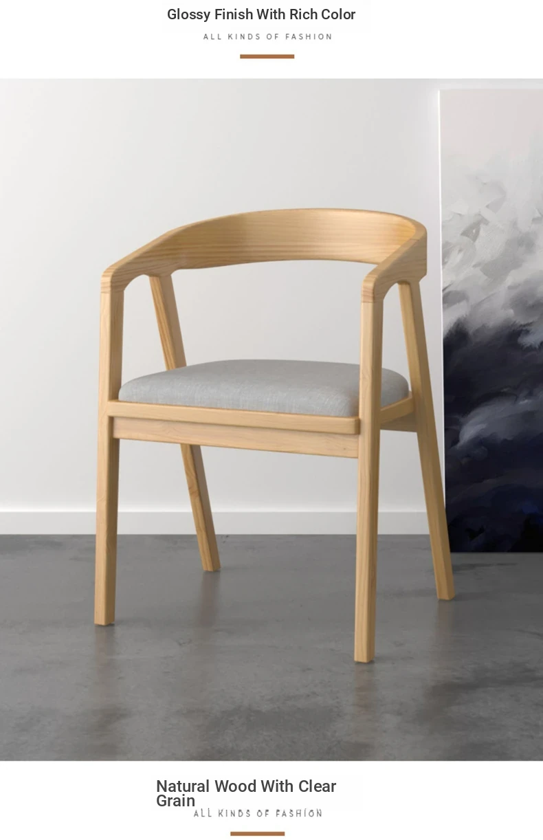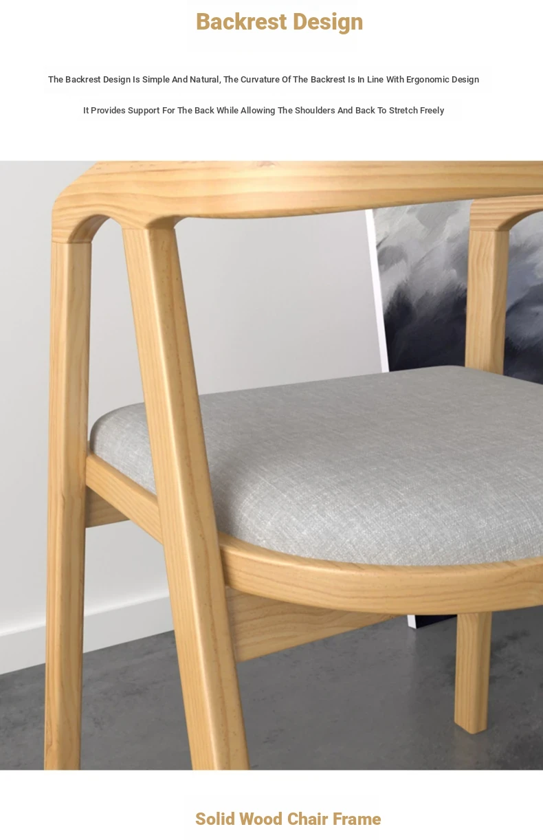 Scandinavian Solid Wood Dining Chair - Modern Home Office Desk Chair with Backrest, Armrests & Ideal for Meetings, Restaurants, and Commercial Use