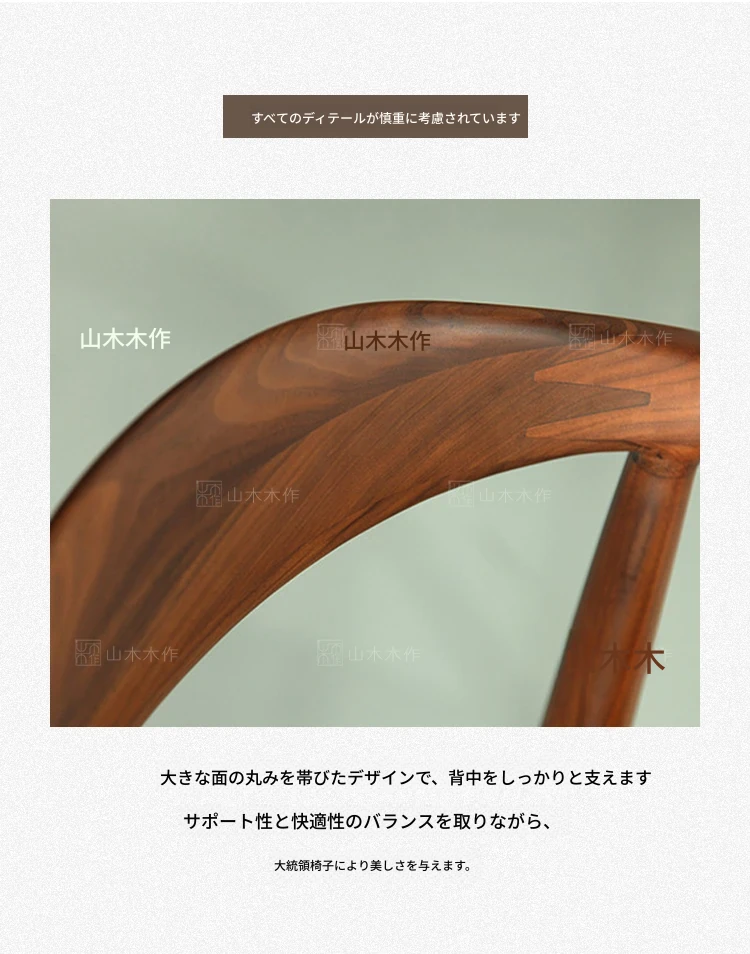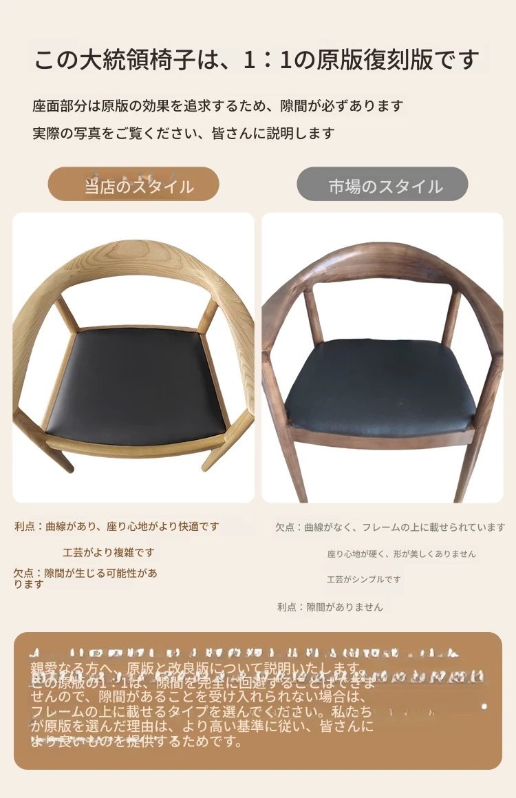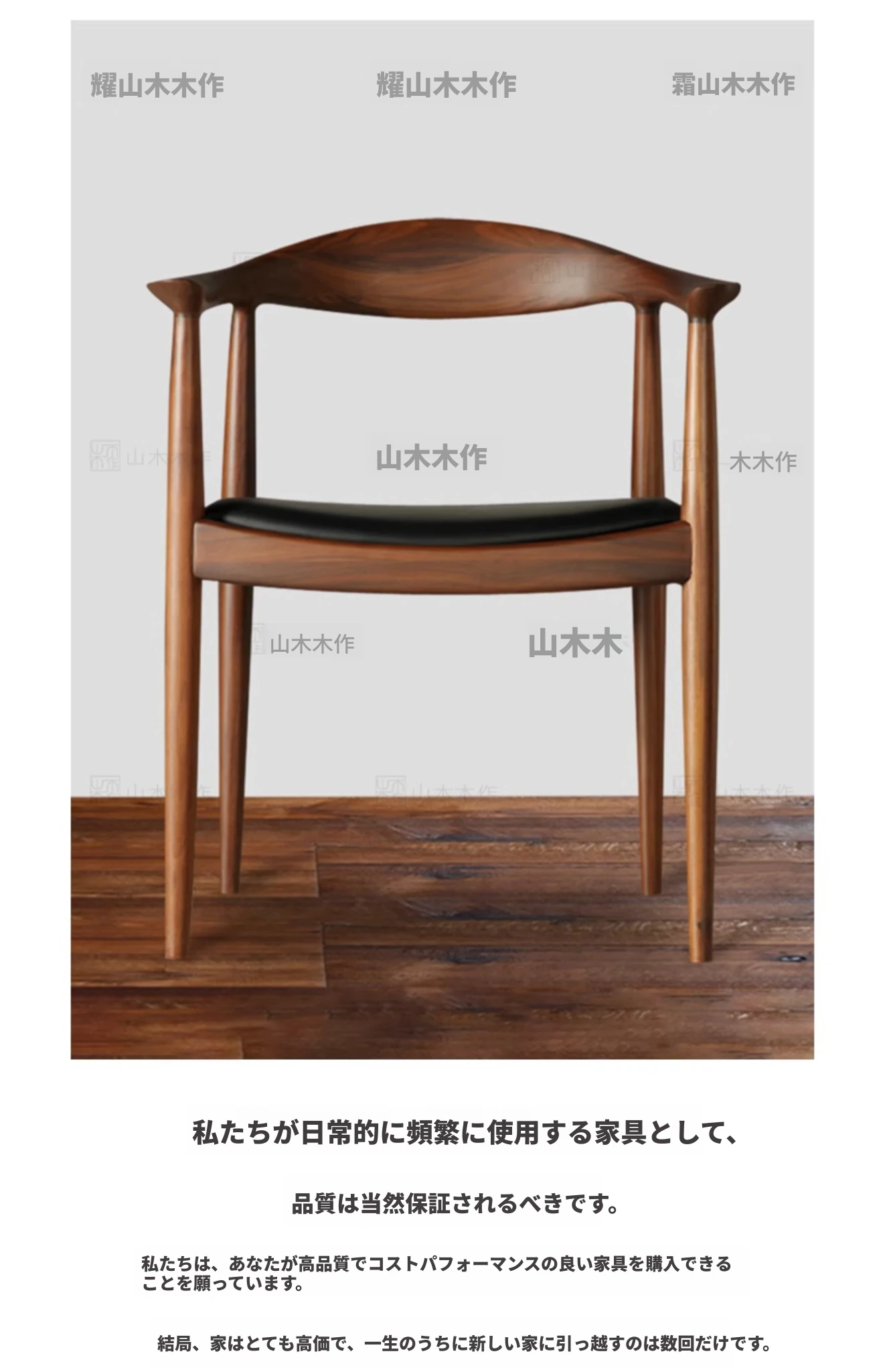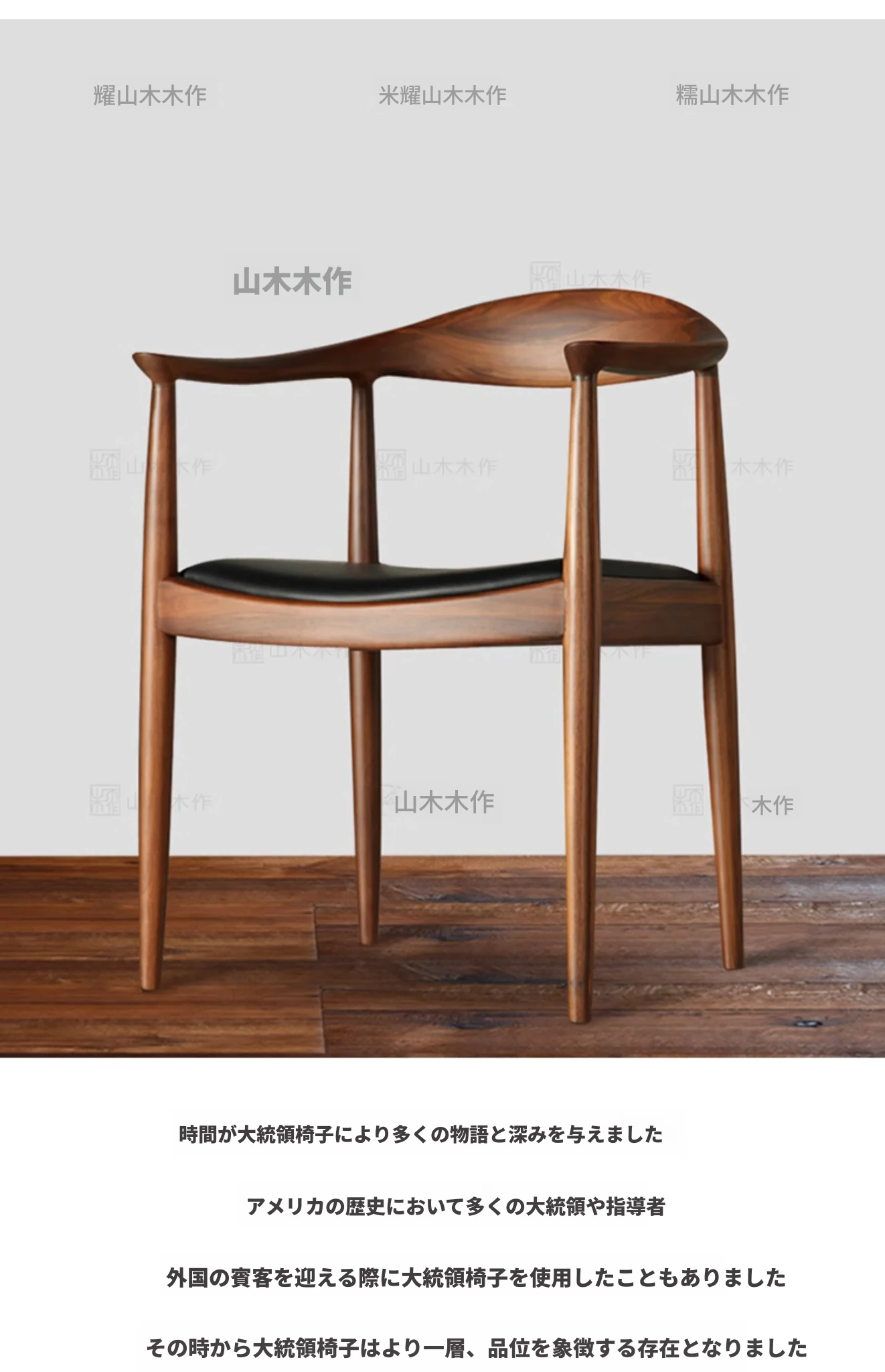 山木 北欧スタイル 本物の無垢材を使用した大統領チェア - ホテル、カフェ、自宅、オフィス、書斎、寝室に最適なダイニングチェア。快適さとスタイルを兼ね備えた一品で、あなたの空間を格上げします!