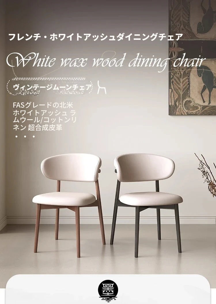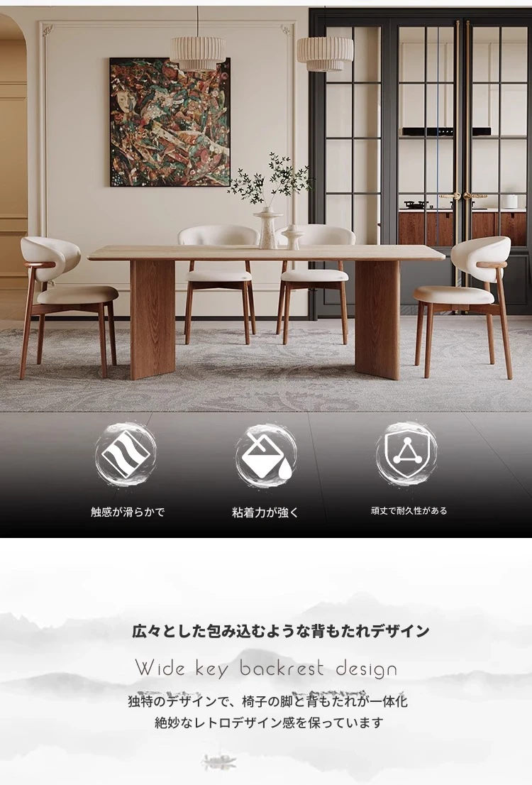 無垢のホワイトアッシュ材を使用したシンプルなダイニングテーブルと抱きしめるようなダイニングチェアのセット。和の侘寂を感じさせる北欧スタイルの書斎椅子としても最適!おしゃれで機能的な家具で、心地良い食卓を演出します。